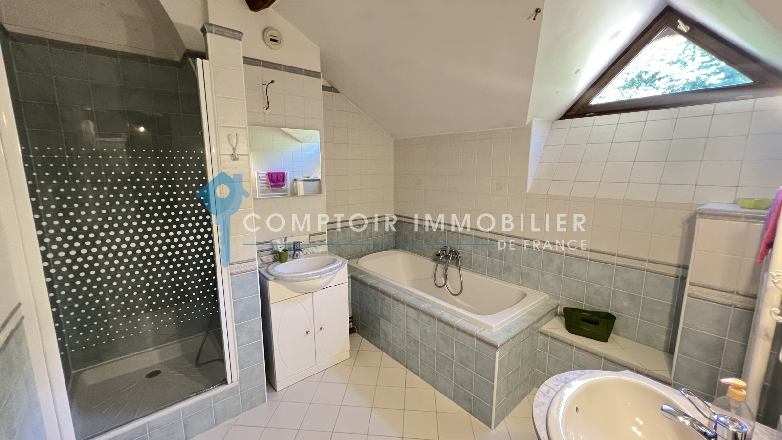 A l'étage : palier/mezzanine, trois belles chambres dont une seconde suite parentale avec sa salle d'eau, un wc et une salle de bains.