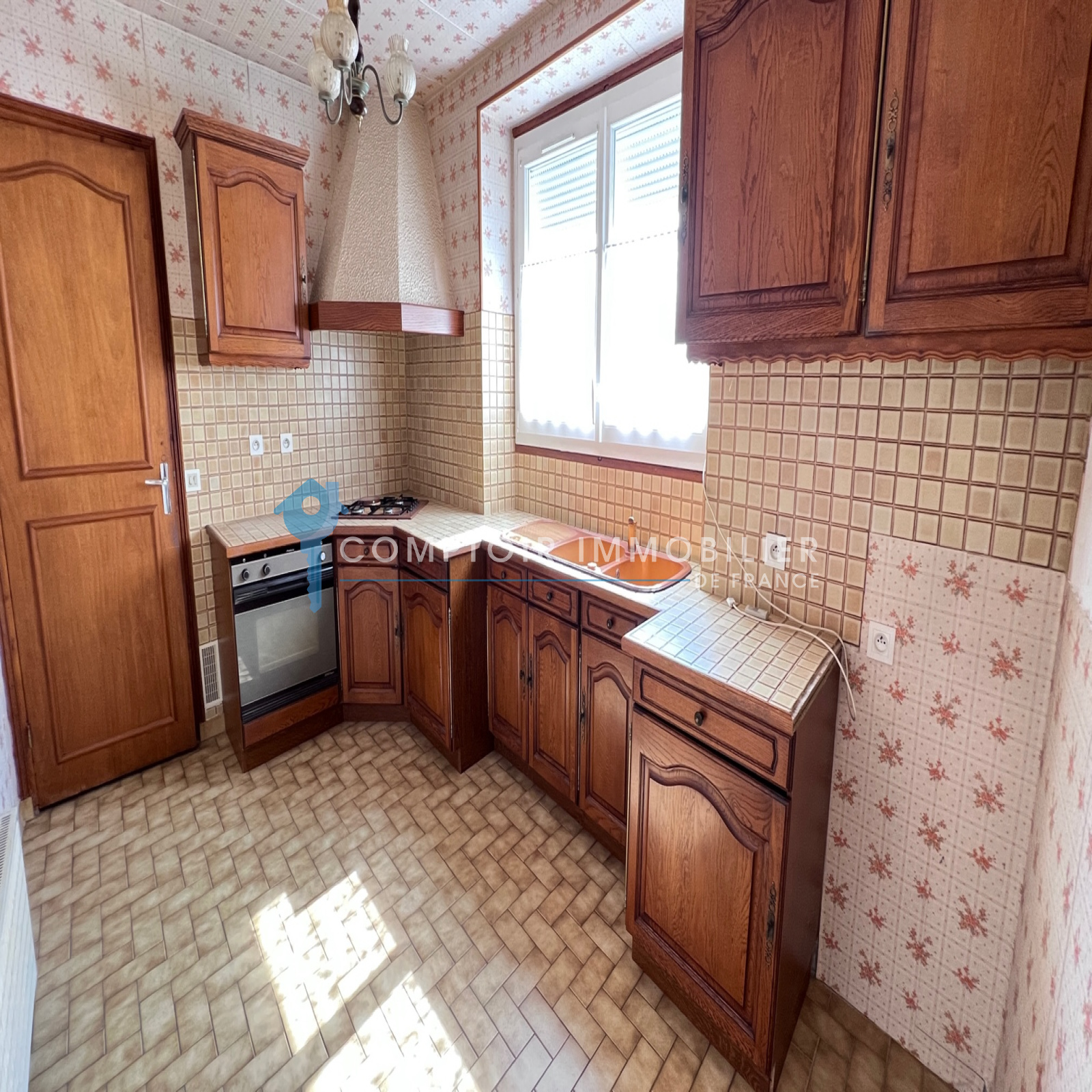 En rez de chaussée surélevé, une entrée, une cuisine aménagée, une salle à manger, un salon, deux chambres, une salle de bain, wc séparé.