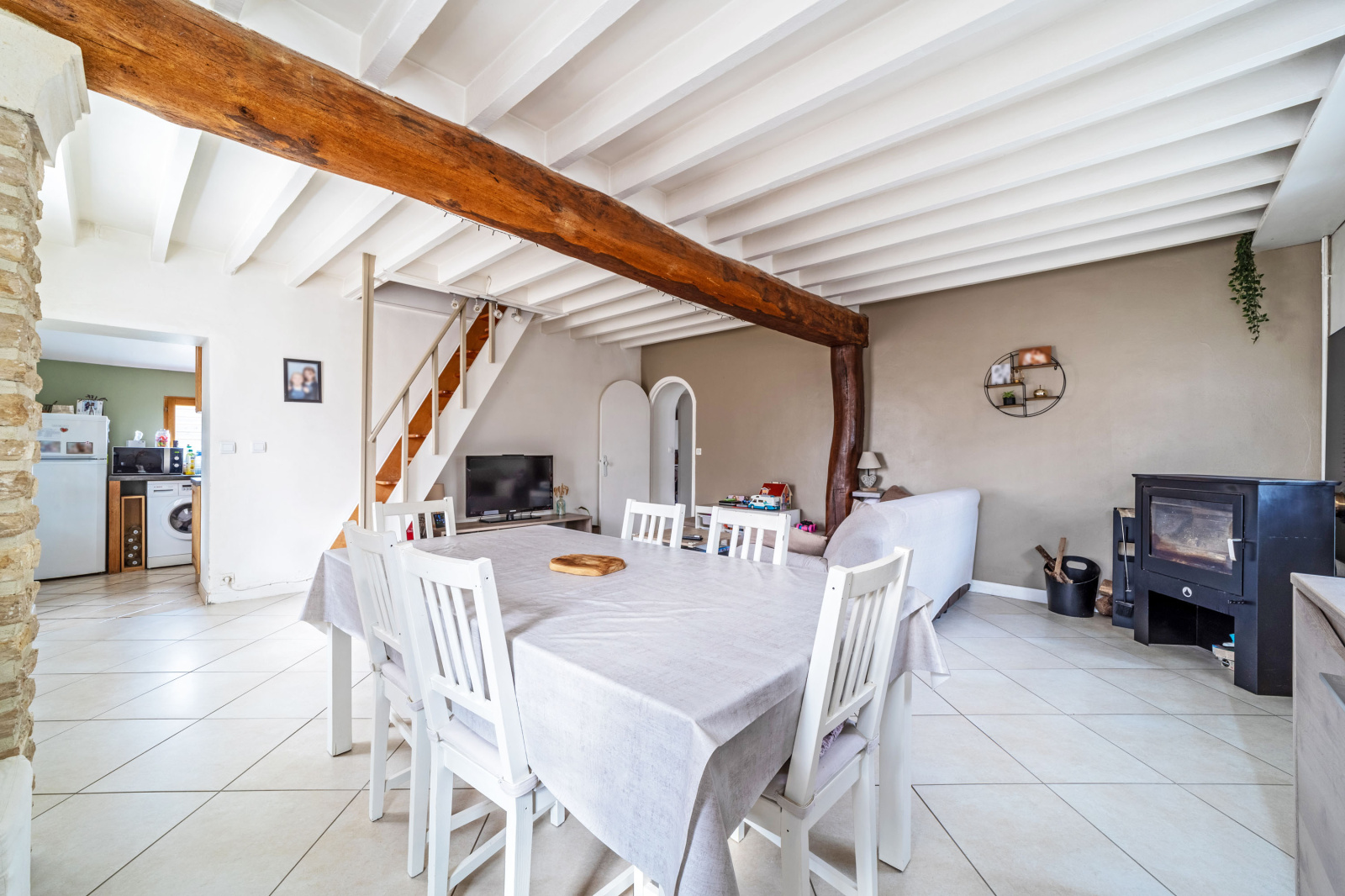 Ce bien est composé au rdc, d'une entrée, une cuisine indépendante, un double séjour (peole à bois), deux chambres, une salle de bains et un WC.