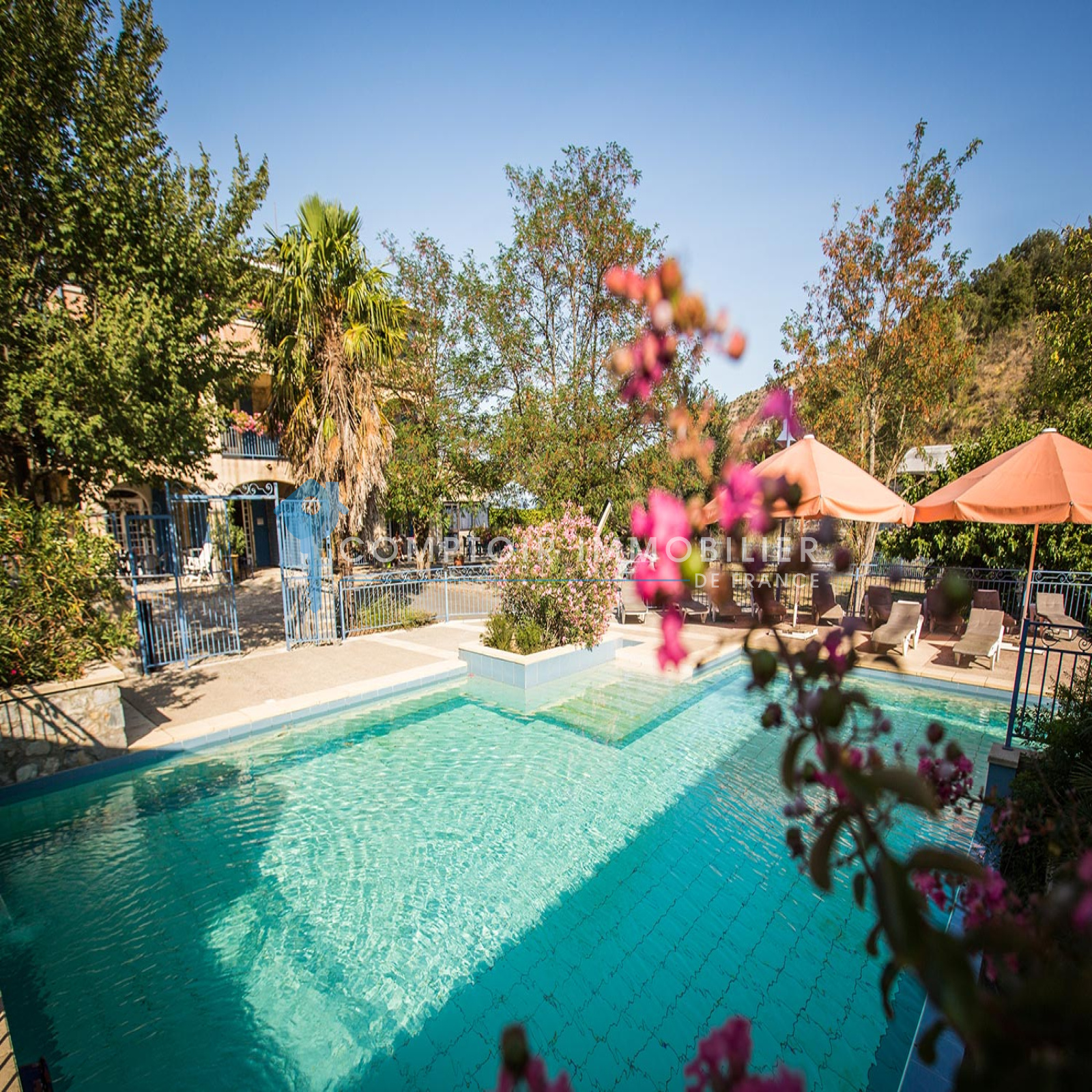 Grand ensemble immobilier historique transformé depuis plus de 30 ans en accueil touristique avec gîtes, piscines et salle de réception.