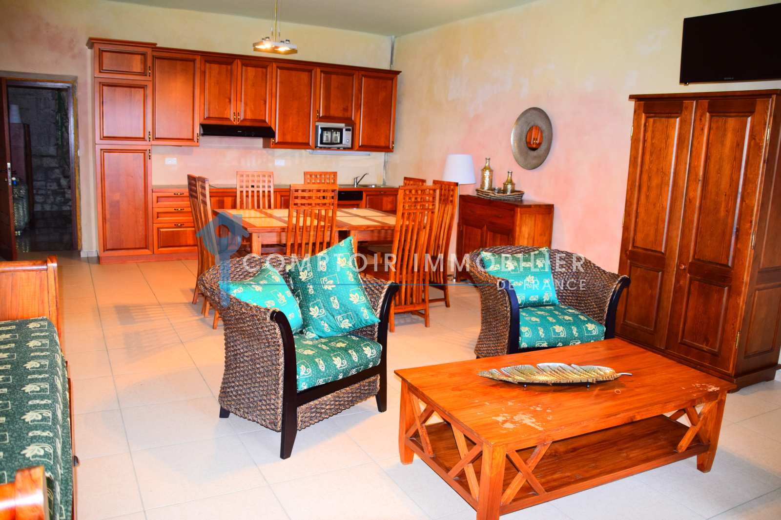 L’ancienne bergerie a été transformé en habitation avec une grande pièce de vie au rez-de-chaussée et 3 chambres à l’étage, WC, salle d’eau sur plus de 106 m2, et grande terrasse privée.