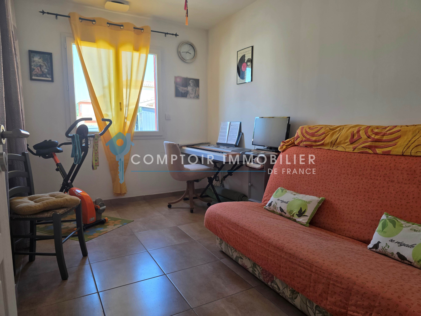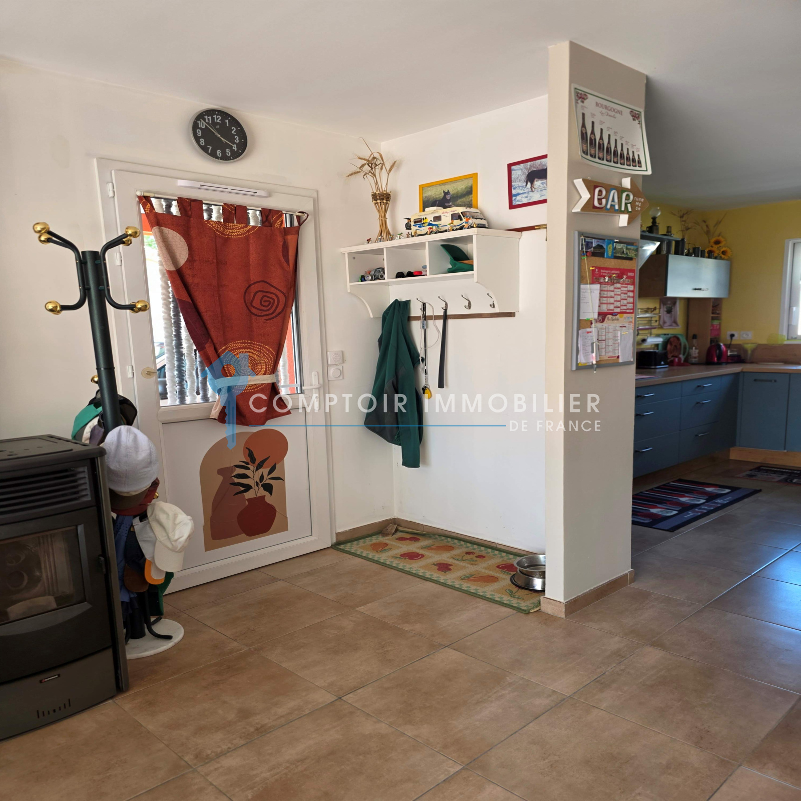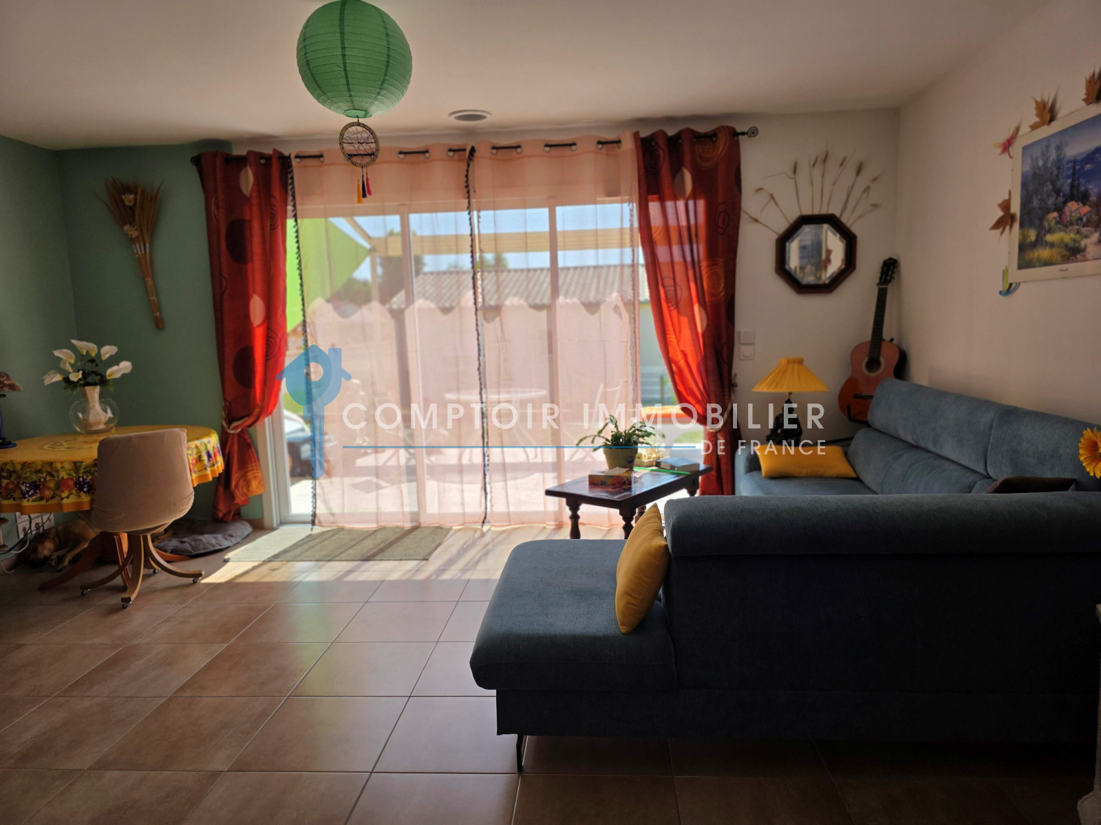 Cette charmante maison de 100 m² sur 598 m² de terrain plat et arboré. grande pièce de vie donnant sur une terrasse exposée sud, avec sa cuisine meublée équipée ouverte, 2 chambres et 1 suite parentale.