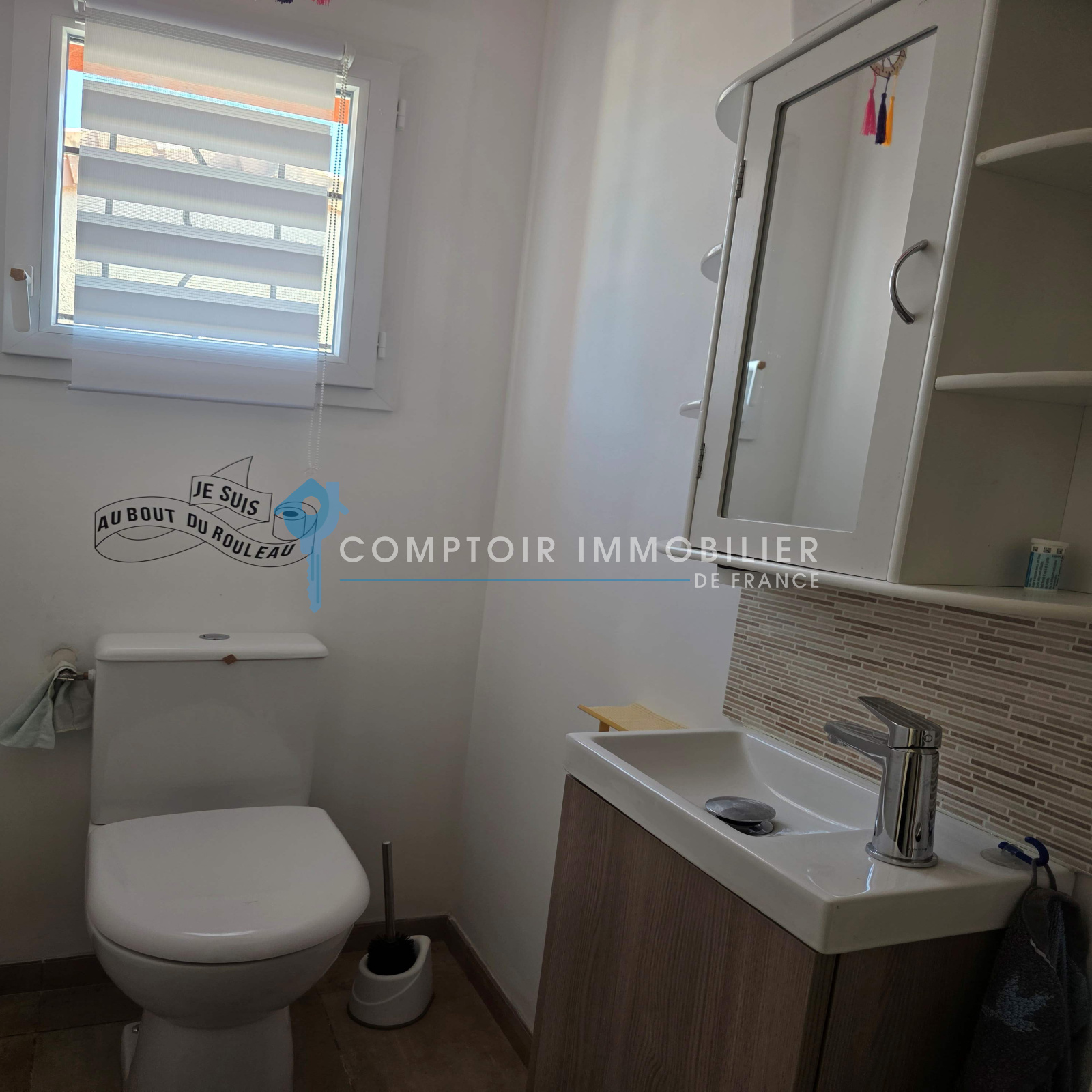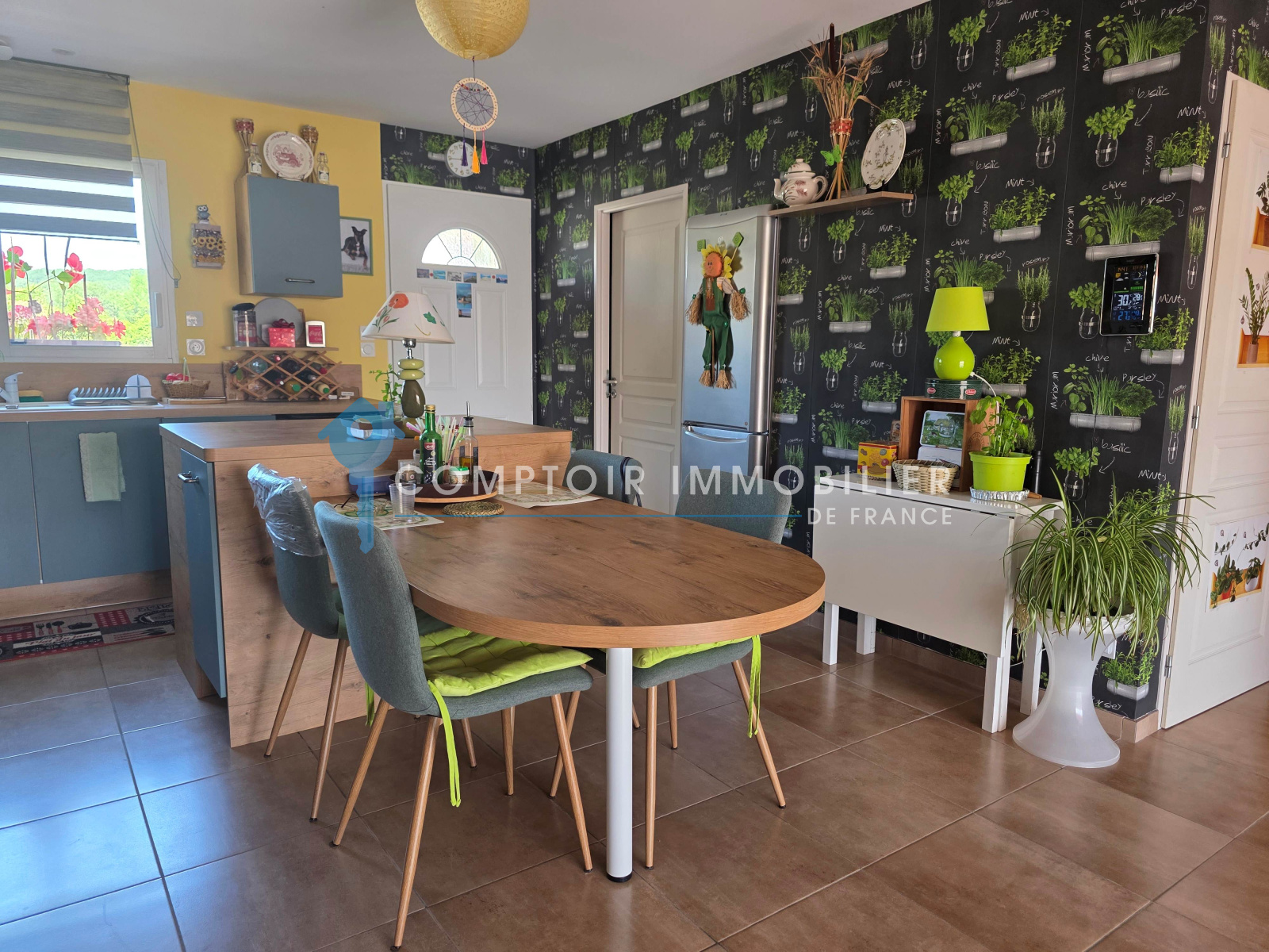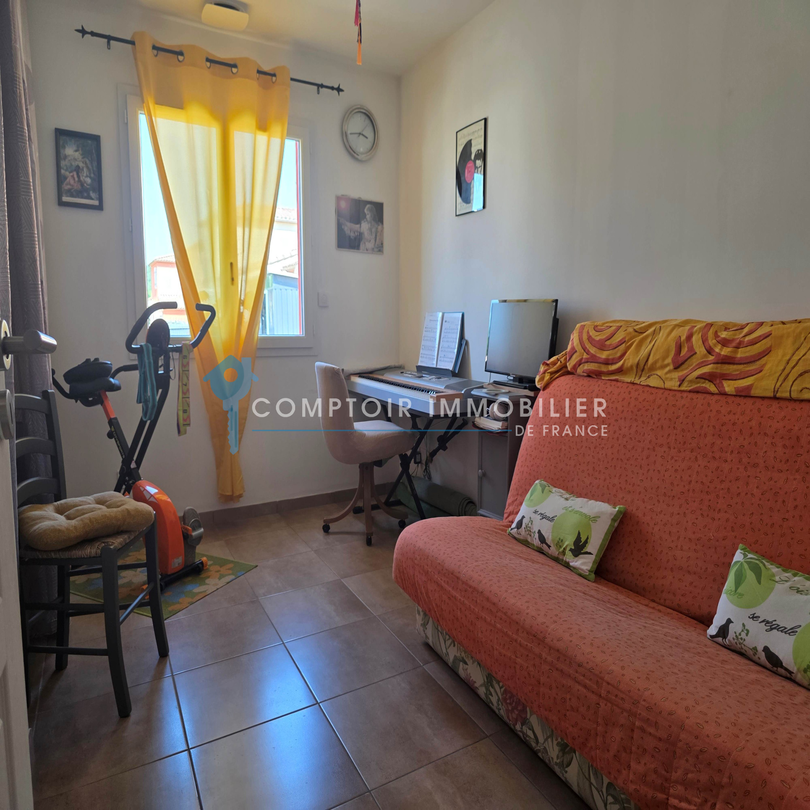 Cette charmante maison de 100 m² sur 598 m² de terrain plat et arboré. grande pièce de vie donnant sur une terrasse exposée sud, avec sa cuisine meublée équipée ouverte, 2 chambres et 1 suite parentale.