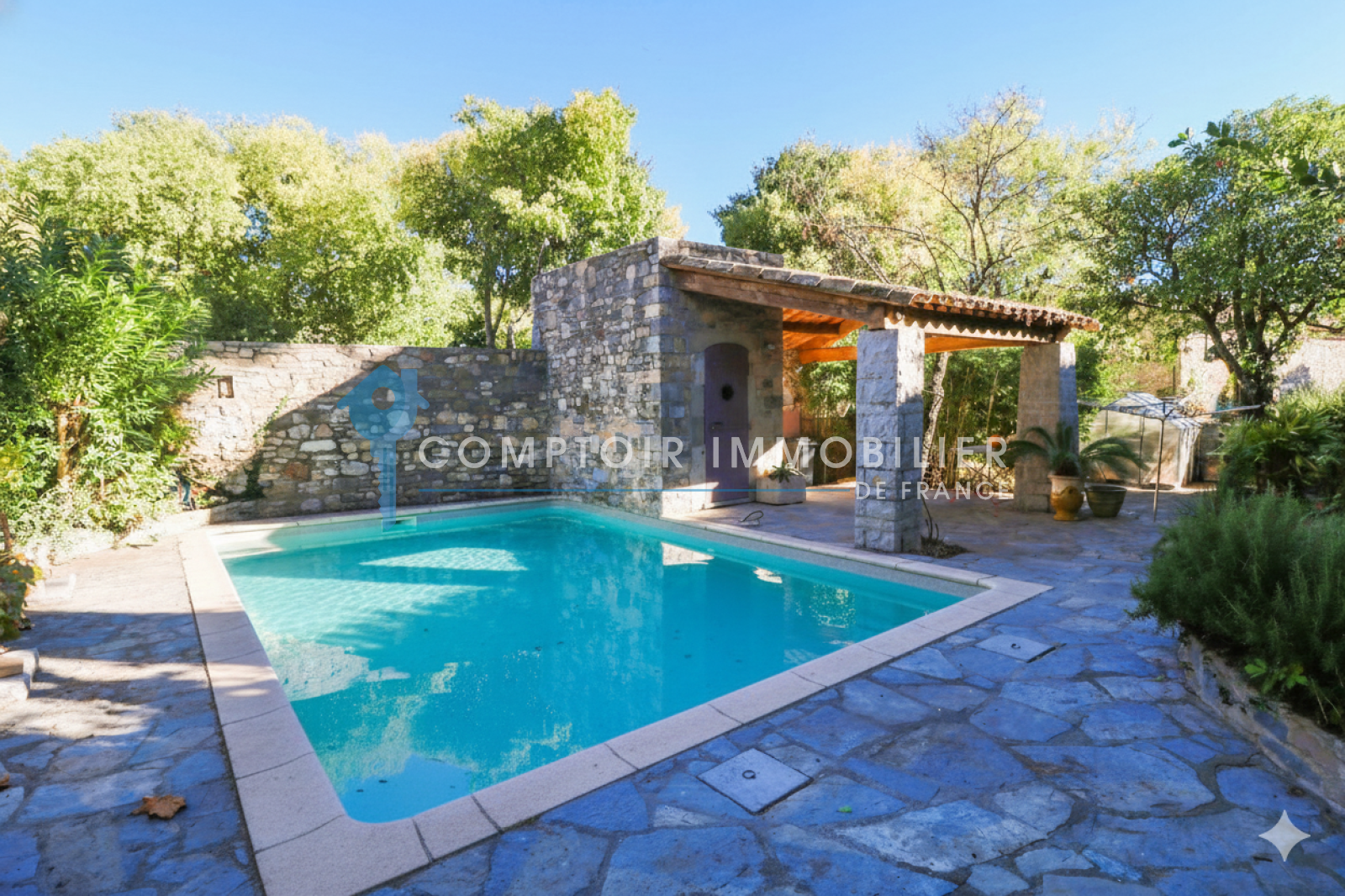 Espaces extérieurs : Murs en pierre d’origine assurant une intimité totale. Jardin paysager planté de végétation méditerranéenne. Piscine (6 m × 4 m) avec système de filtration au sel et volet roulant électrique. Un Terrain constructible attenant (environ 460 m²), anciennement rattaché au château du village, offrant un espace extérieur supplémentaire ou un potentiel d’aménagement.