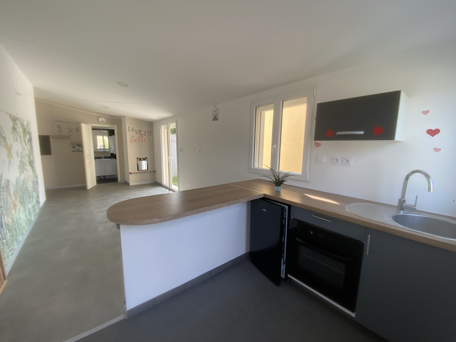 La dépendance récente de 2022 possède une entrée sur cuisine et séjour de 24 m² avec accès au garage, une chambre 9 m² et une salle d'eau/wc. Garage de 20 m², combles aménageables d'environ 60 m². Chauffage électrique avec possibilité de connecter la pompe à chaleur.