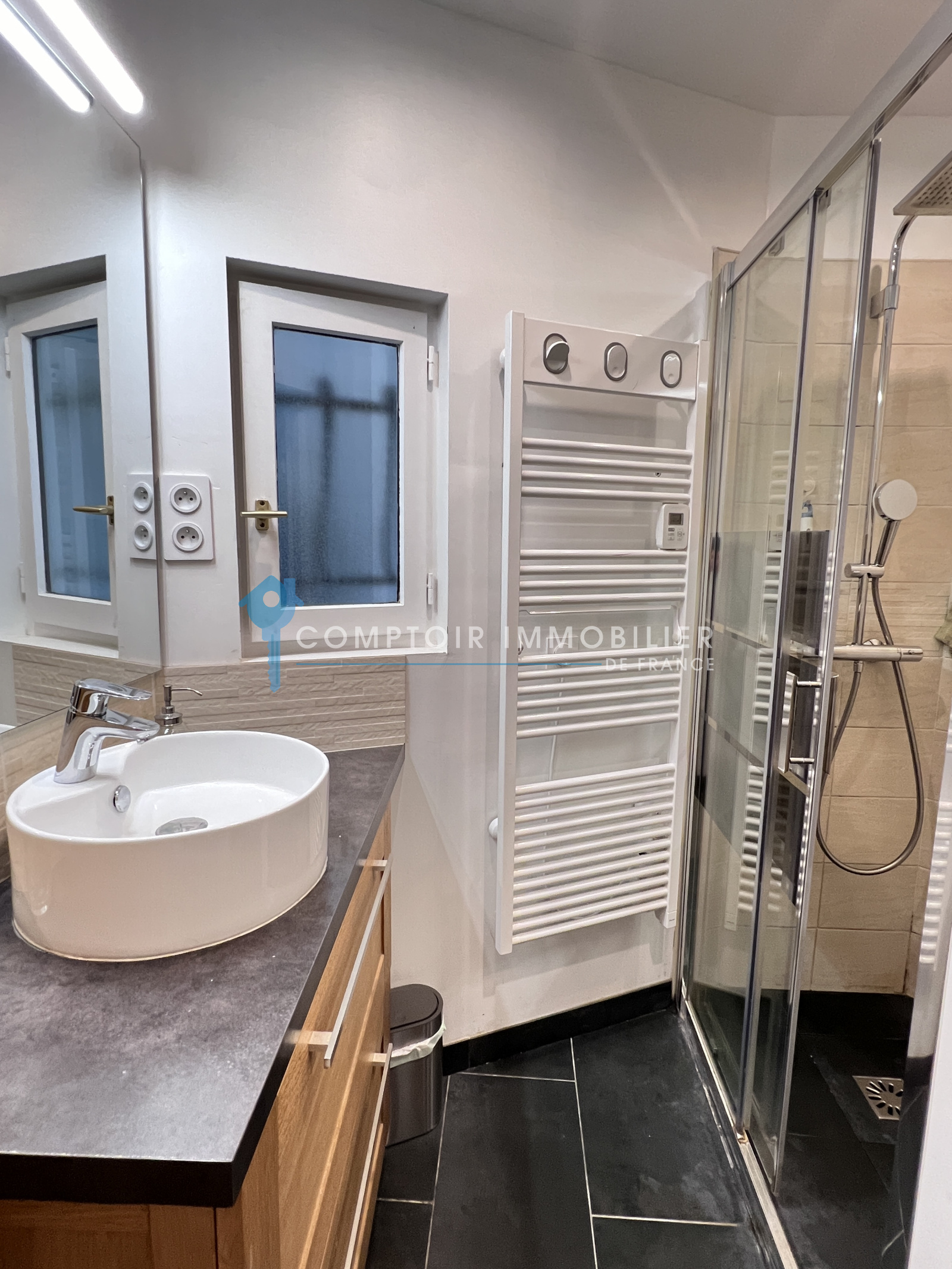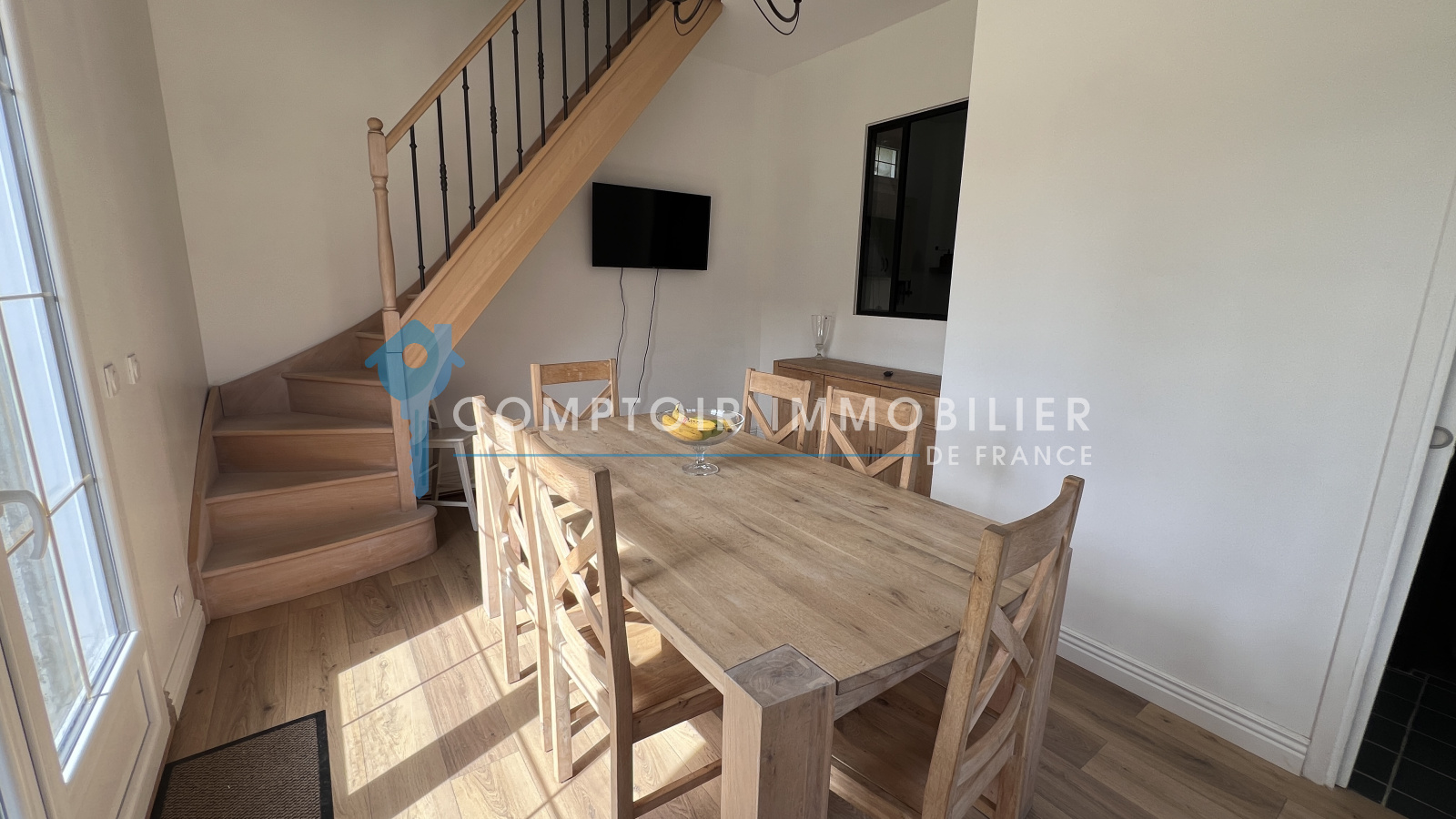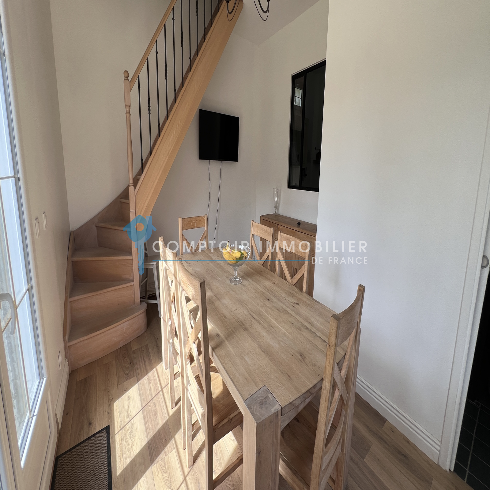 Vous disposerez au rdc d'une entrée, un salon cosy, une belle et grande cuisine aménagée et équipée, un séjour lumineux, une chambre , une salle d'eau et un wc séparé.