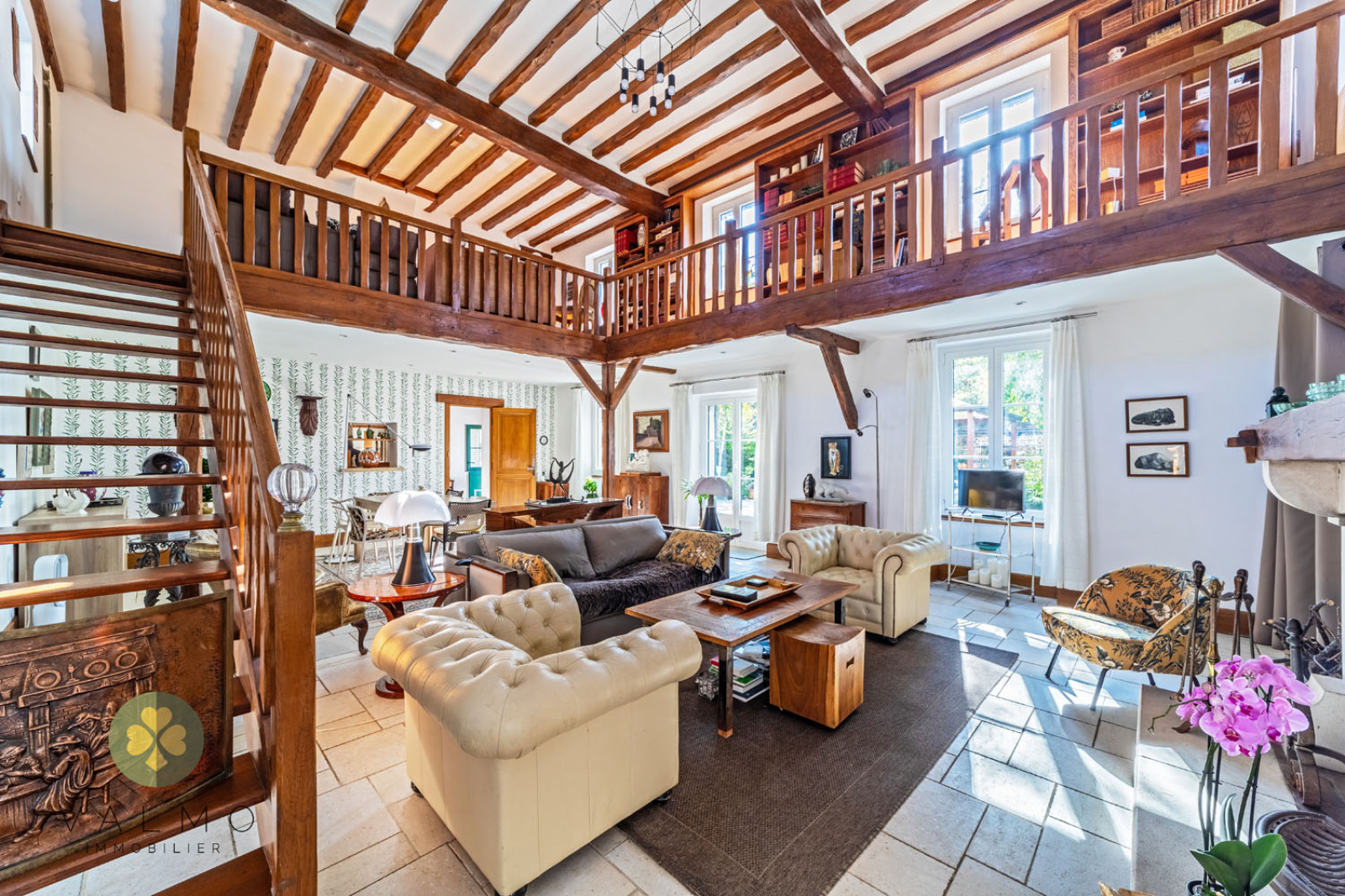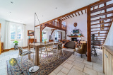 Au 1er étage : une mezzanine-bibliothèque avec deux accès, 2 belles suites avec salles d'eau/wc et placards.