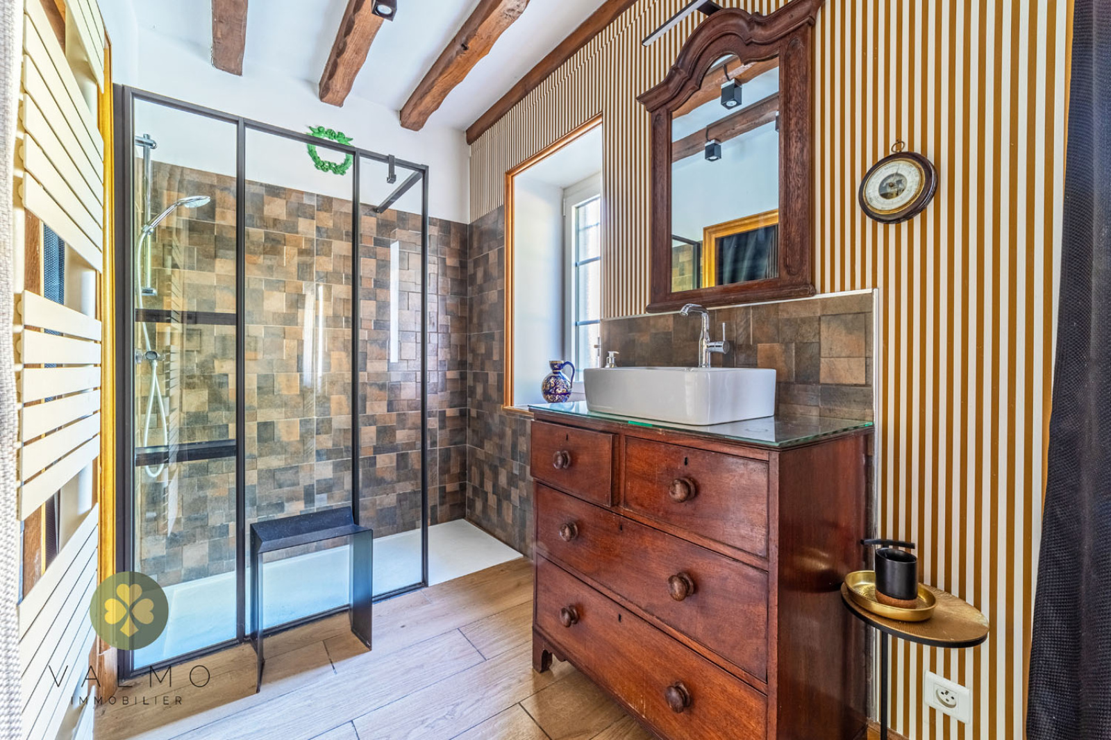 Poutres apparentes, matériaux de qualité, piscinable.