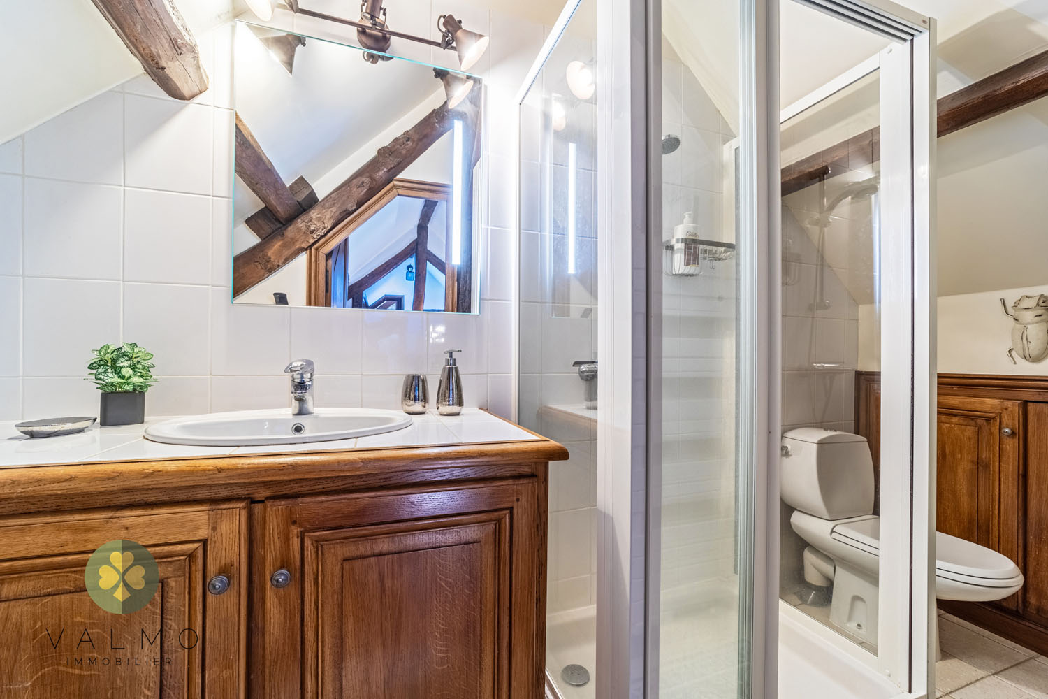 Sous les combles : un palier desservant 2 suites avec salle de bains/wc et salle d'eau/wc, nombreux rangements.