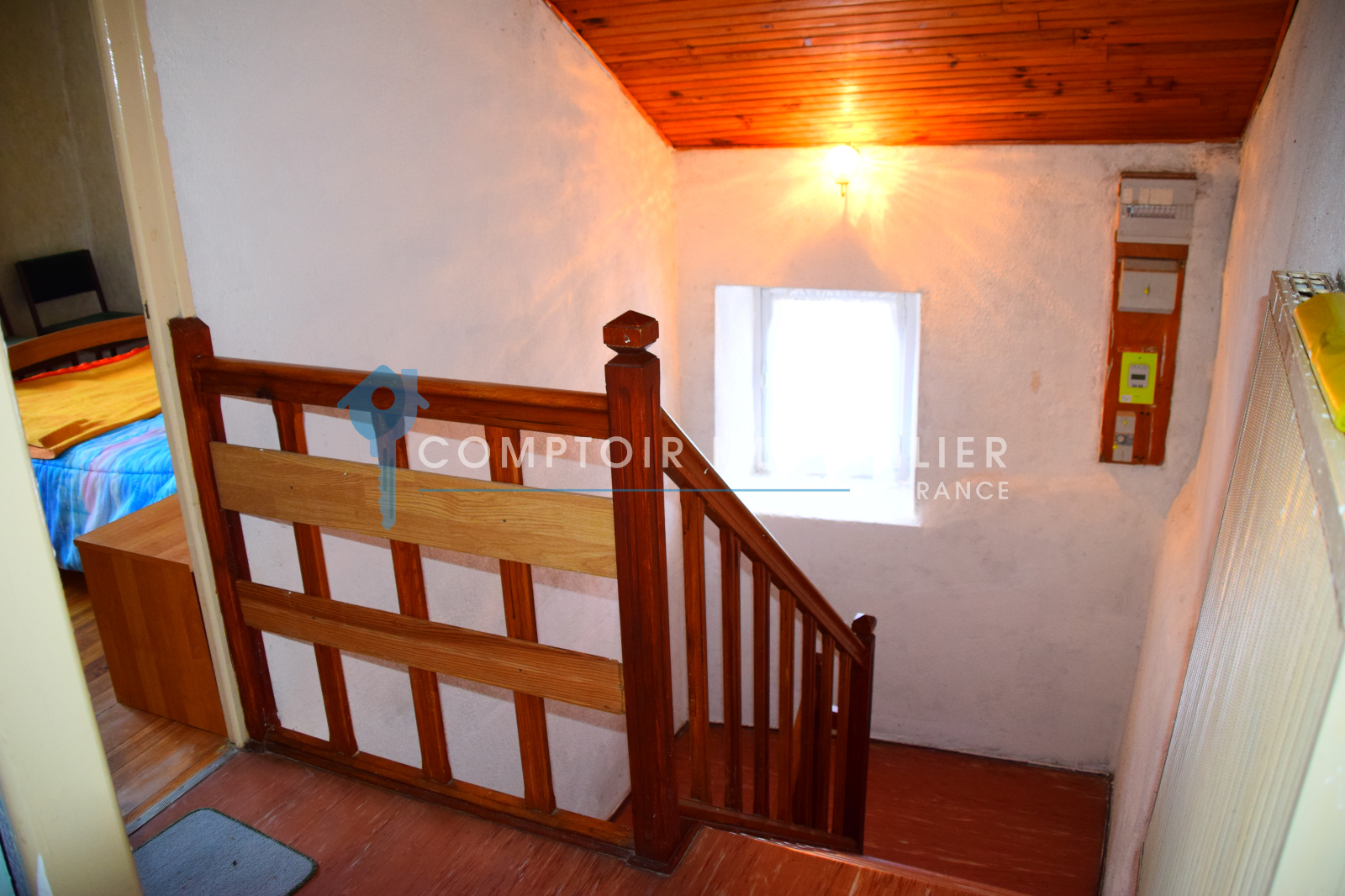 Un petit couloir de 1,8 m² vous mènera à un WC de 1,1 m² et une salle d’eau de 2,2 m² ; Le palier de 9.7 m² donne accès au premier étage.