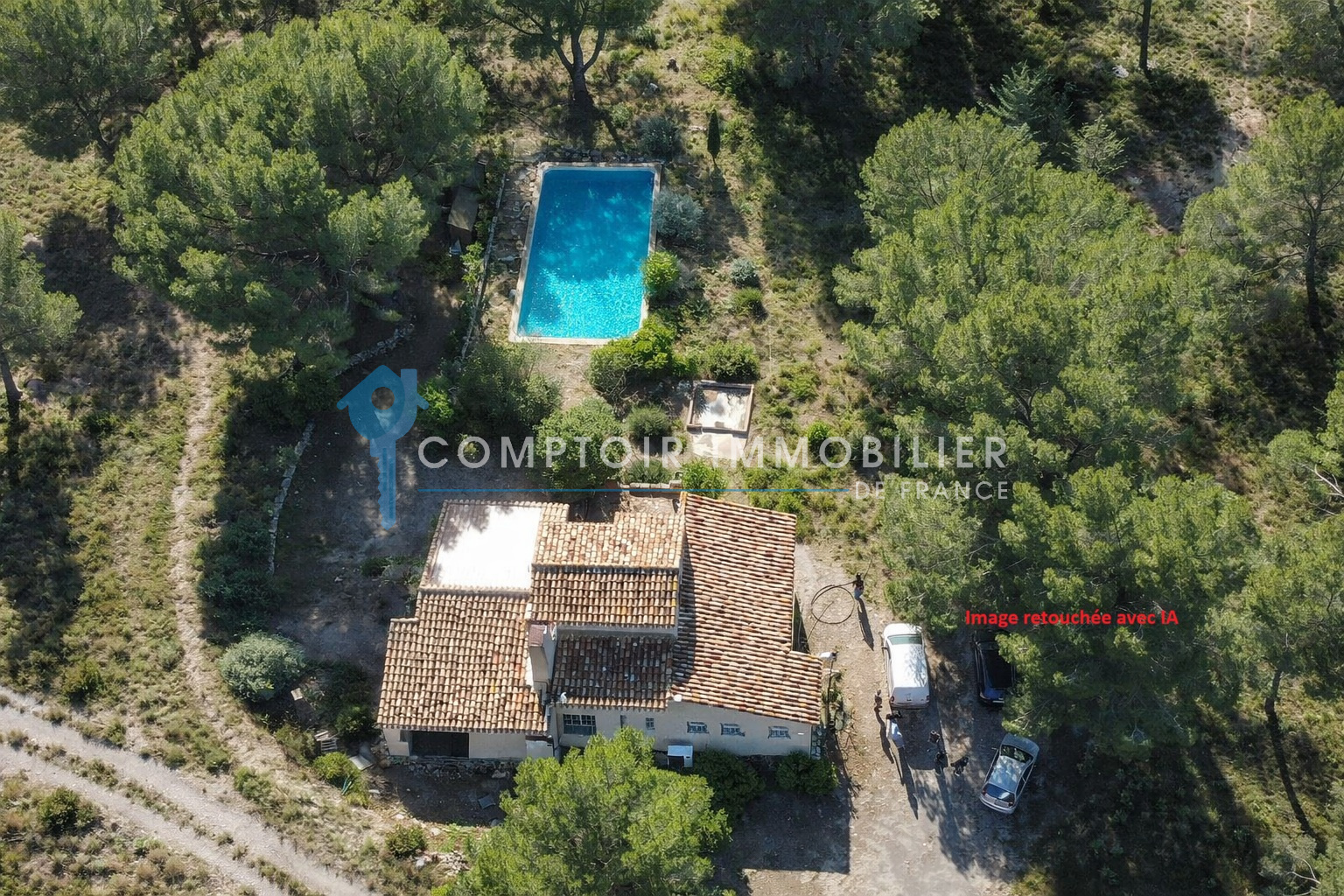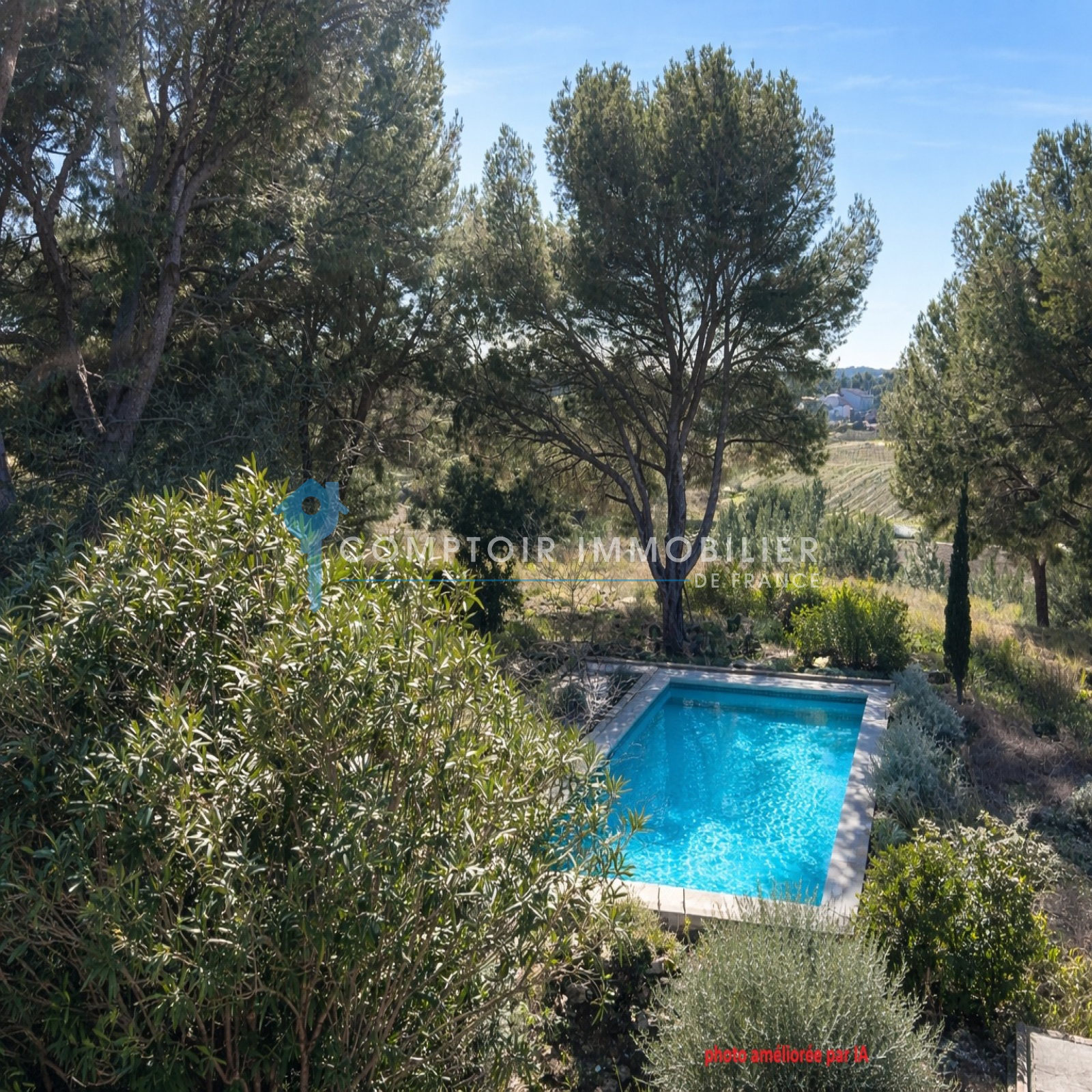 Ce domaine est arboré avec des essences méditérannéennes types oliviers, pins, il possède sa propre forêt.