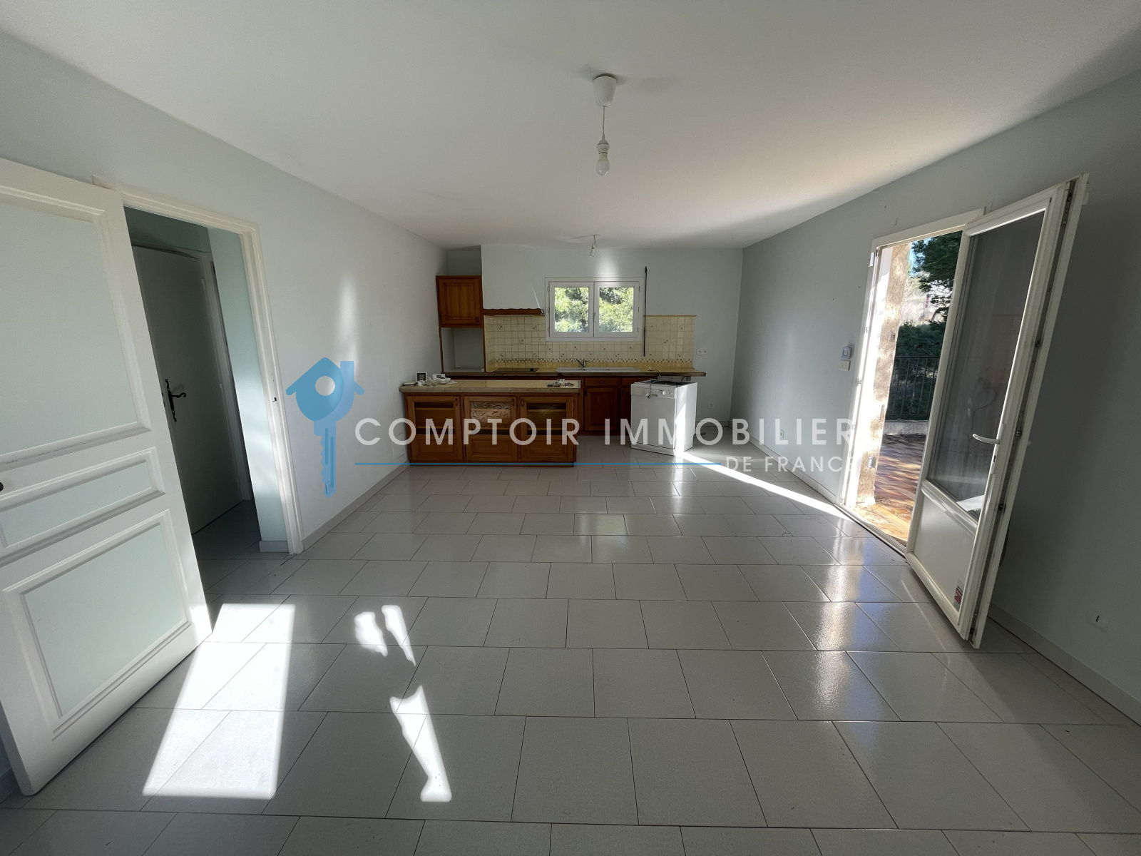 Entrée, séjour et cuisine ouverte