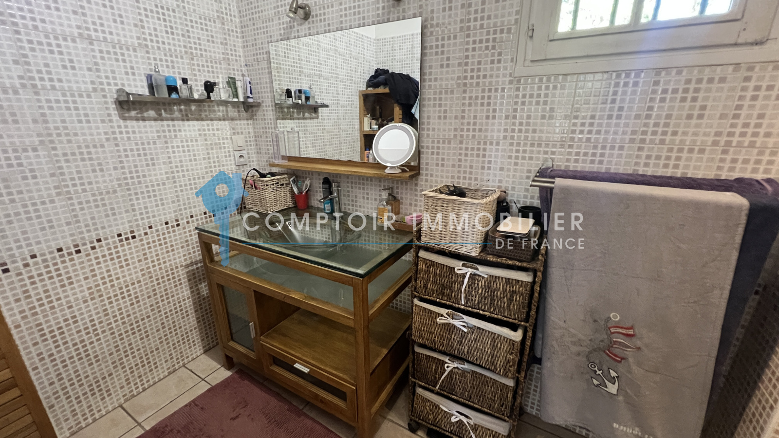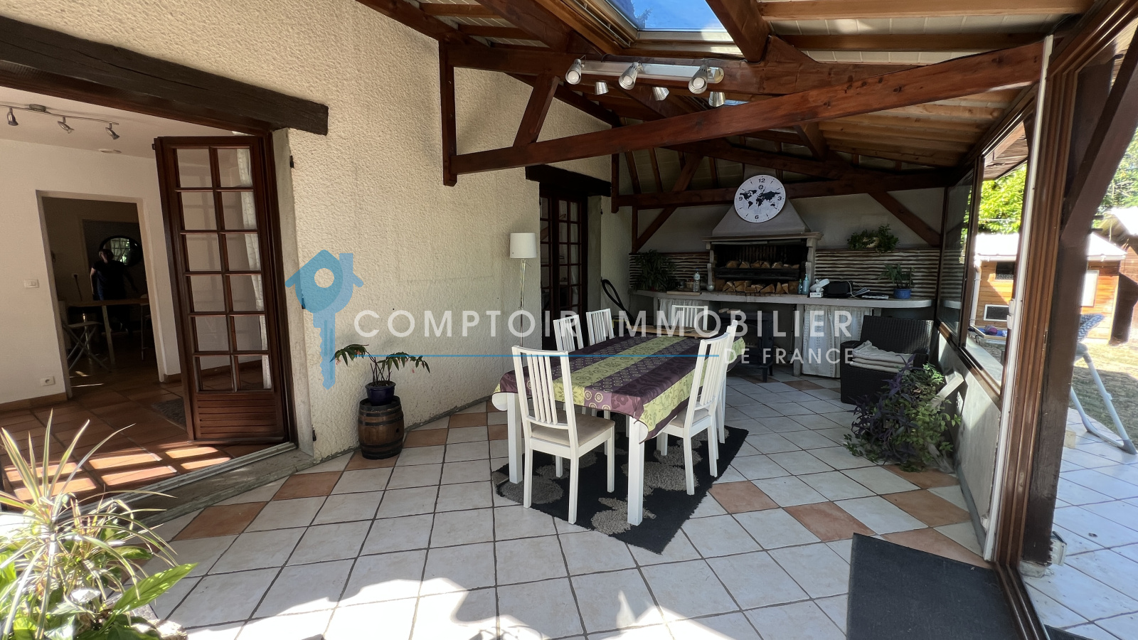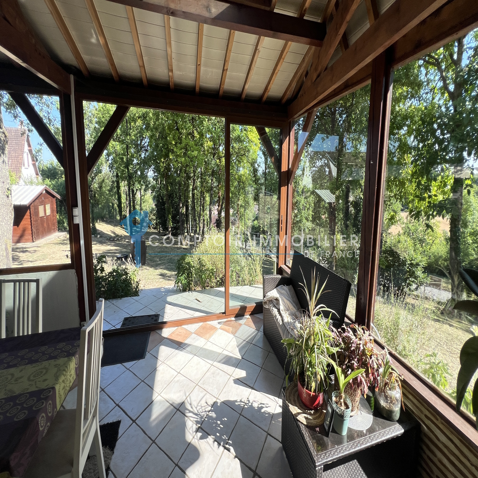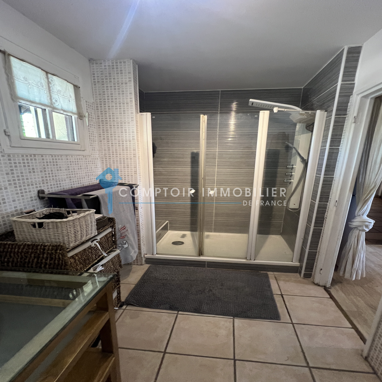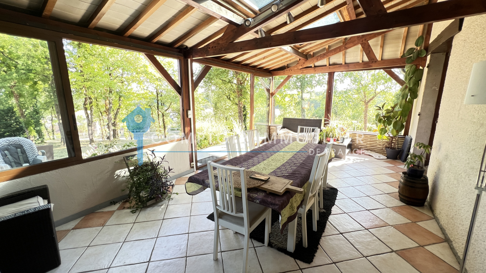 Vous disposerez au Rdc, d'une vaste entrée cathédrale, un salon/.séjour avec poele à granulés (avec répartition de la chaleur à l'étage), une véranda d'environ 30m2 avec poele à bois, une cuisine aménagée et équipée, un wc et une suite parentale avec sa salle d'eau.