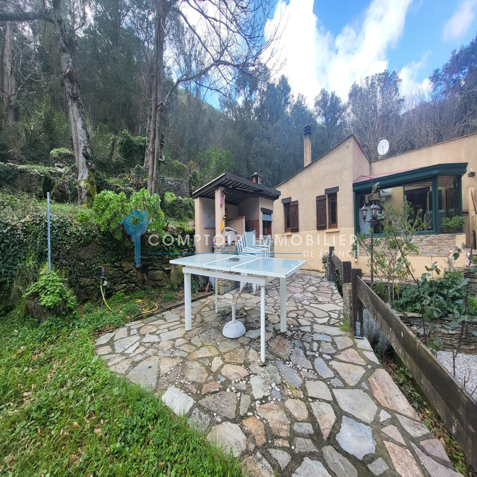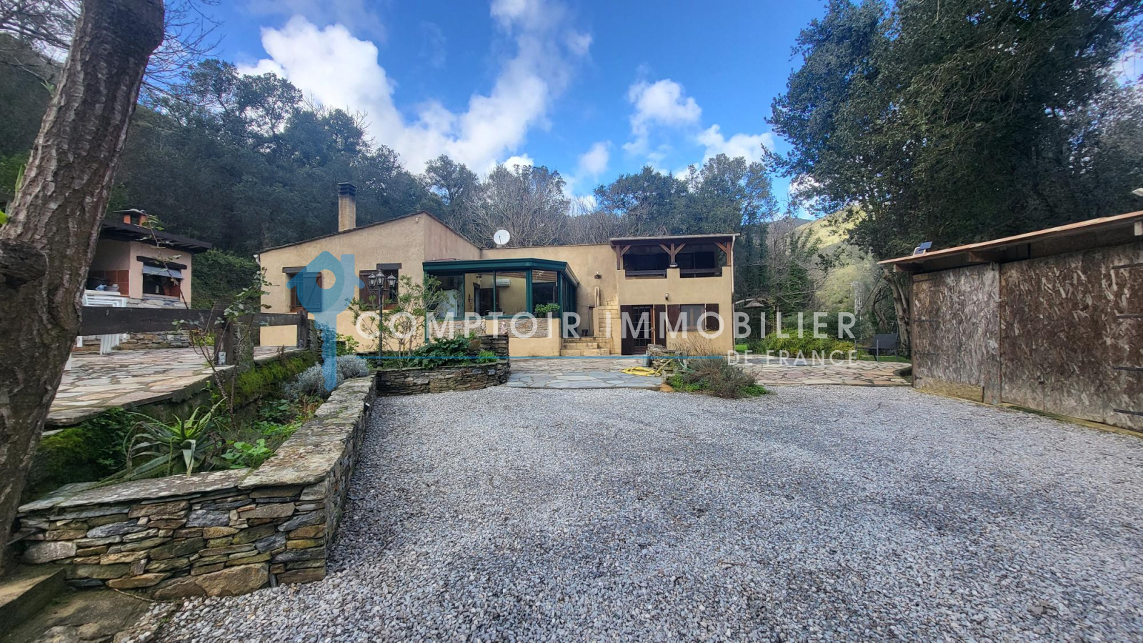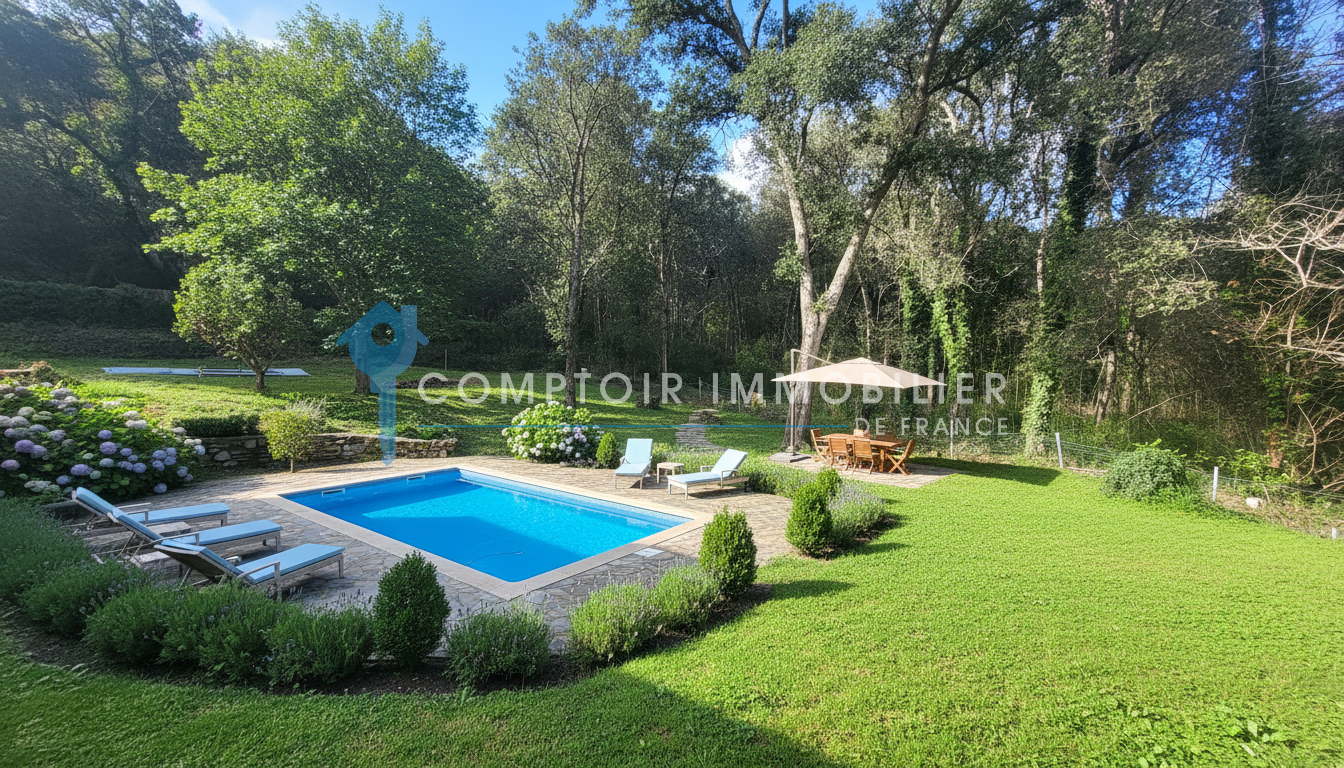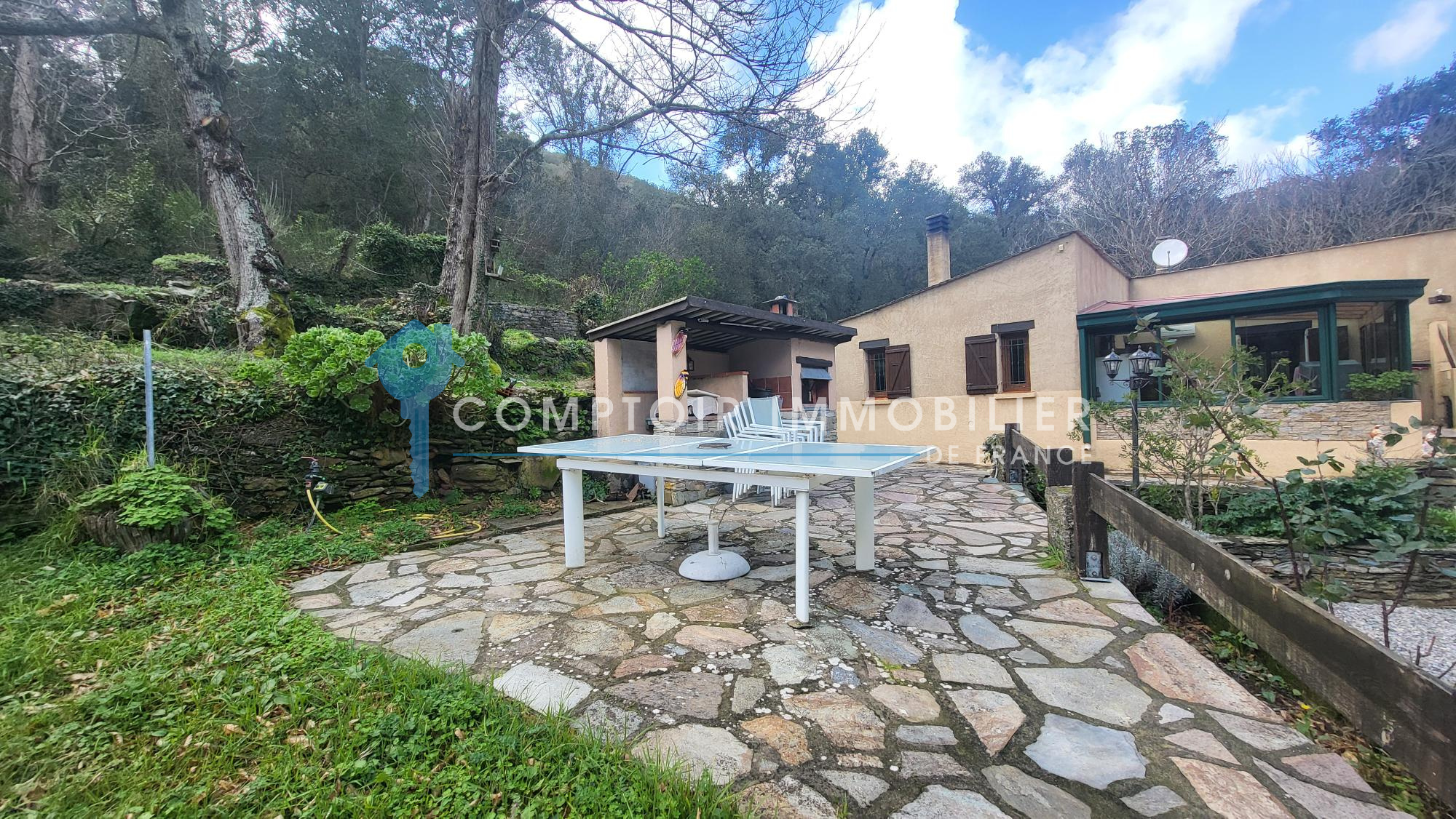 Un garage et une cave à vin en dur complétent les prestations de ce bien.