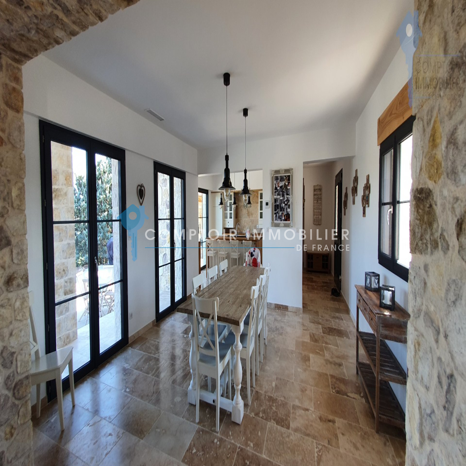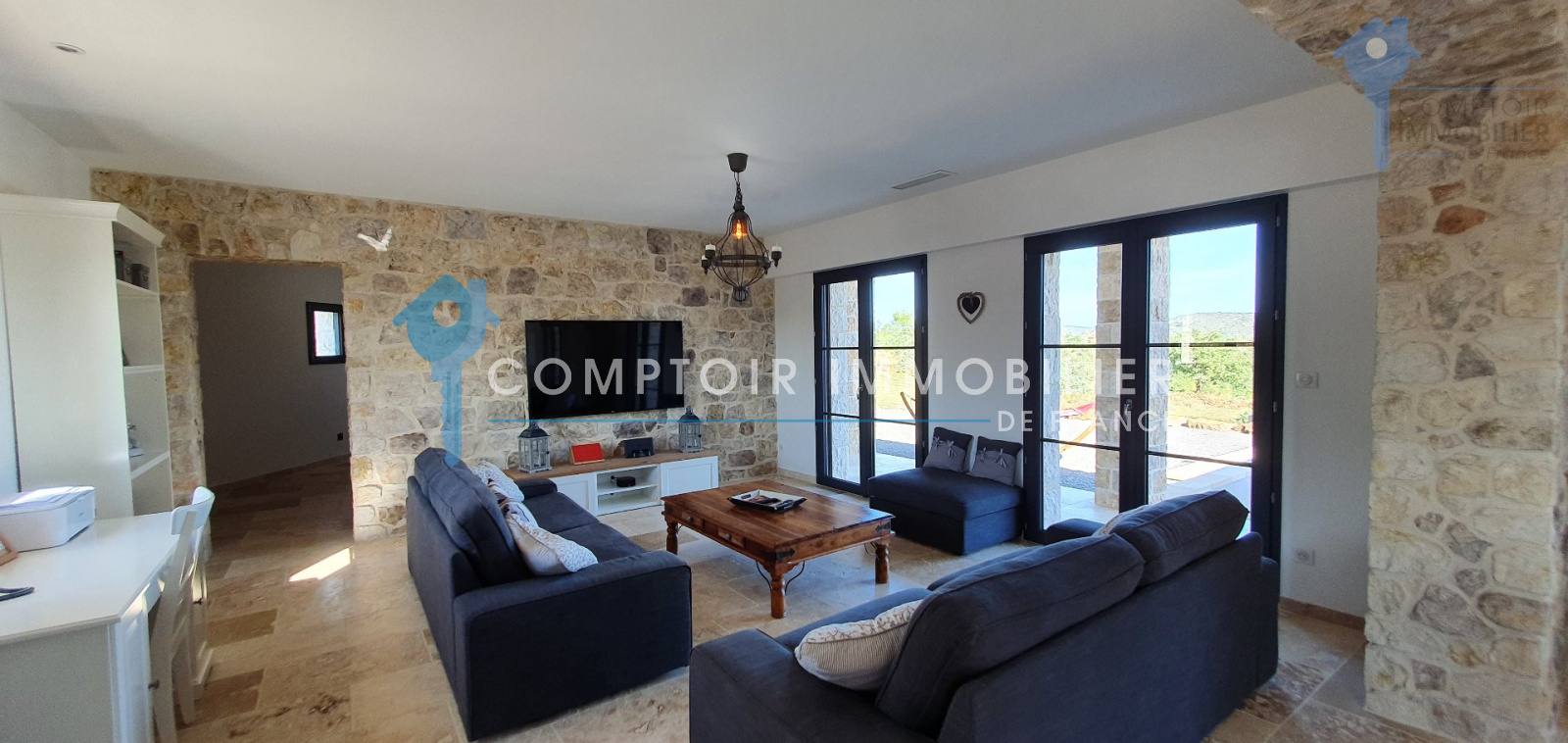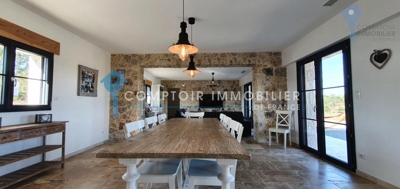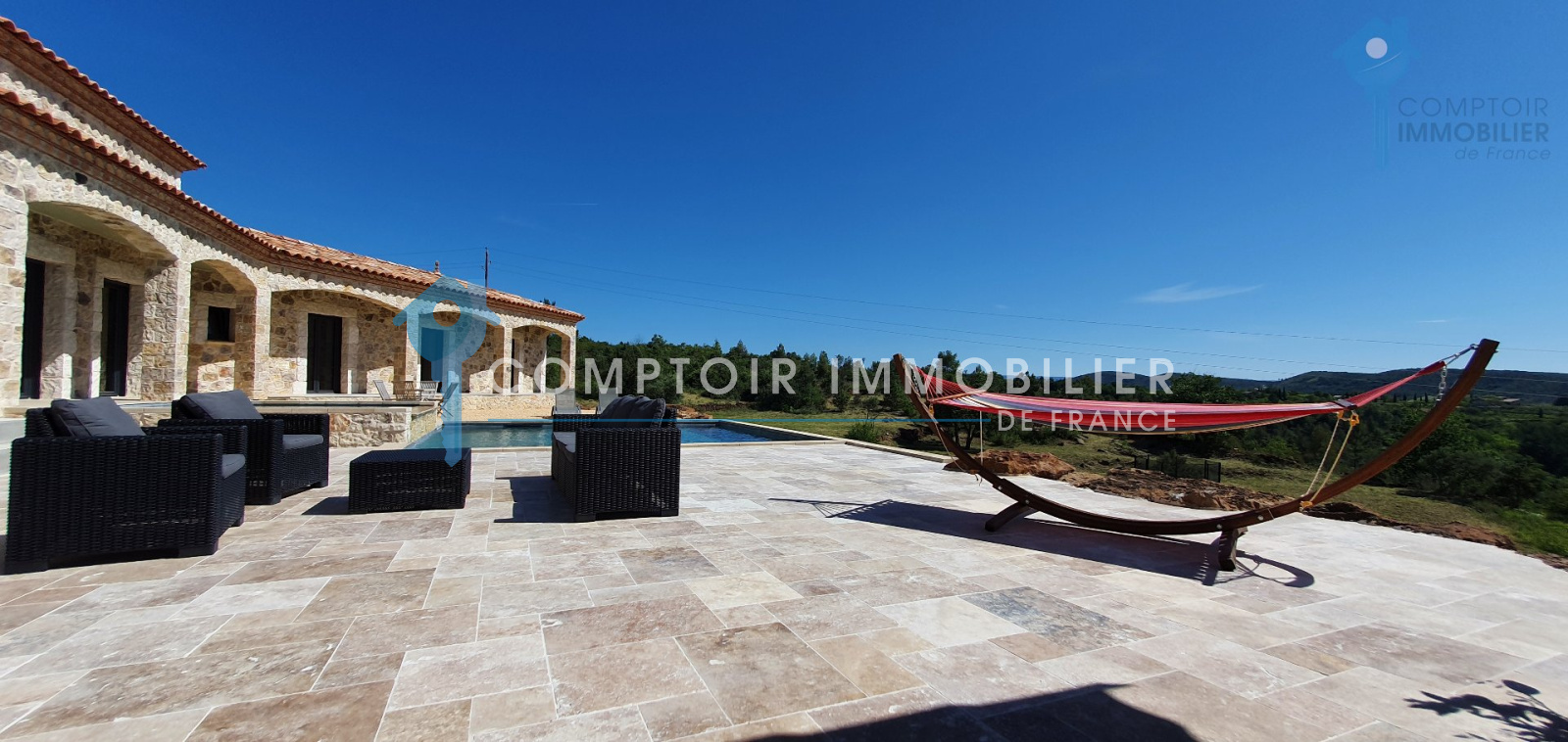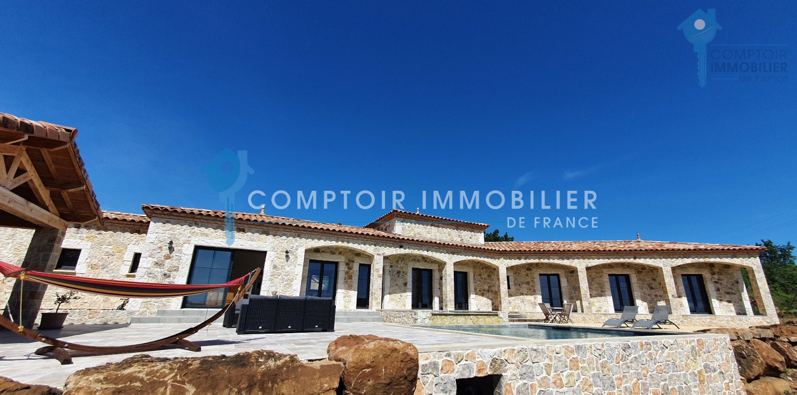 EXCLUSIVITE DE L?AGENCE C.I.F. ARDECHE ENTRE AUBENAS ET LARGENTIERE Avec une vue panoramique exceptionnelle, en bordure d?un quartier résidentiel, somptueuse villa de 2019 de plain-pied vous offrant aujourd?hui une surface habitable de 206 m² environ ! La partie jour de 70 m² environ comporte une cuisine très bien équipée, ouverte sur la salle à manger, puis sur le salon, le tout très lumineux avec ses grandes baies vitrées ouvrant sur la terrasse, la pataugeoire enfant de 10 m² avec débordement sur la piscine de 36 m² en surplomb du terrain ; La partie nuit de 70 m² dans l?aile gauche, desservie par un couloir comporte 3 belles chambres, dont une avec dressing avec chacune sa porte vitrée donnant sur la terrasse, une grande salle de bains avec baignoire balnéo et grande douche à l?italienne, ainsi qu?un W.C. séparé ; Dans l?aile gauche, grand hall d?entrée, W.C. séparé, buanderie cellier de 16 m², ainsi qu?une suite parentale indépendante de 24 m² avec douche à l?italienne et W.C. séparé ; Chauffage et climatisation avec pompe à chaleur et réseau gainable avec thermostat dans chaque pièce ; Poolhouse de 32 m² avec cuisine équipée et W.C. séparé ; Très belle construction avec beaucoup de goût et des matériaux de grande qualité ; Garage fermée de 50 m² pour deux voitures avec portes motorisées ; Et, le tout sur une grande et belle parcelle de 7.600 m² dans un secteur non-constructible ! Un prix justifié de 650.000 € H.A.I. pour cette magnifique villa à découvrir rapidement avec Bruno CHAMPETIER, votre Conseiller Immobilier C.I.F. ARDECHE CE BIEN EST DISPONIBLE EN VISITE VIRTUELLE 3D Honoraires charge vendeur CIF ARDECHE - Bruno CHAMPETIER - 06 70 16 21 00 - Plus d'informations sur cif-ardeche.com (réf. 13455) -- Informations CORONAVIRUS : Nos visites s'effectueront avec la mise en place d'un protocole sanitaire, notamment avec le port d'un masque et dans le respect des gestes barrières, afin d'assurer la protection de tous. --