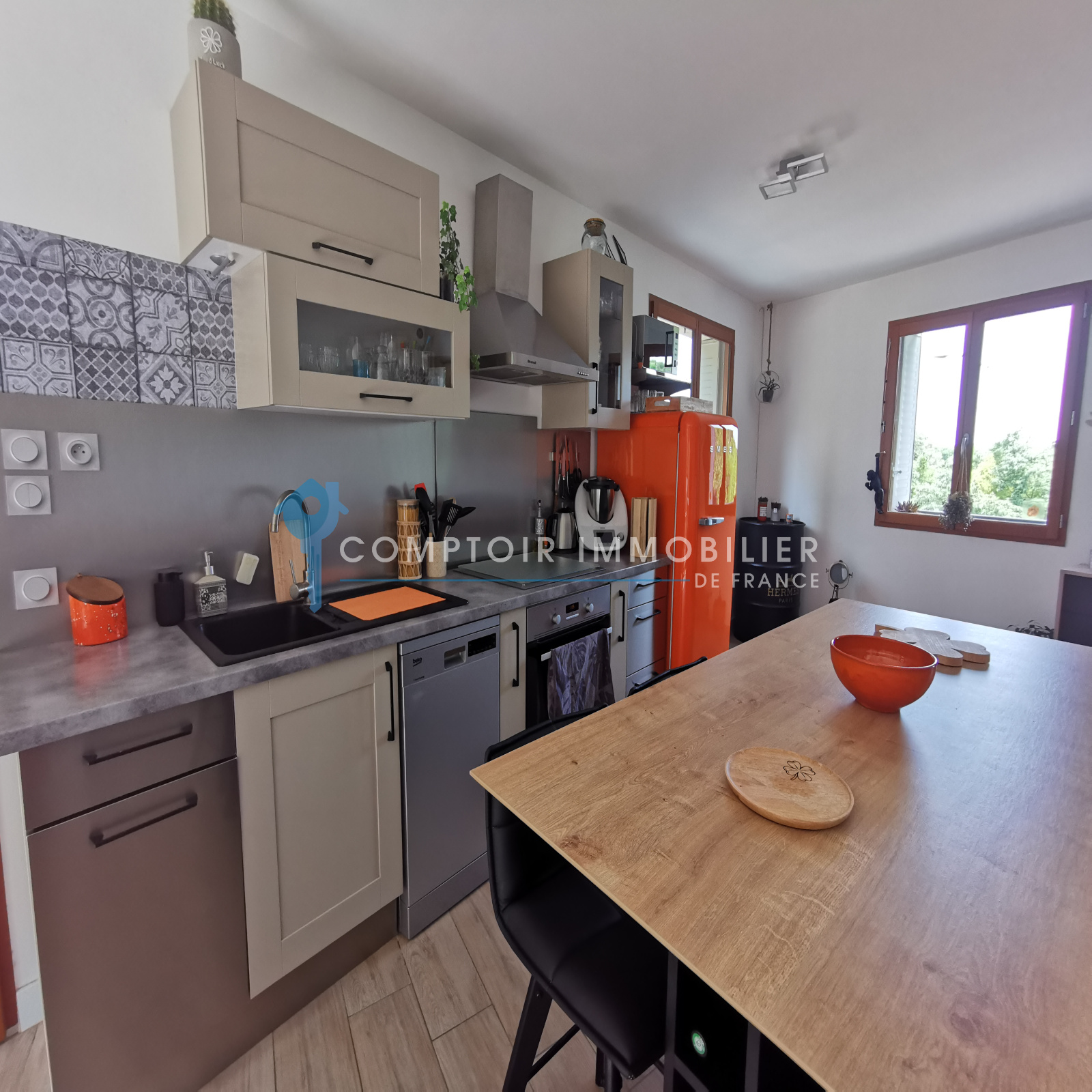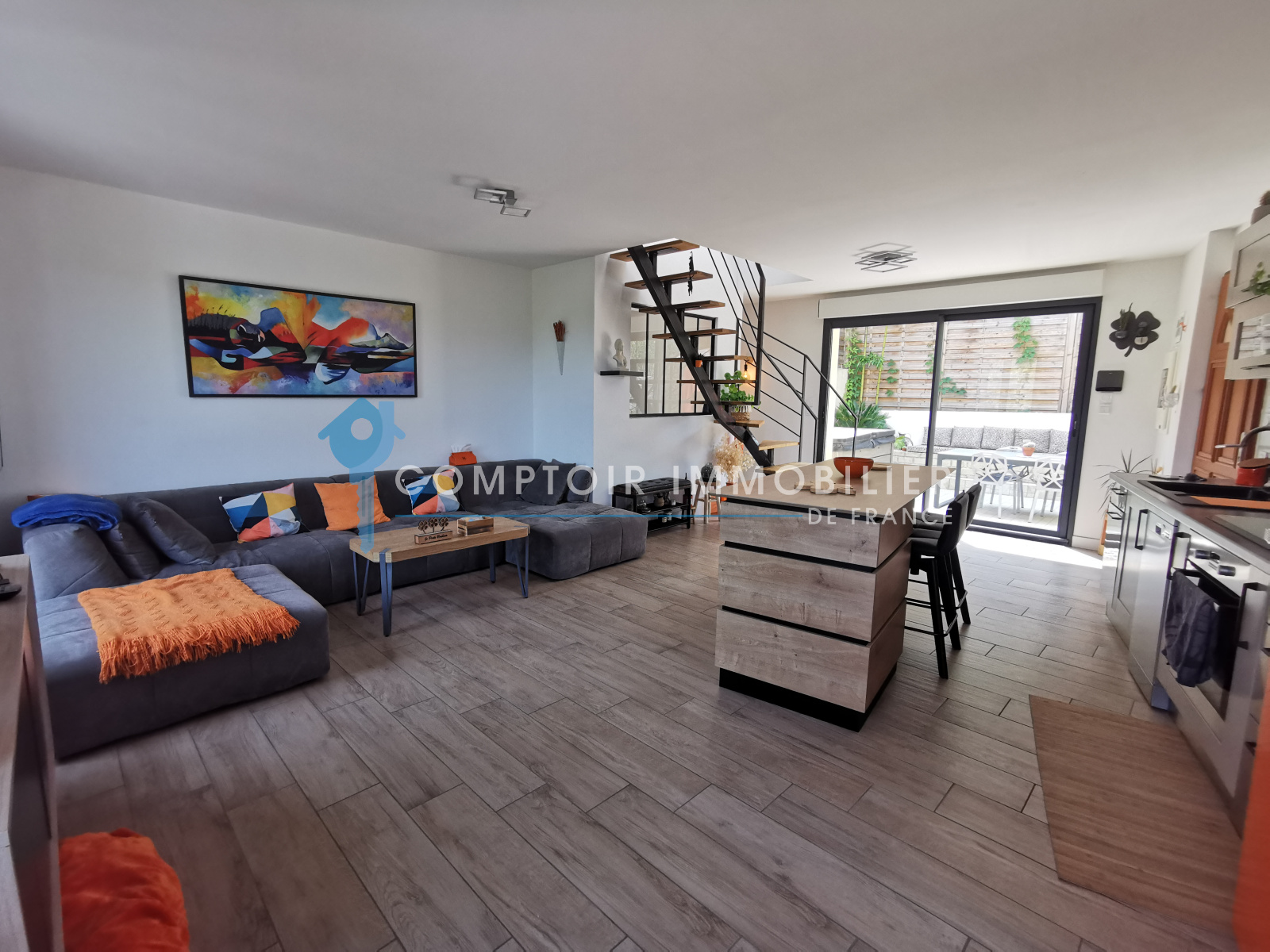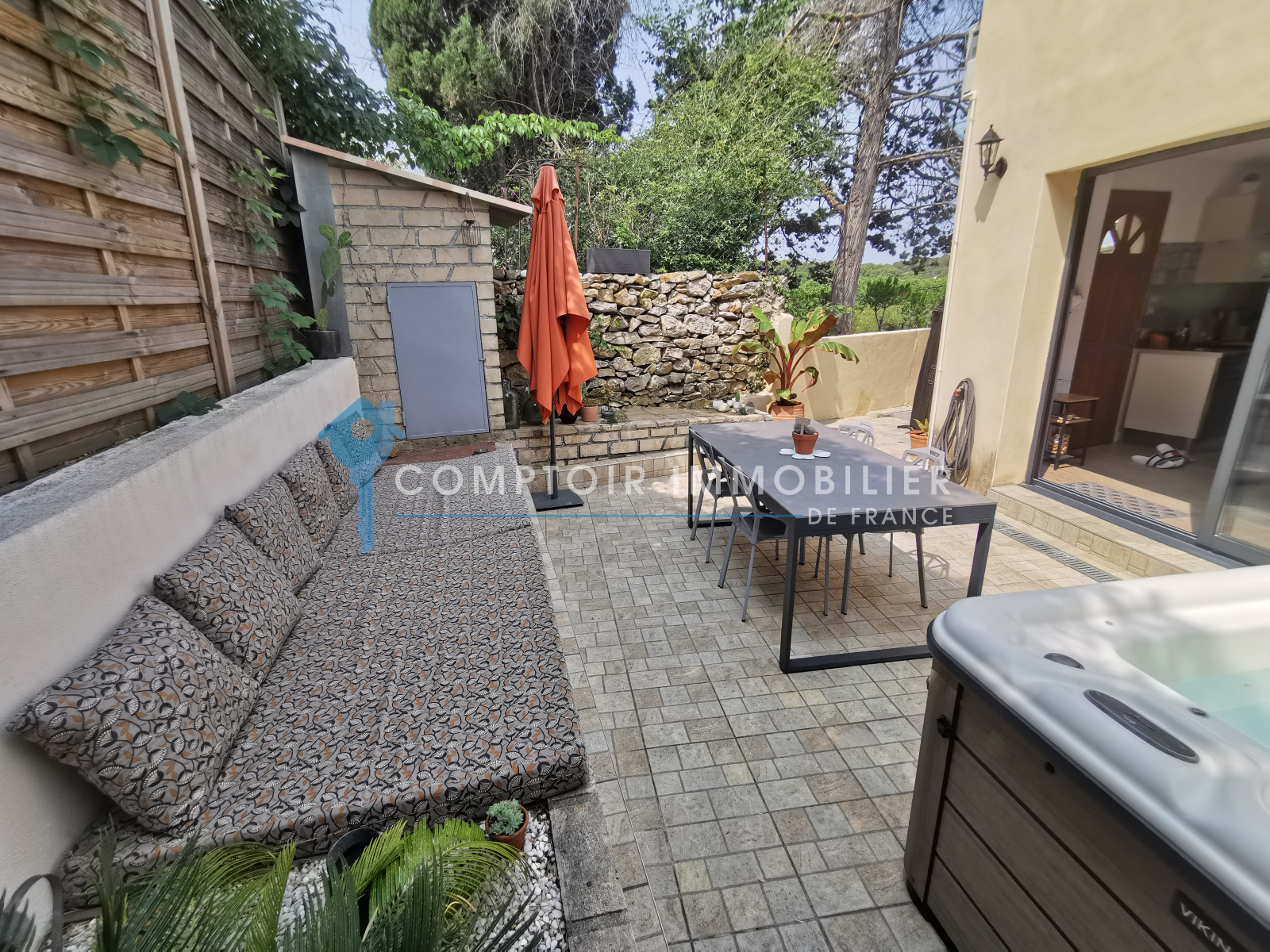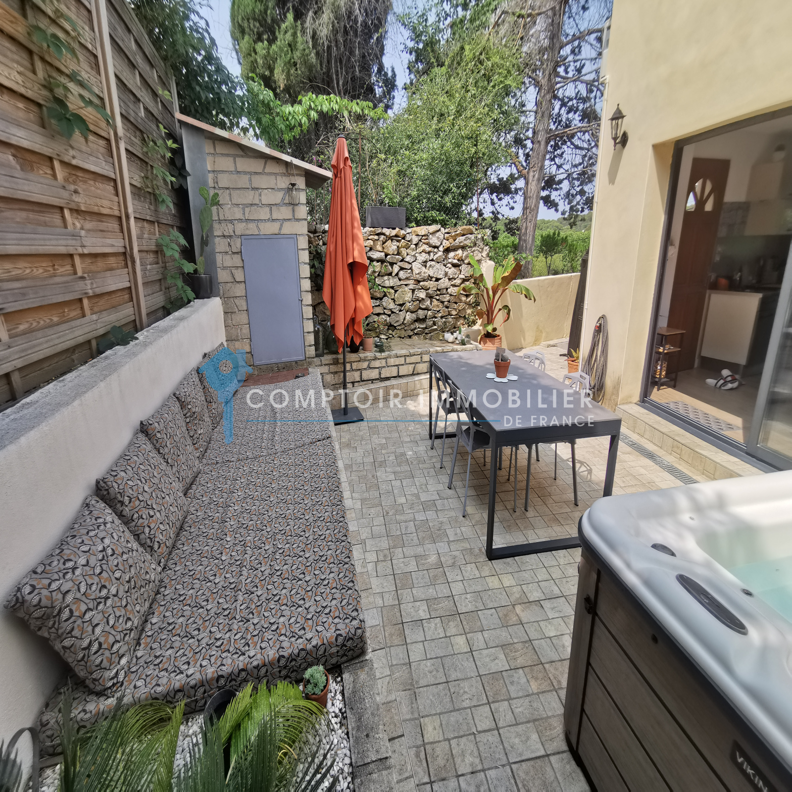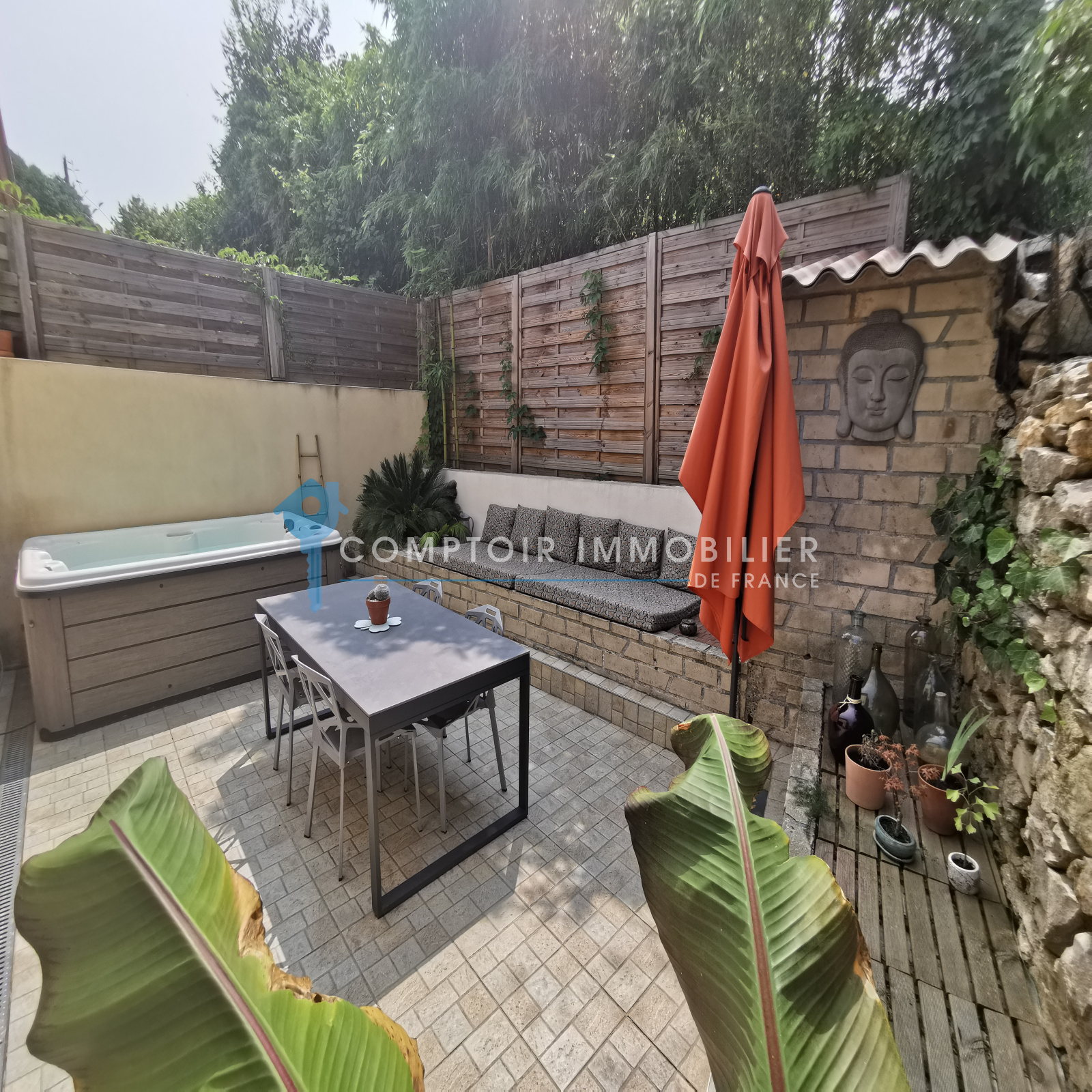 Une jolie terrasse sans vis à vis avec un coin jacuzzi et un garage de plus de 30m² viennent parfaire les lieux.