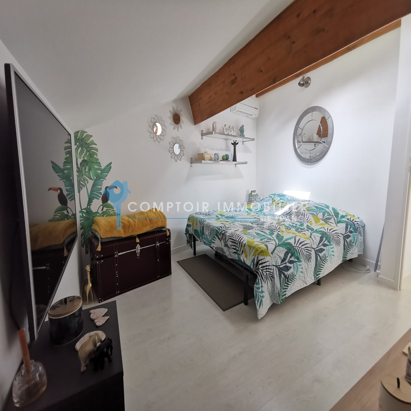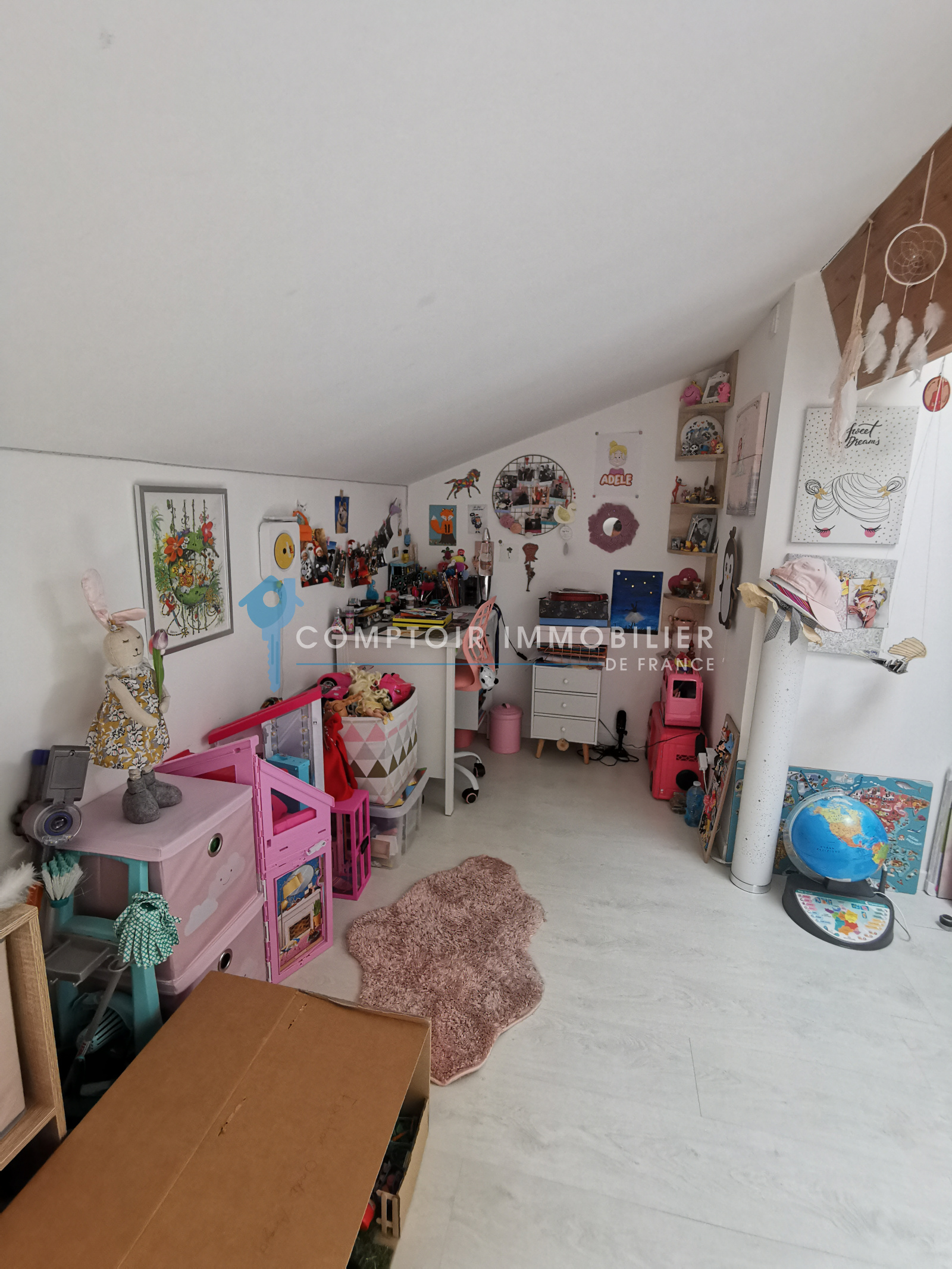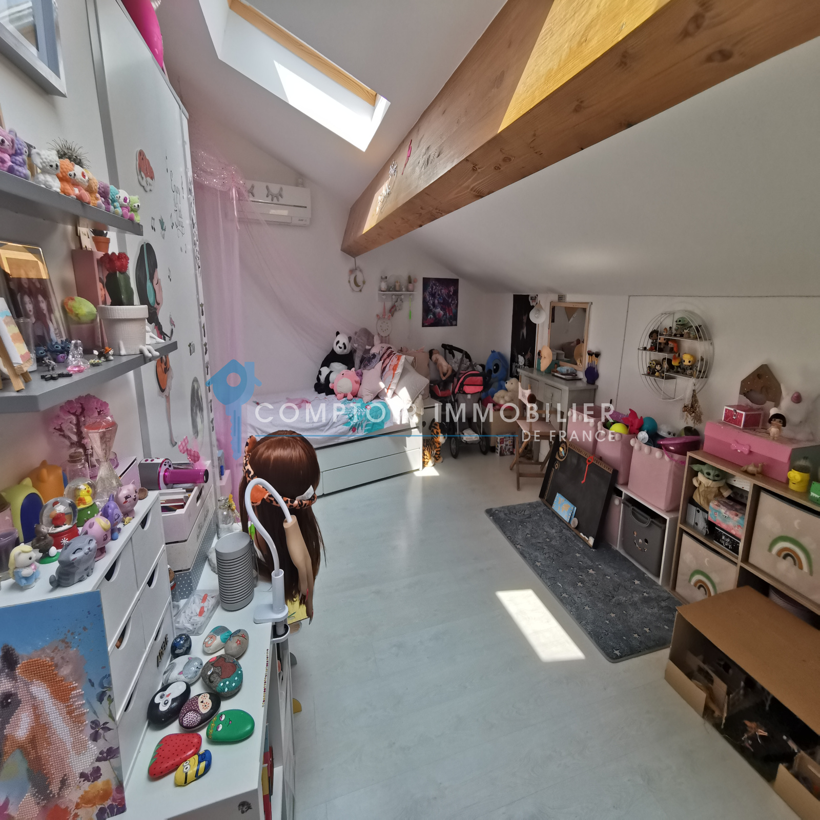 De configuration atypique, elle se compose d'un bel espace de vie de plus de 34m² très lumineux grâce à ses nombreuses ouvertures, d'une spacieuse suite parentale, d'une buanderie, de 2 chambres mansardées ainsi que d'une salle d'eau.