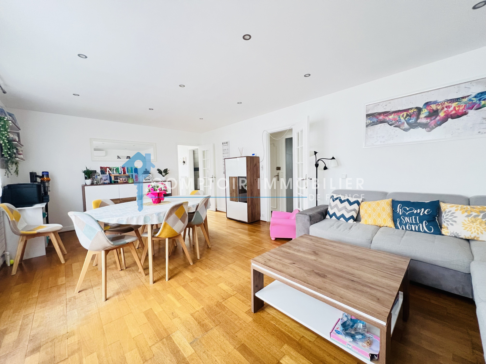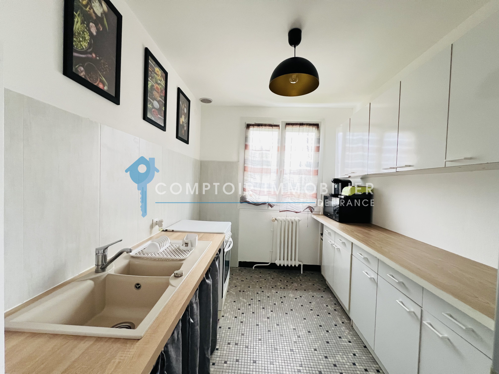 Elle se compose d'une entrée, un séjour d'environ 26 m², deux chambres, une cuisine indépendante, un wc, une salle d'eau.