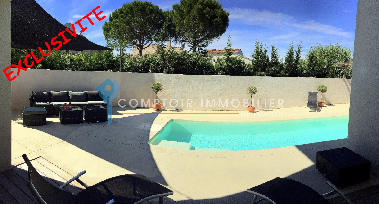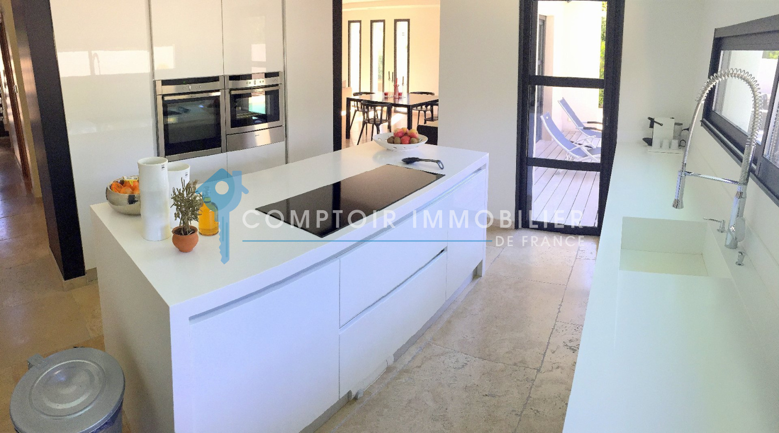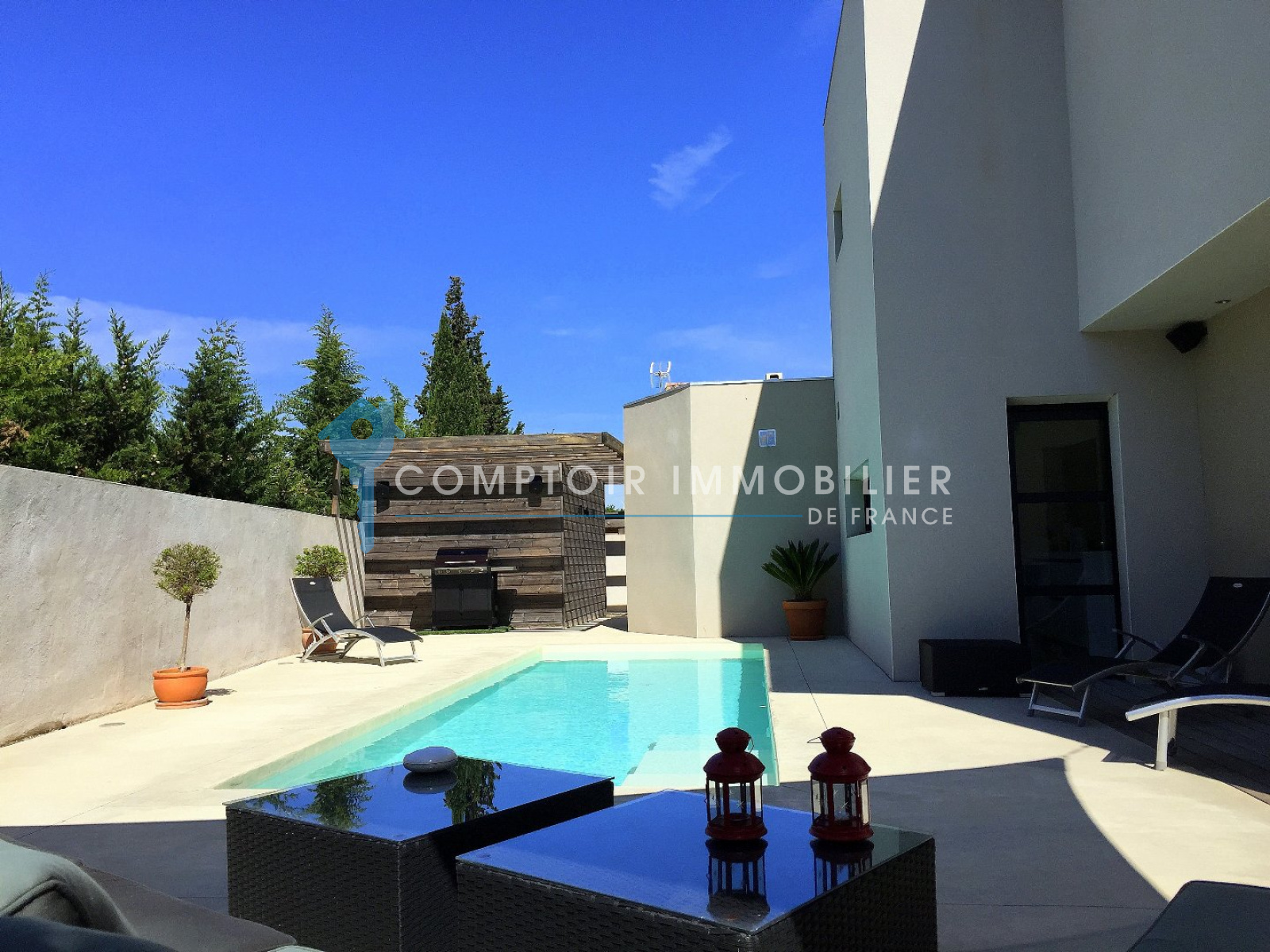 En Exclusivité, à Gigean et moins de 20 minutes à l?Ouest de Montpellier, Maison haut de gamme, récente et contemporaine qui est situé dans quartier calme, en zone non inondable. Cette magnifique maison de 160 m², non mitoyenne, bénéficie de toute la domotique dernière génération, commande à distance de chaque éclairage, température intérieur, musique, volet etc. Rien ne manque, l?alarme, aspiration centralisée pompe à chaleur gainable etc. L?architecture remarquable vous séduira certainement, notamment la passerelle vous permettant d?accéder aux chambres, le hall majestueux de plus six mètres de haut, toit plat, menuiserie. Il a été choisi de nombreux matériaux et matériels de très haut de gamme comme la robinetterie de marque GROHE, plan de travail cuisine en Corian, appareillage électrique JUNG avec gravure incorporé, plafond tendu BARRISOL, électroménager NOVI, NEFF, DAIKIN etc? Quant à la piscine exposé Sud/Sud-Ouest sans vis-à-vis vous permettra de passer d?agréable moment dès cet été ! Bien rare et de qualité. Honoraires charge vendeur COMPTOIR IMMOBILIER DE FRANCE - Christophe BAULO - 06 50 197 197 - Plus d'informations sur www.cif-immo.com (réf. 6534)