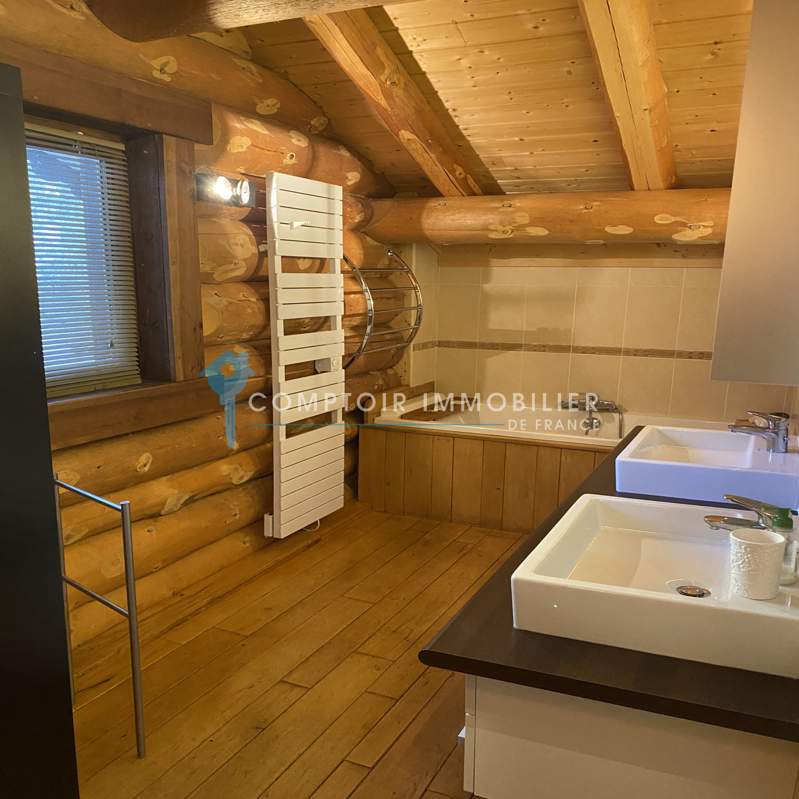 Au calme, Magnifique chalet individuel en rondins non calibrés sur un terrain arboré de 1195 m2.