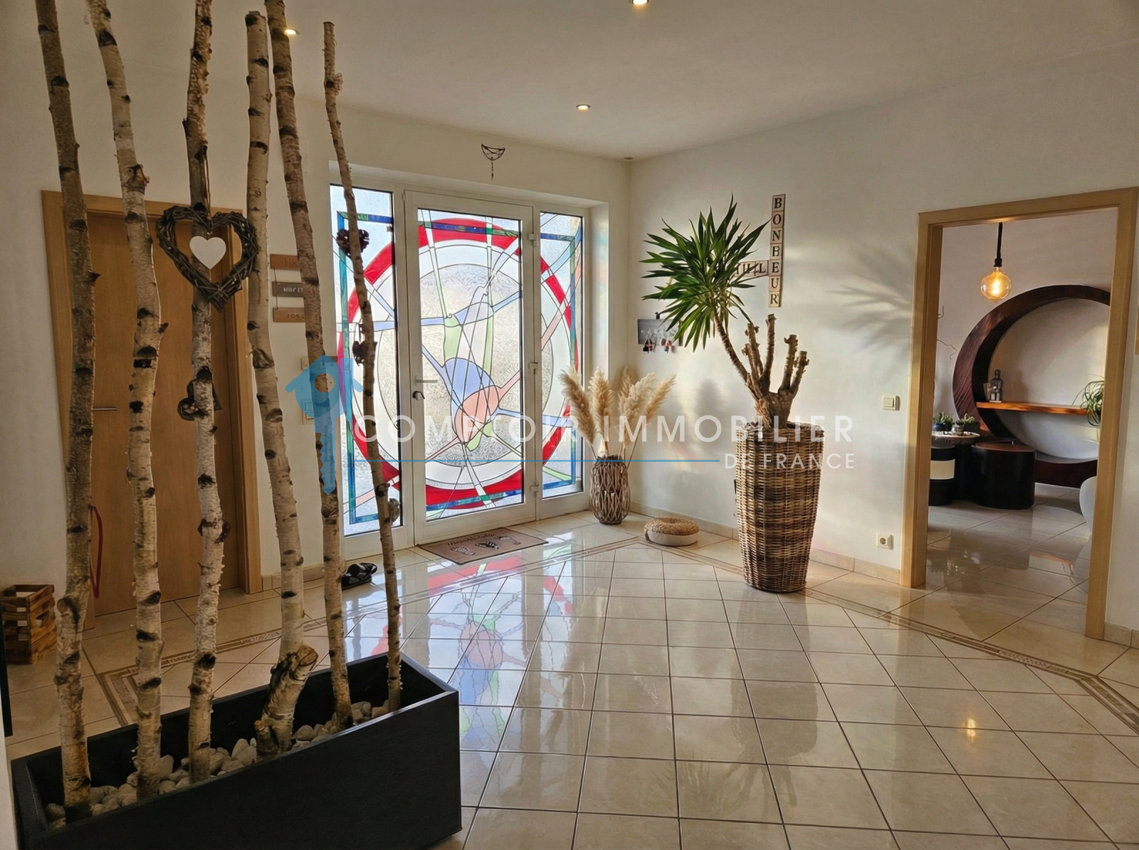Dès l’entrée, vous serez séduit par ses volumes généreux et sa luminosité. Elle se compose d’une vaste entrée, d’un spacieux séjour double baigné de lumière avec vue directe sur la piscine chauffée et la nature environnante. La cuisine indépendante, entièrement équipée, donne accès à une grande terrasse idéale pour vos moments de détente et de réception.
