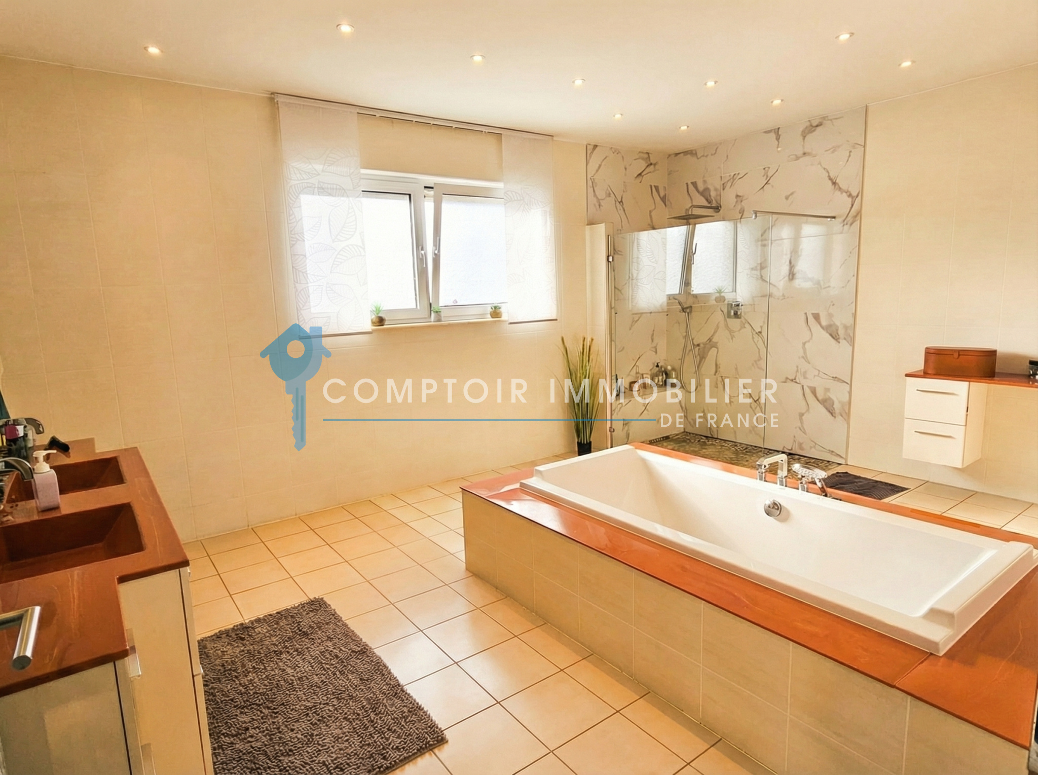 L’espace nuit propose 4 belles chambres ainsi qu’un coin dressing. Vous profiterez également d’une salle de bains XXL avec baignoire et douche, alliant confort et élégance.
