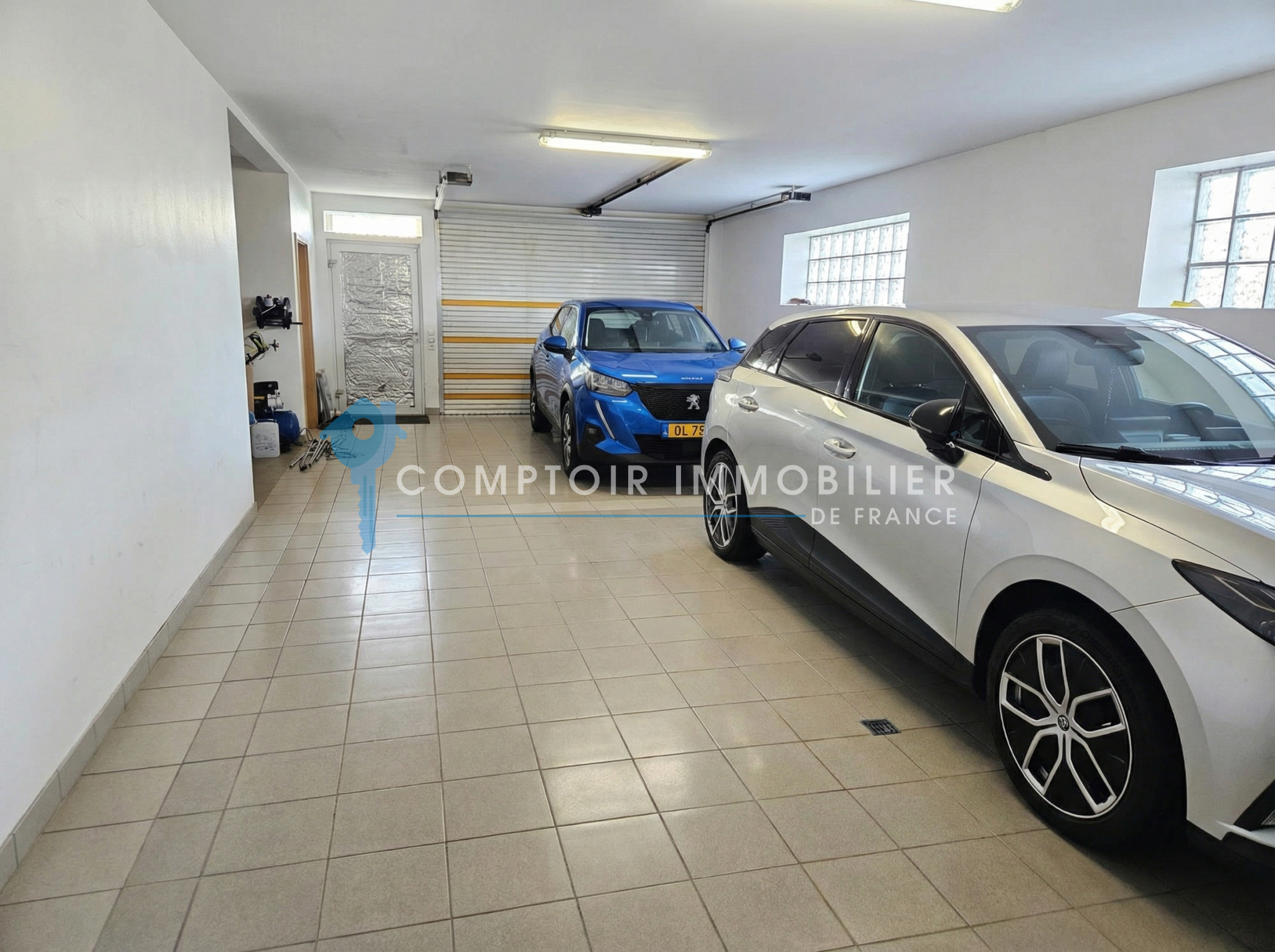 1 grand garage pouvant accueillir 3 à 4 véhicules