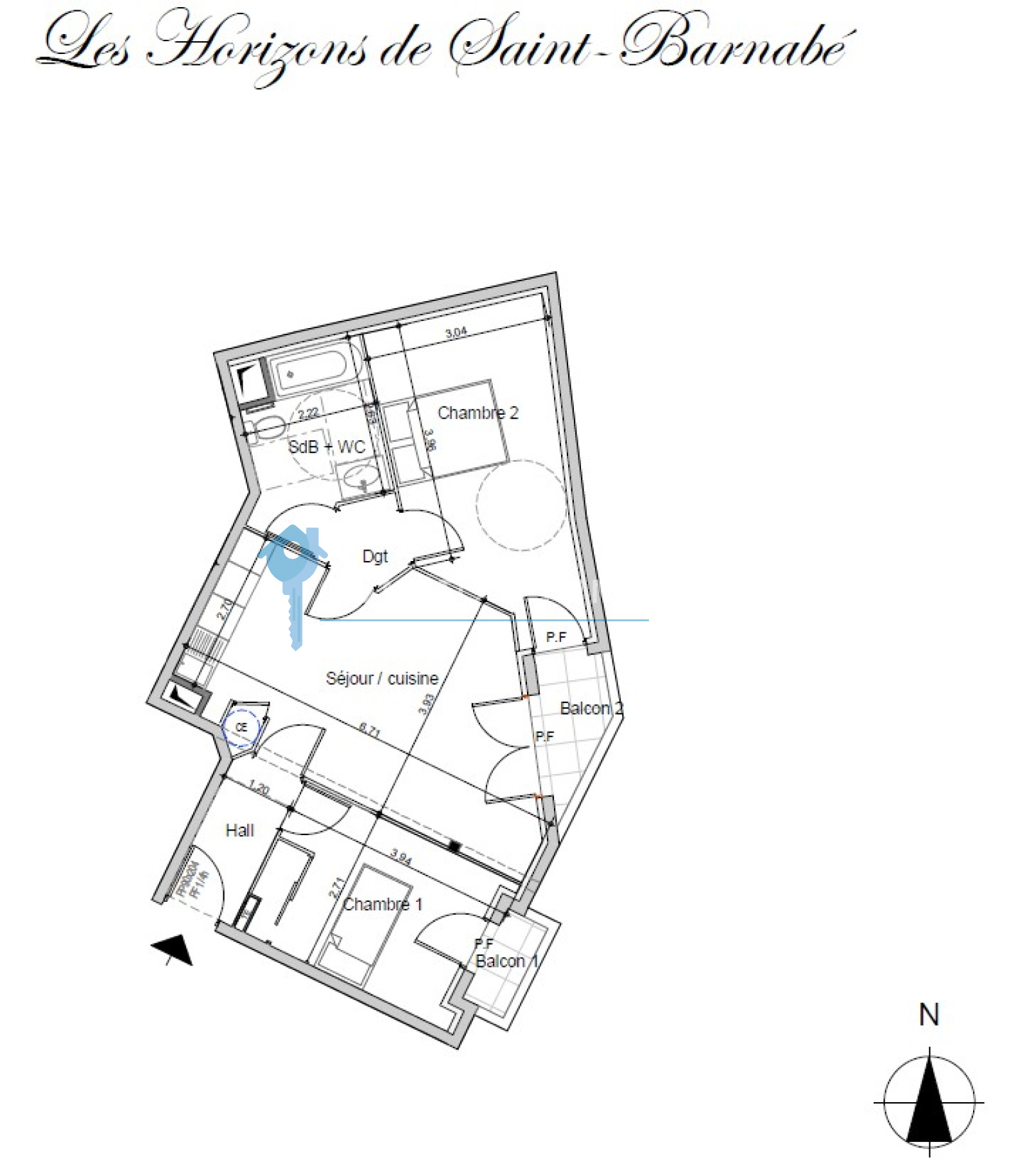 Dans jolie résidence récente sécurisée au calme "Les Horizons de Saint-Barnabé", T3 avec balcon vue sur parc,