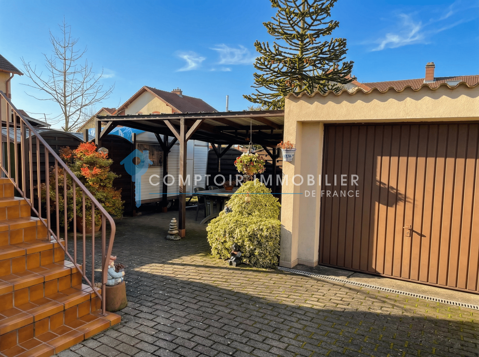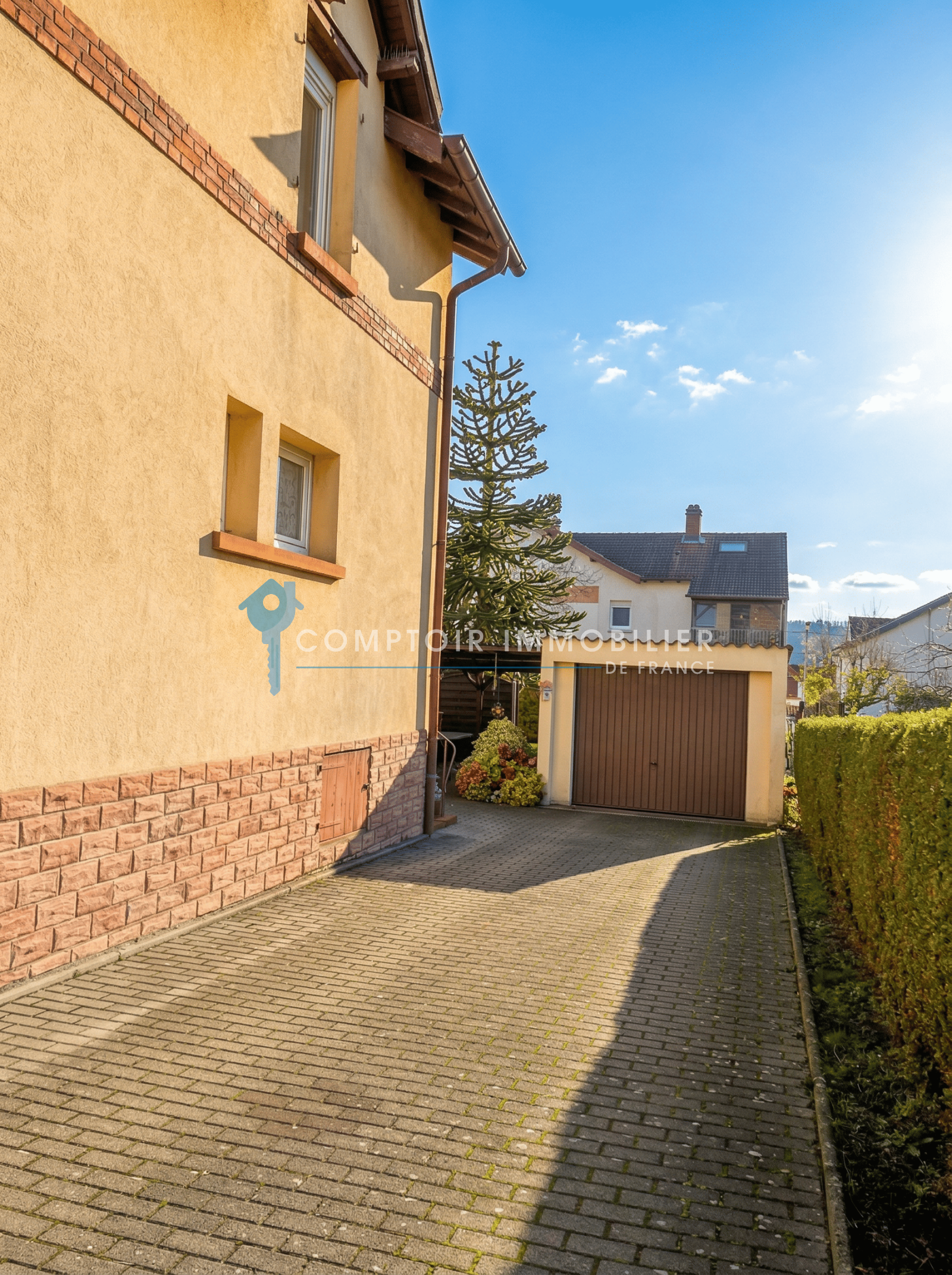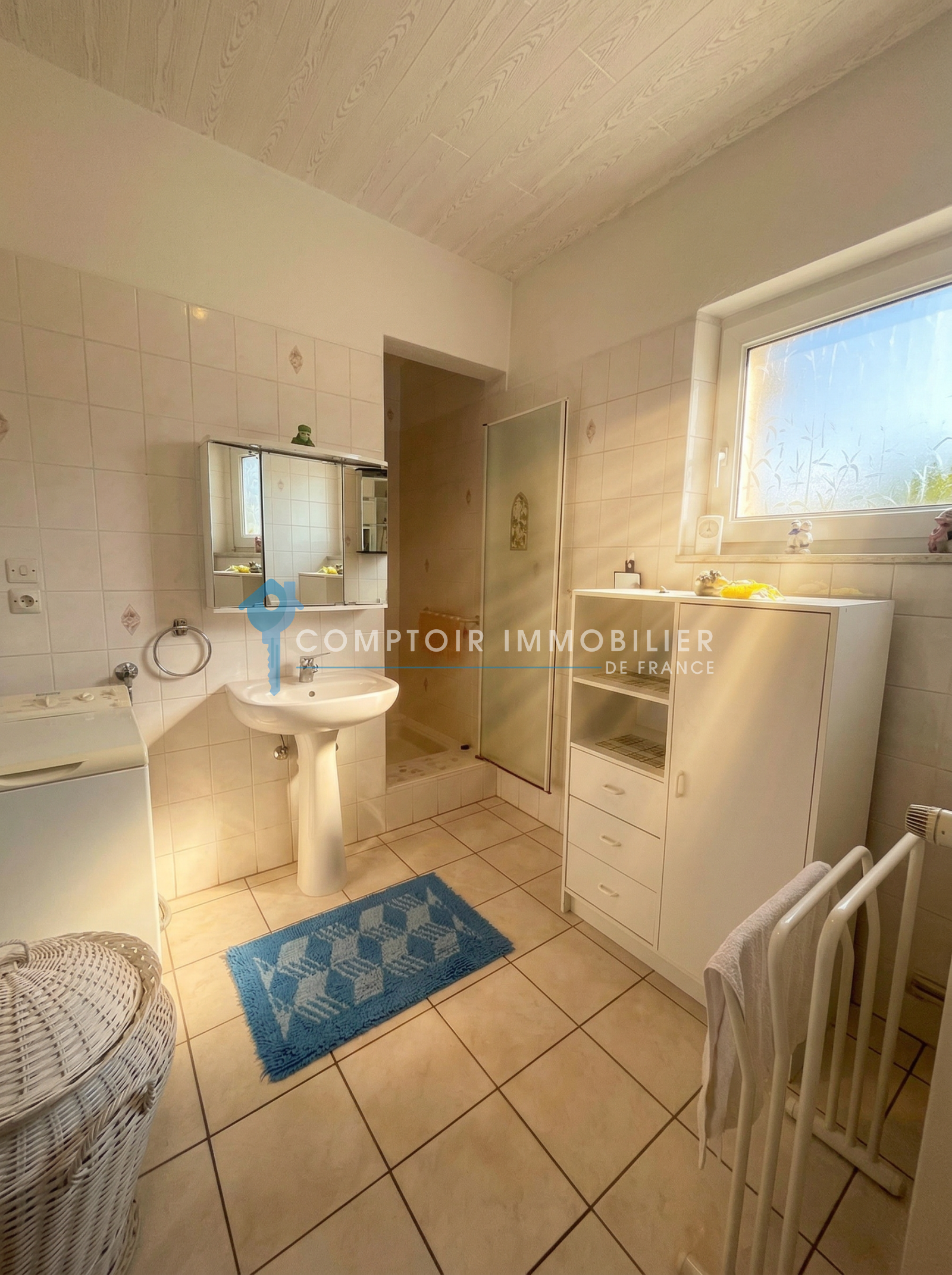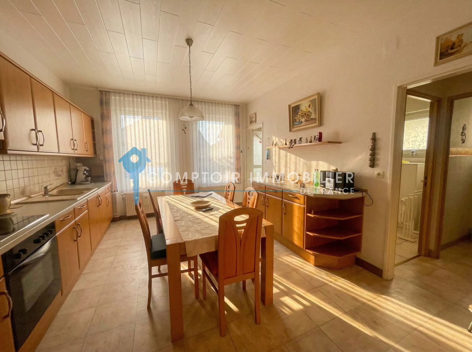 Entrée salon cuisine équipée. Accès terrasse jardin clos et garage. SDE à l étage 3 Chambres dont une en enfilade.