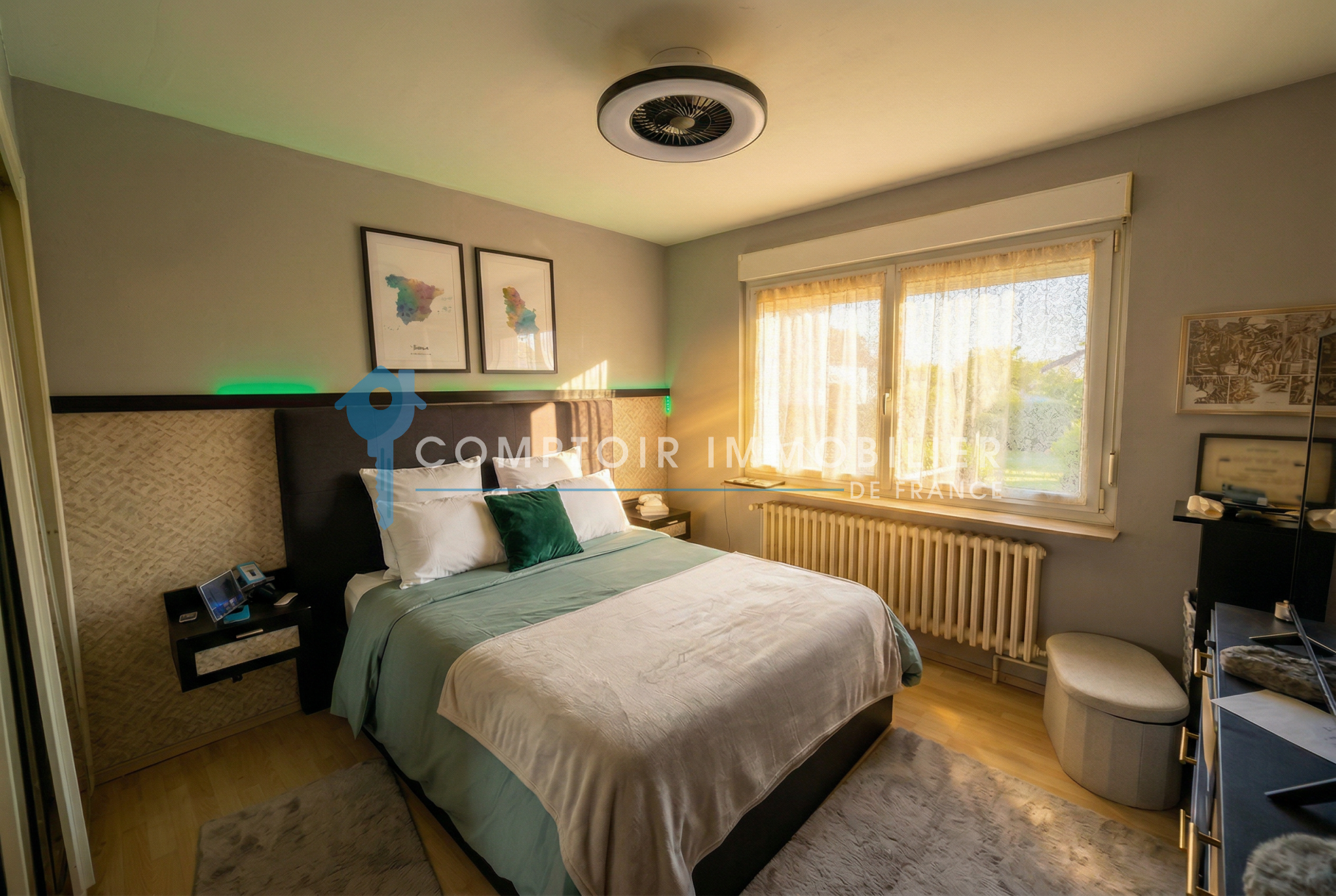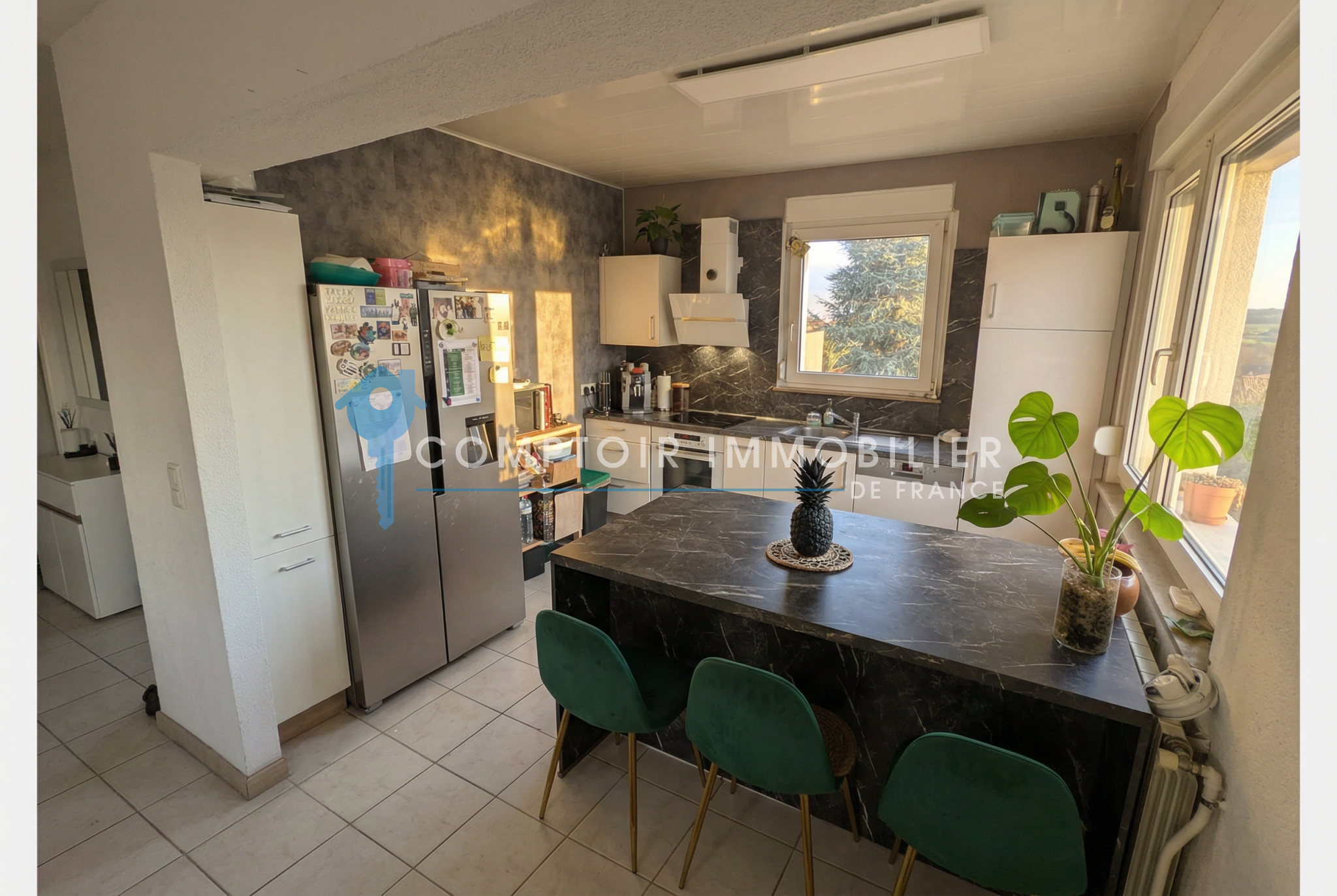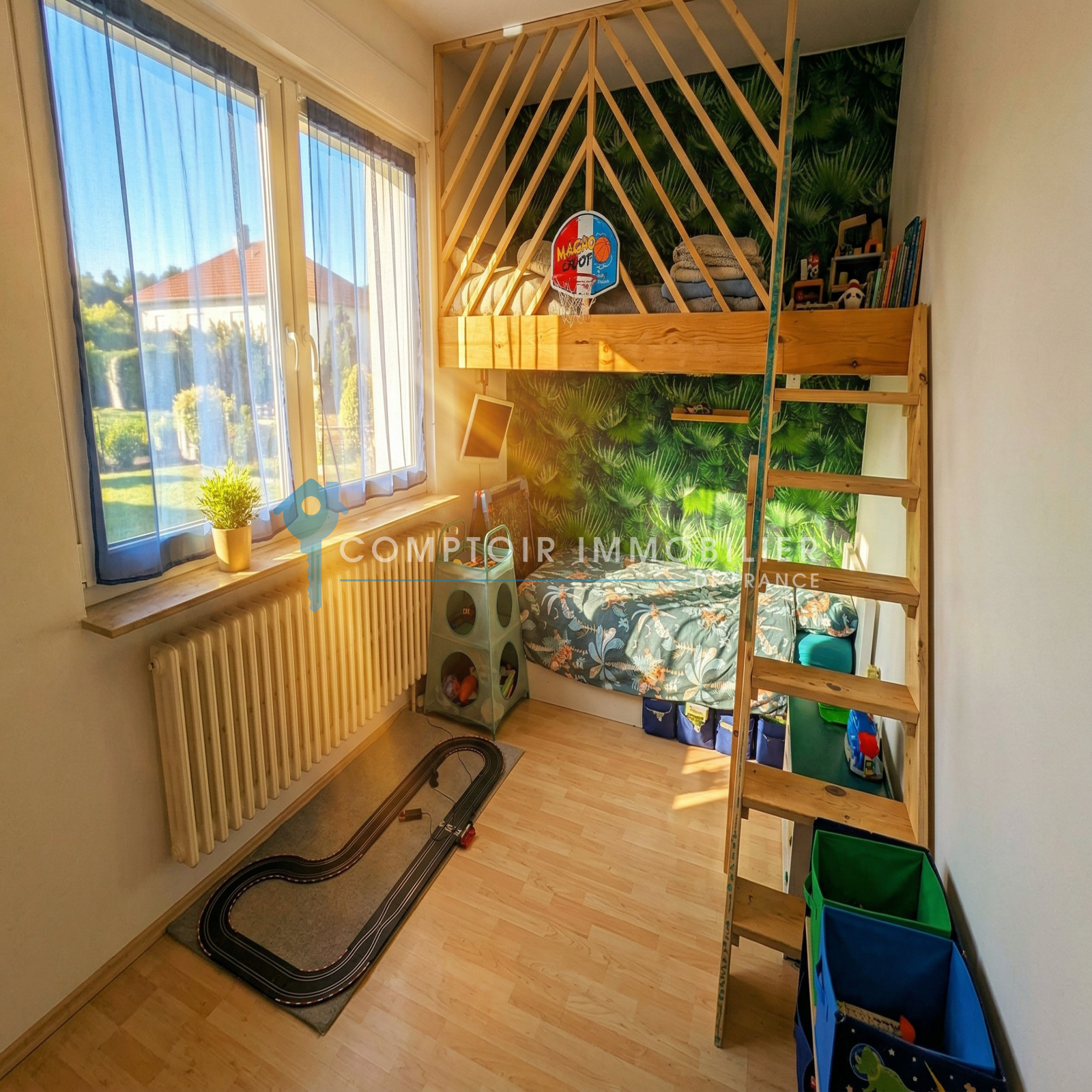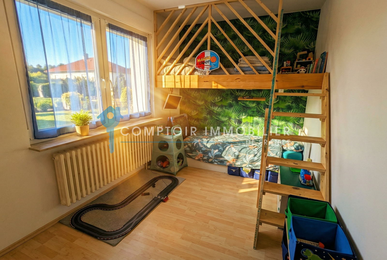 Au rez de jardin: 2 chambres cuisine salon, bureau, chaufferie, buanderie garage.