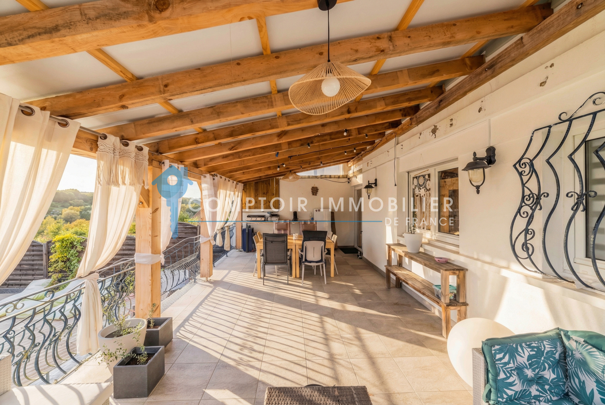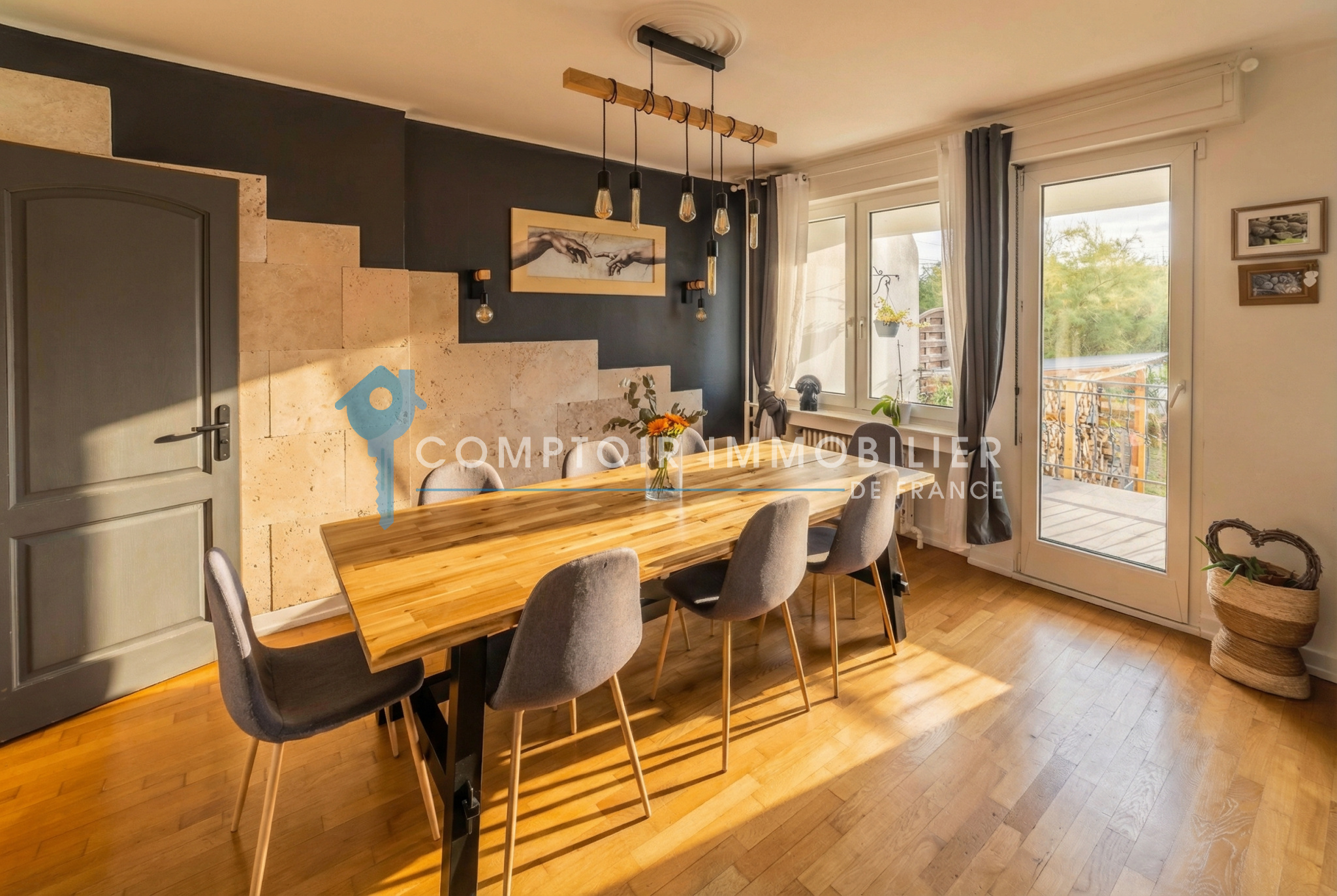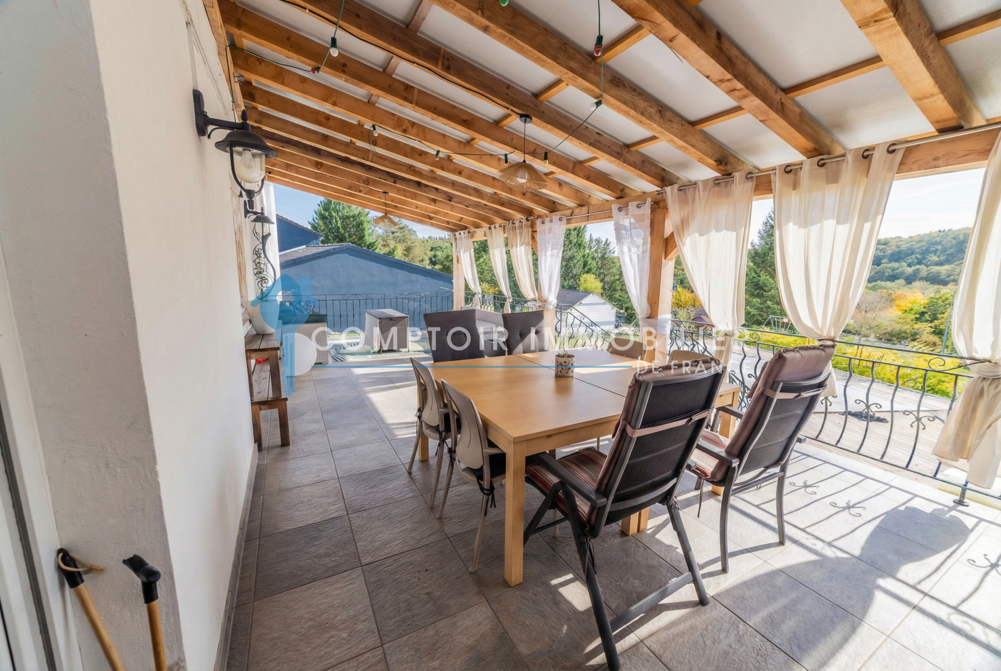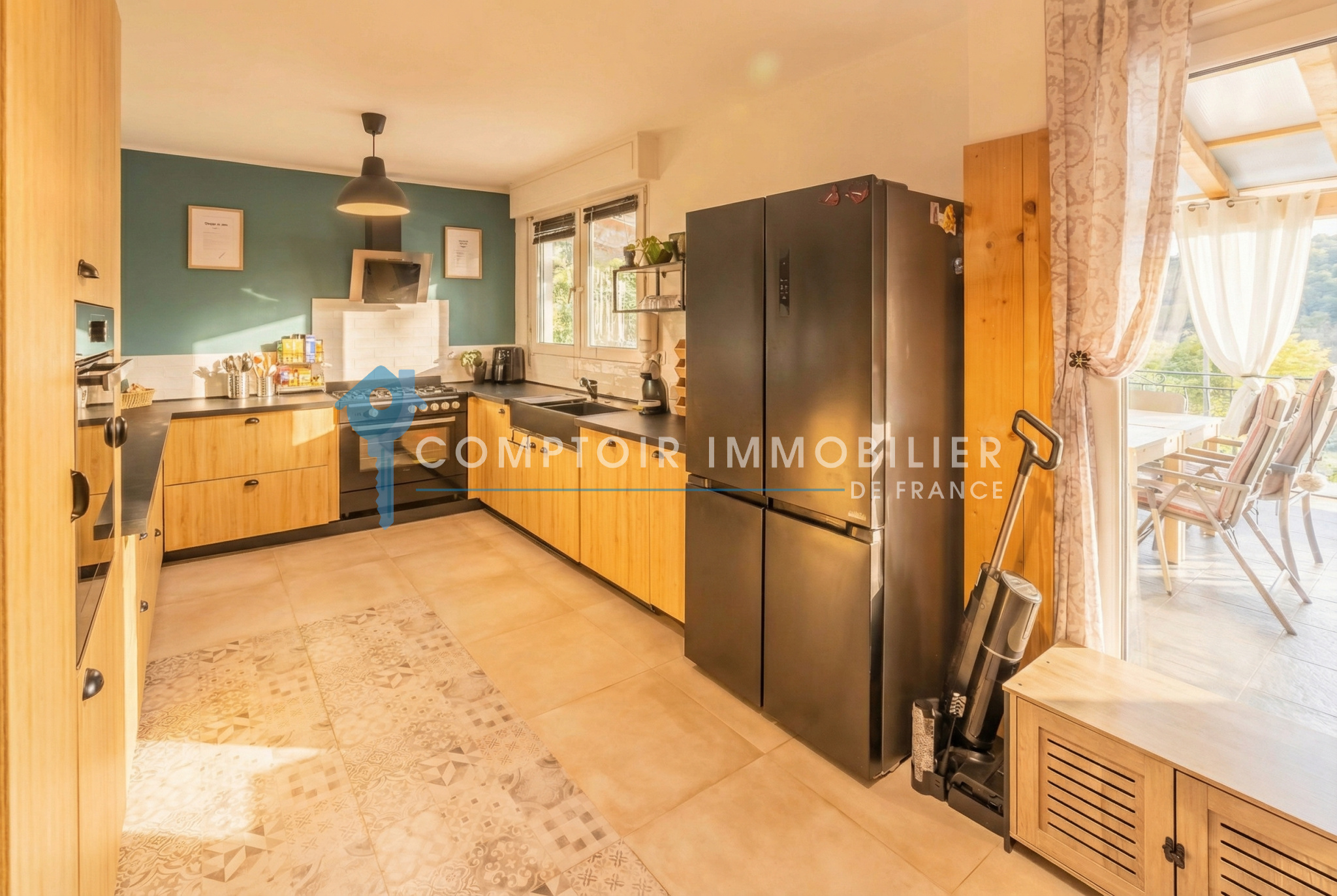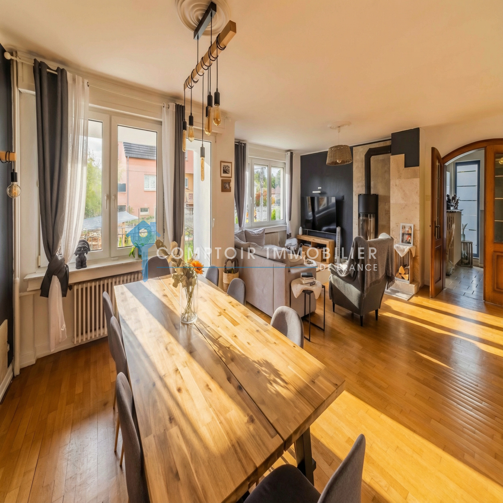 La maison dispose également d’un sous-sol complet comprenant une chaufferie avec chaudière à pellets, un atelier, une buanderie et un accès direct au jardin. Un garage complète ce bien.