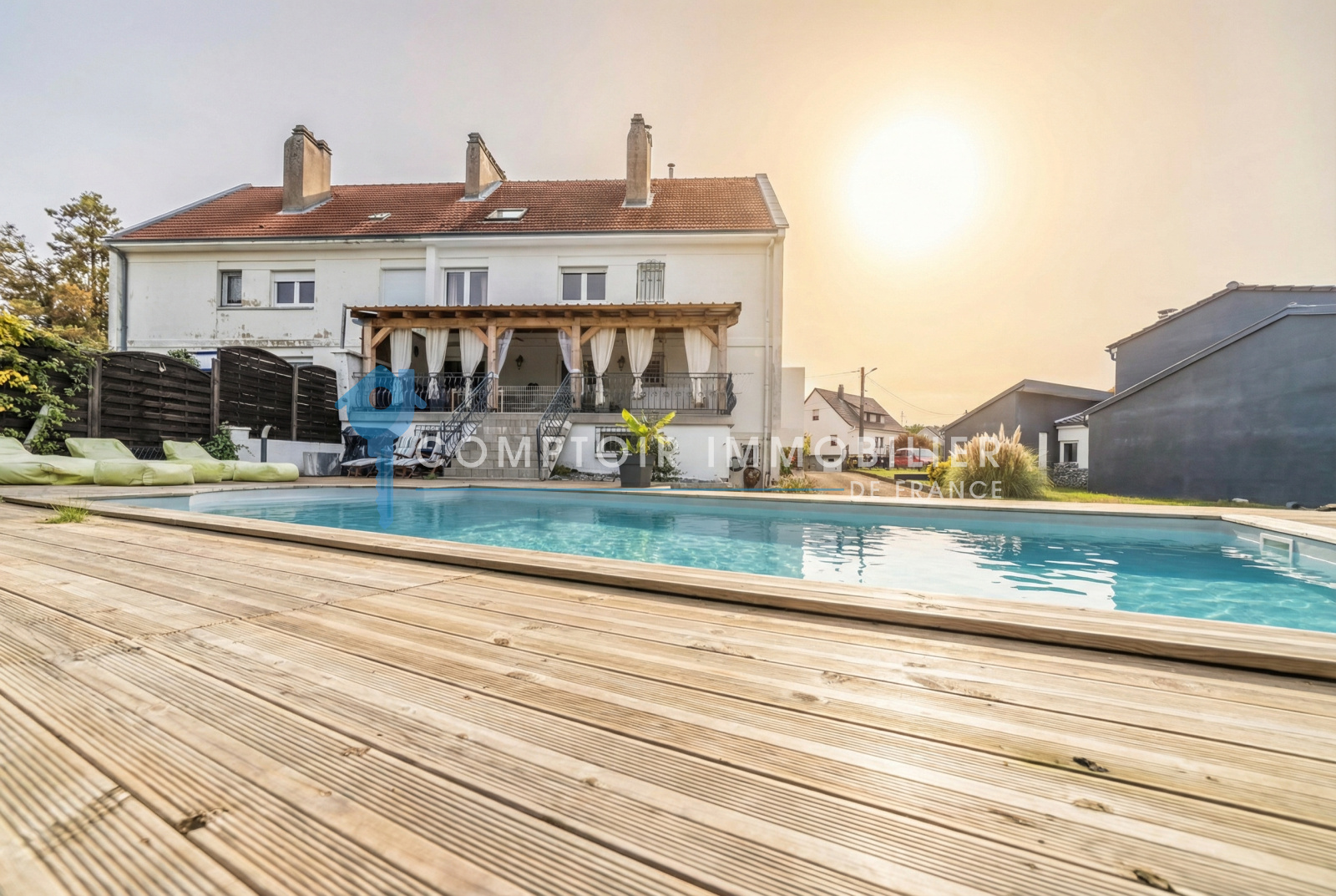 Au rez-de-chaussée, vous découvrirez une entrée avec vestiaires, un bureau, un WC visiteurs, ainsi qu’un grand salon-séjour lumineux avec accès balcon. La cuisine récente, entièrement équipée, ouvre sur une terrasse et un jardin avec vue sur la piscine.