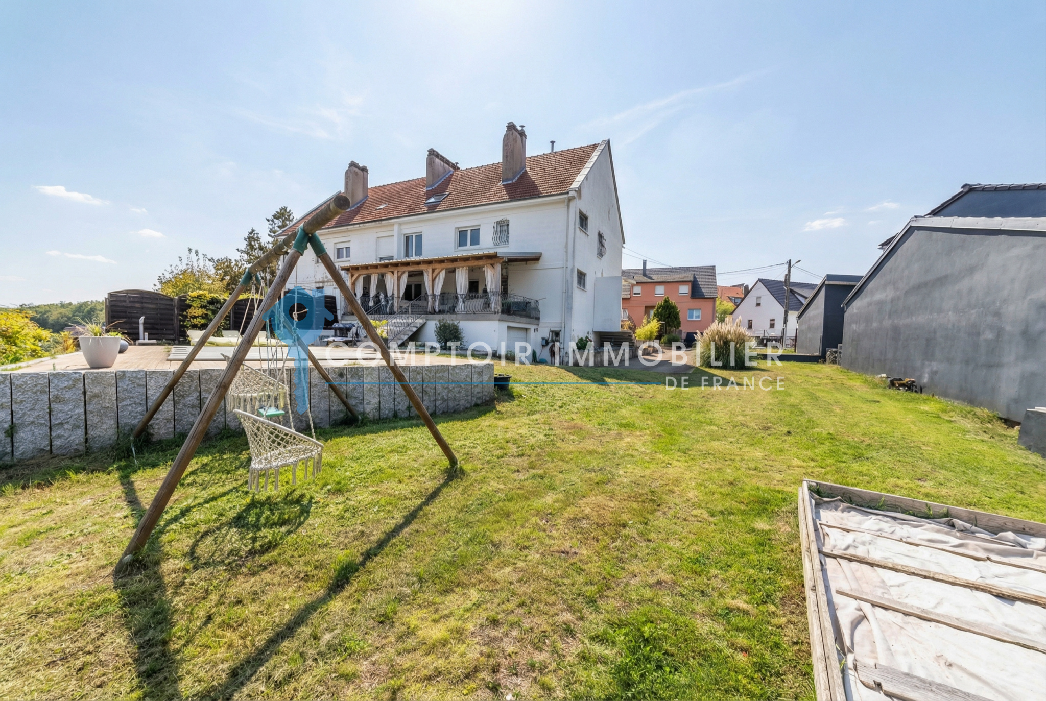 Située dans une impasse au calme à Rosselle, cette spacieuse maison contemporaine au goût du jour est idéale pour une grande famille. Édifiée sur un terrain clos et arboré d’environ 10 ares, elle offre de beaux volumes et une organisation fonctionnelle sur plusieurs niveaux.