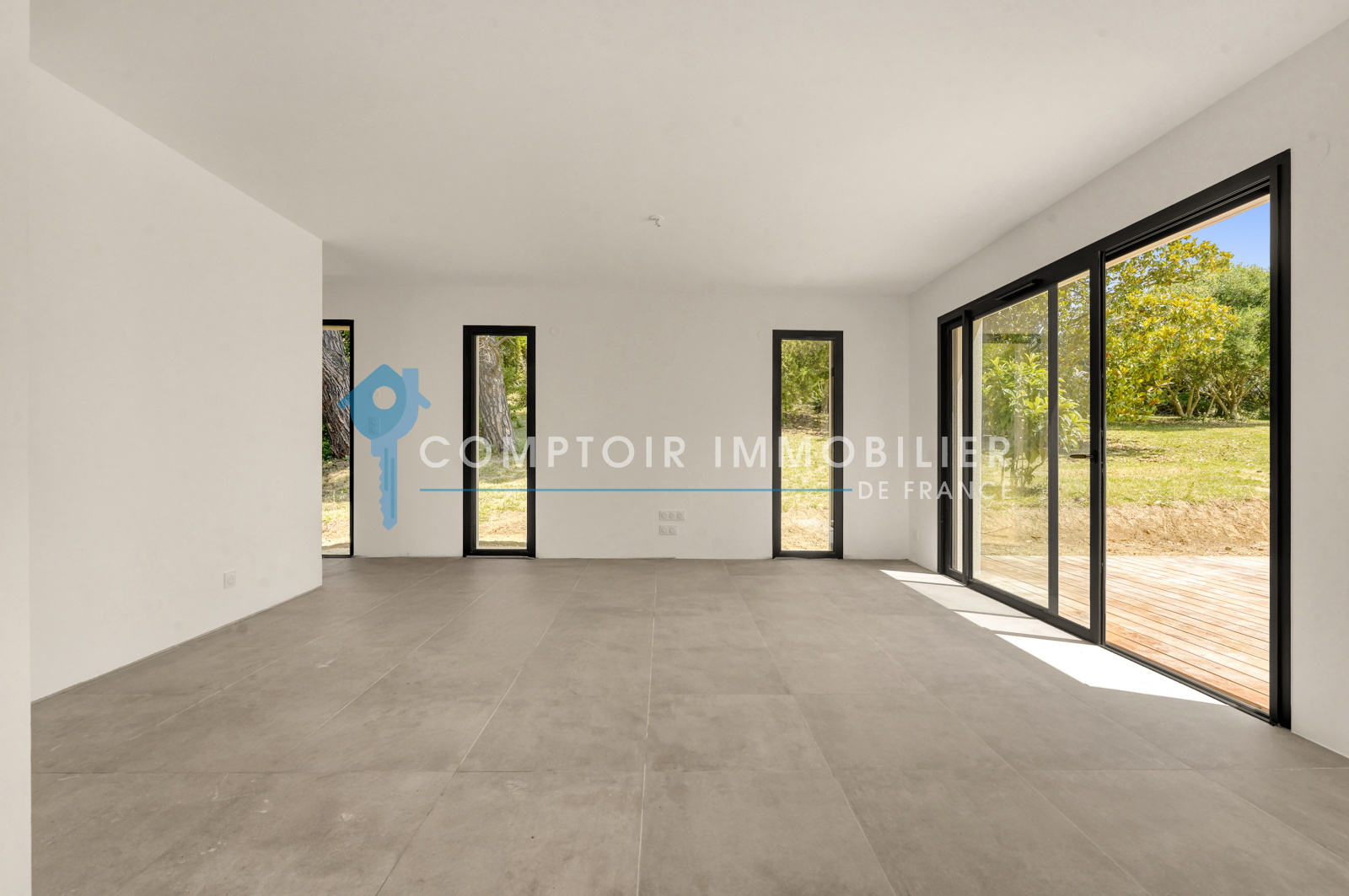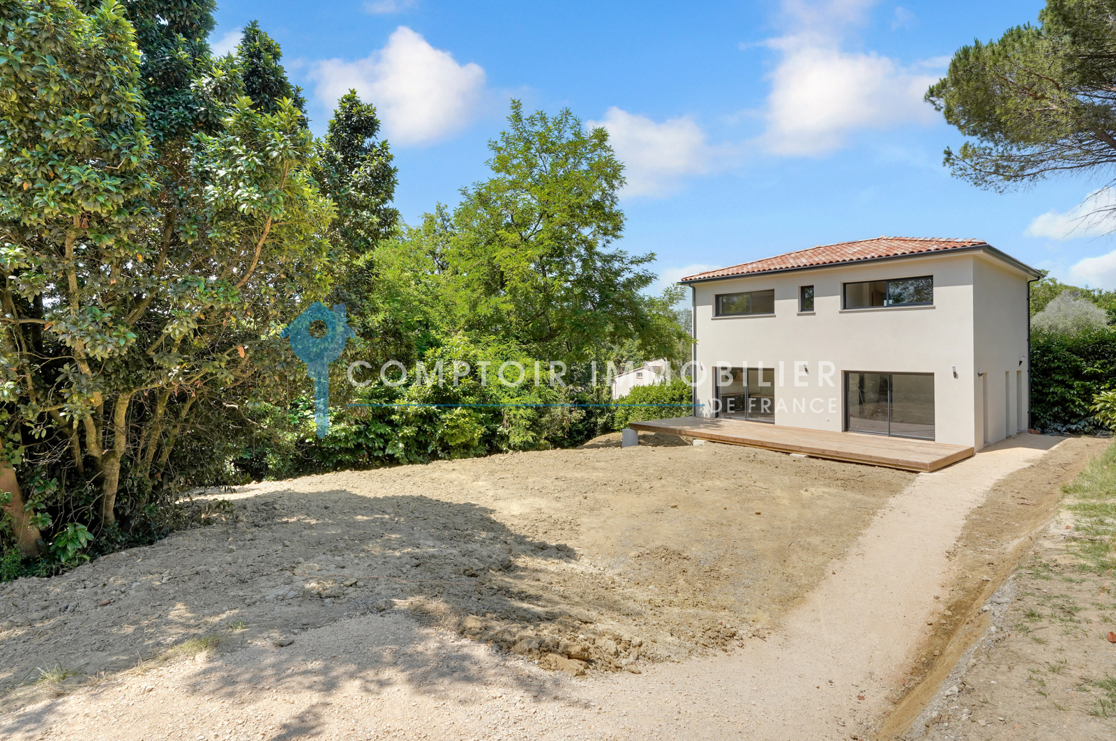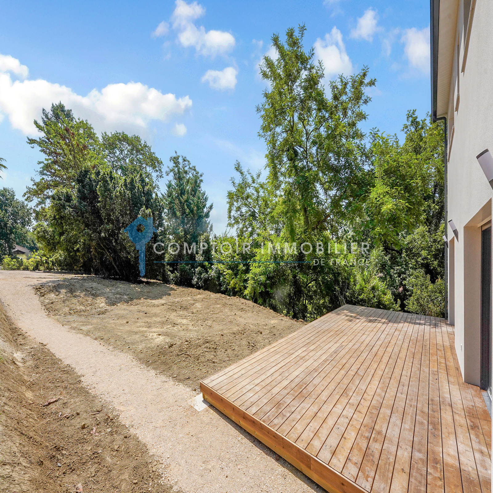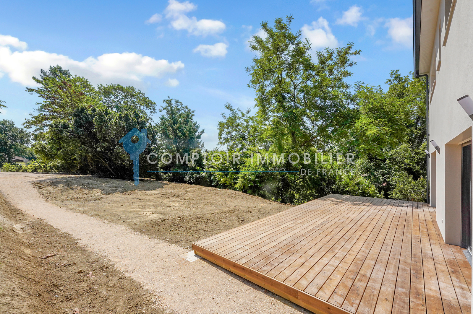 Terrasse spacieuse pour profiter pleinement du jardin arboré