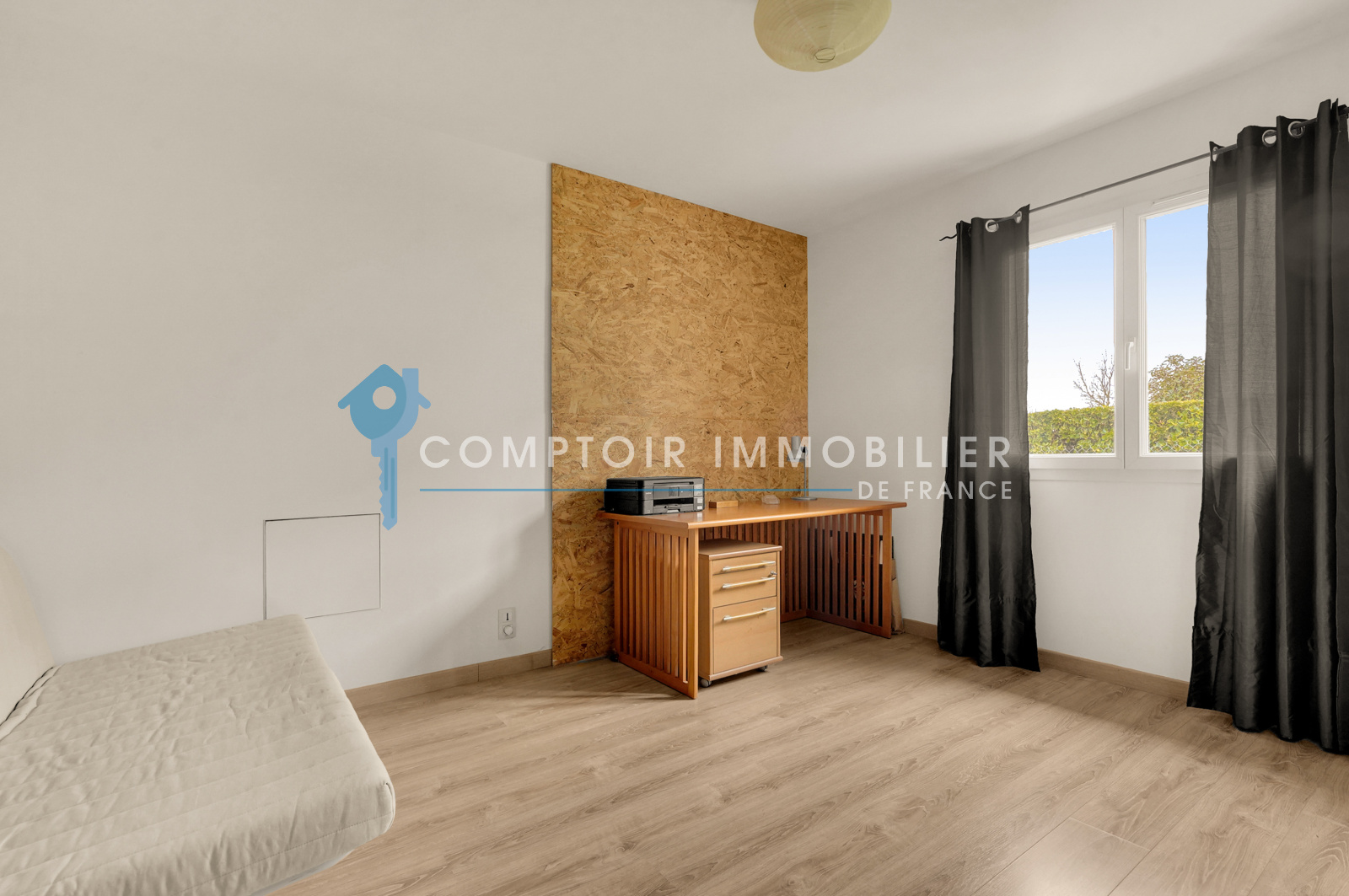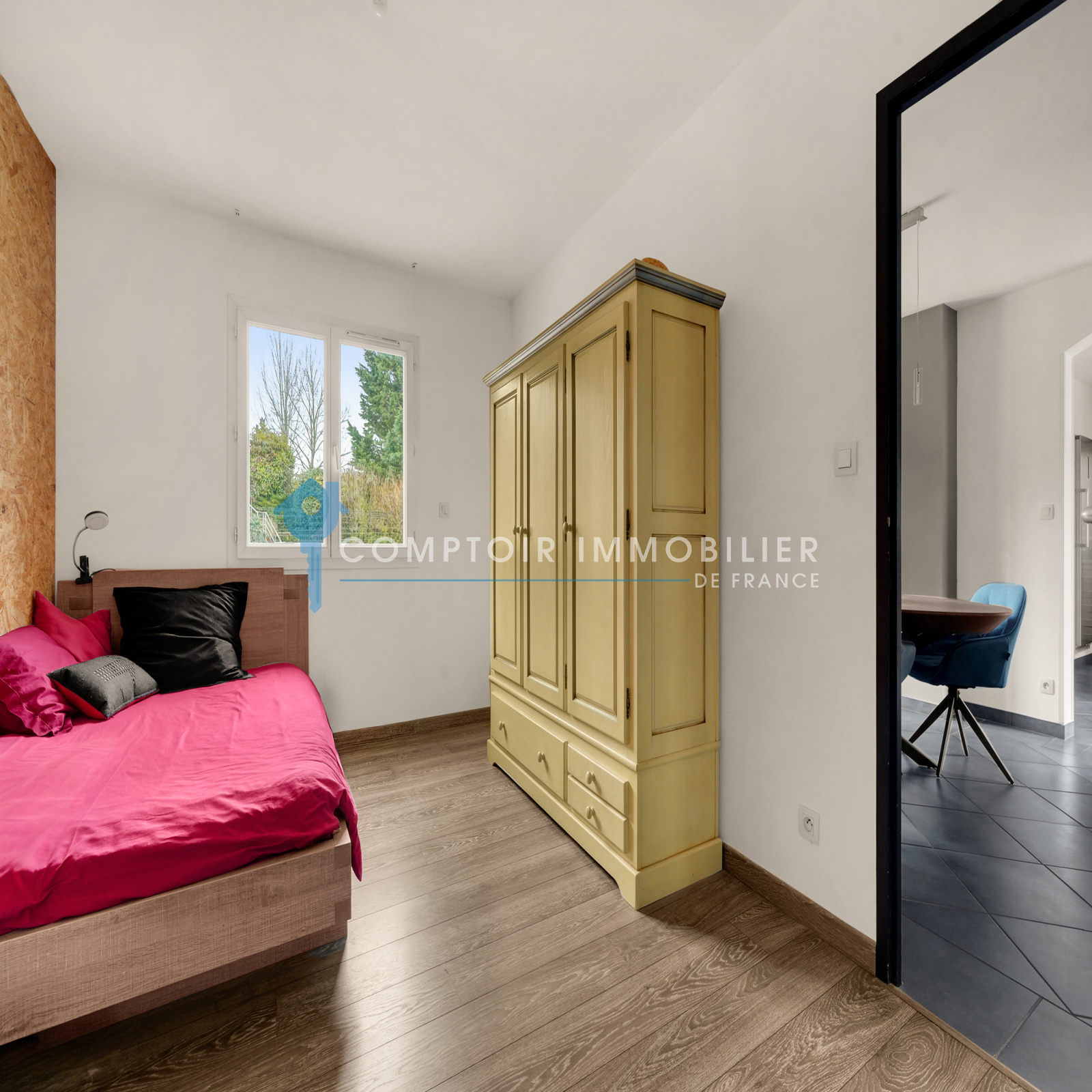 Une chambre indépendante avec salle d’eau privative offre un espace polyvalent idéal pour chambre d’amis, bureau ou coin adolescent, garantissant autonomie et confort.