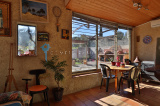 La maison est située au milieu de la parcelle et offre donc 2 espaces extérieurs distincts arborés avec terrasse, véranda et atelier.