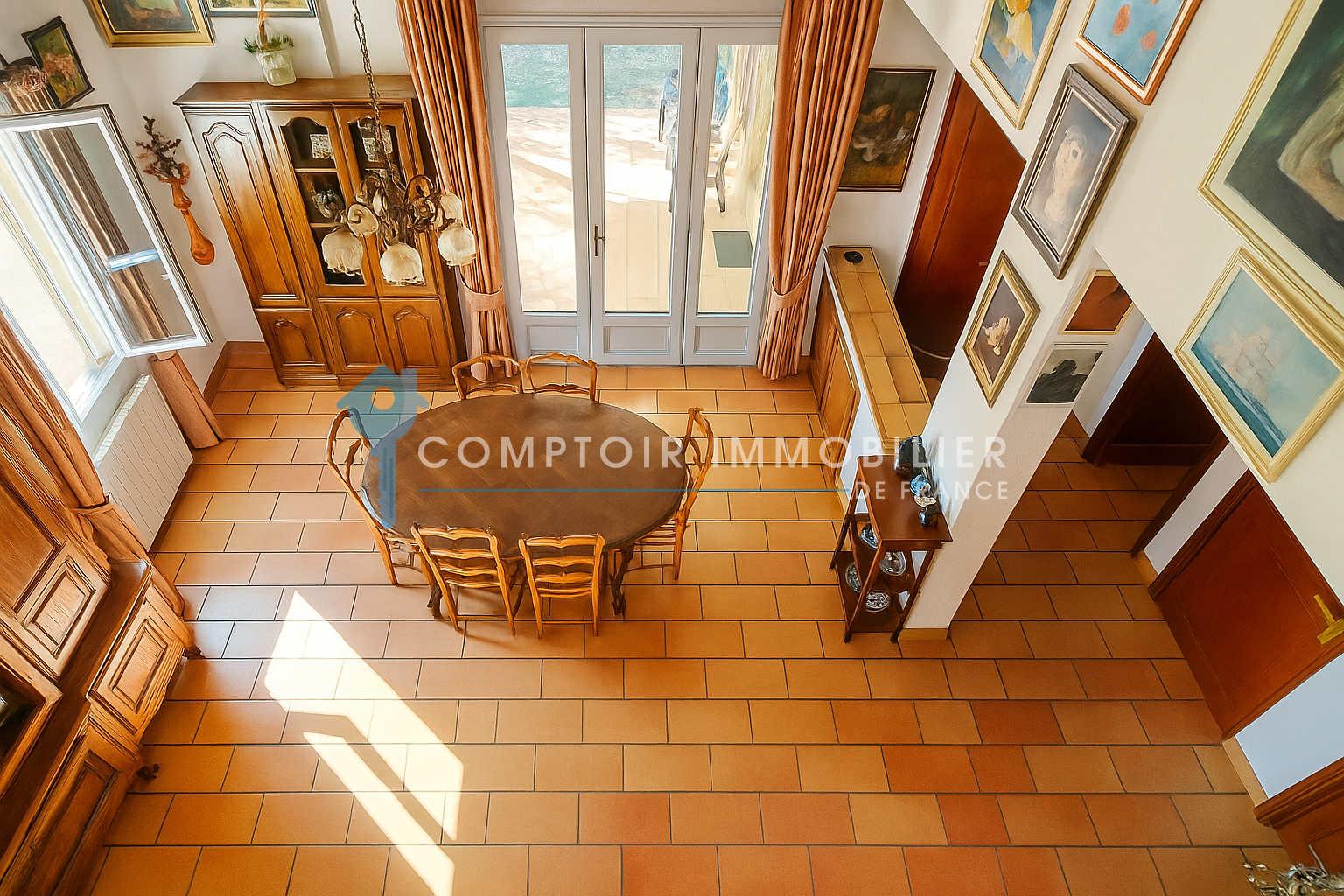 Dino Maurizi votre conseiller immobilier Comptoir Immobilier de France vous propose, au calme tout en étant à proximité du village et de ses commerces, cette maison édifiée en 1981 d’environ 125 m² habitables sur un terrain de 1942 m².