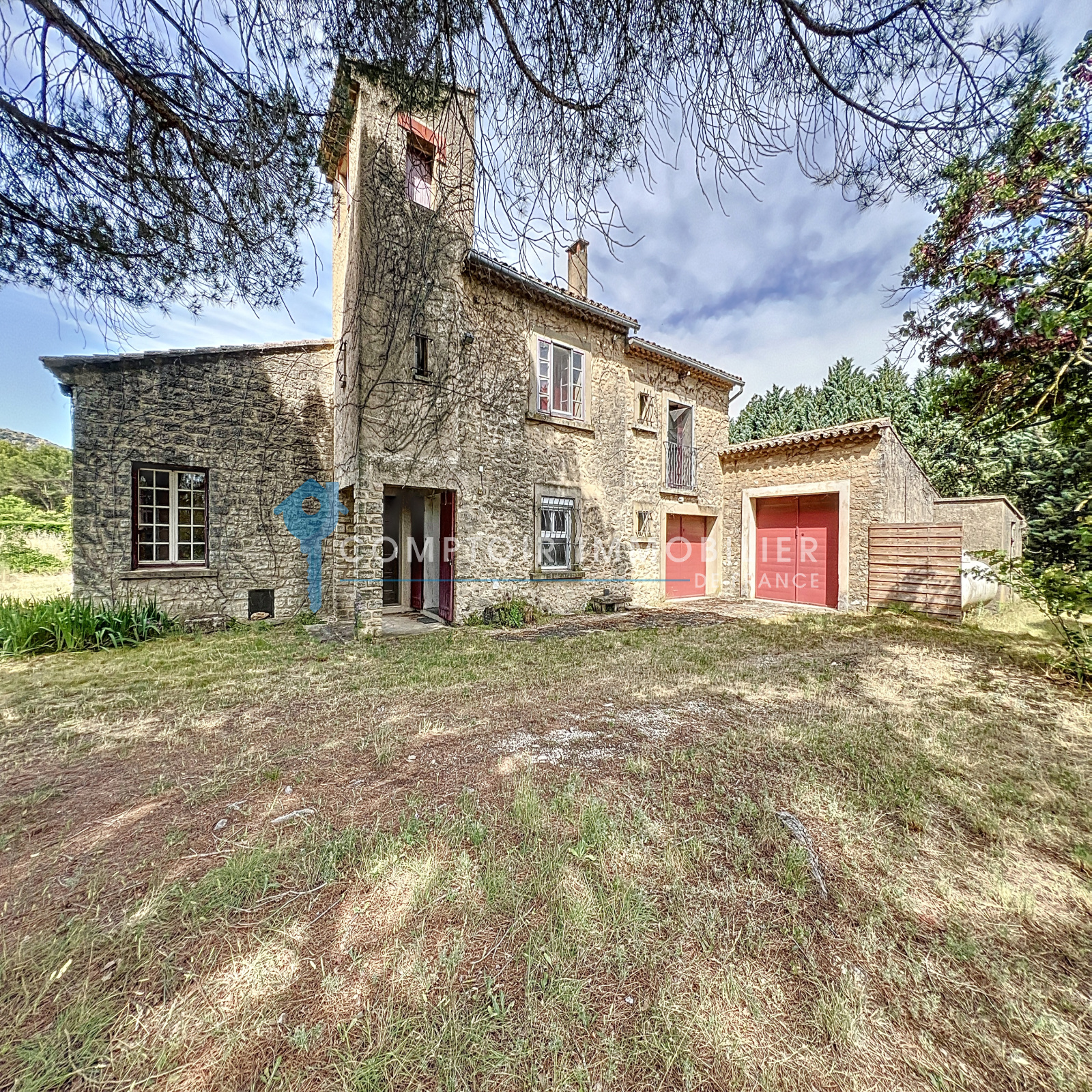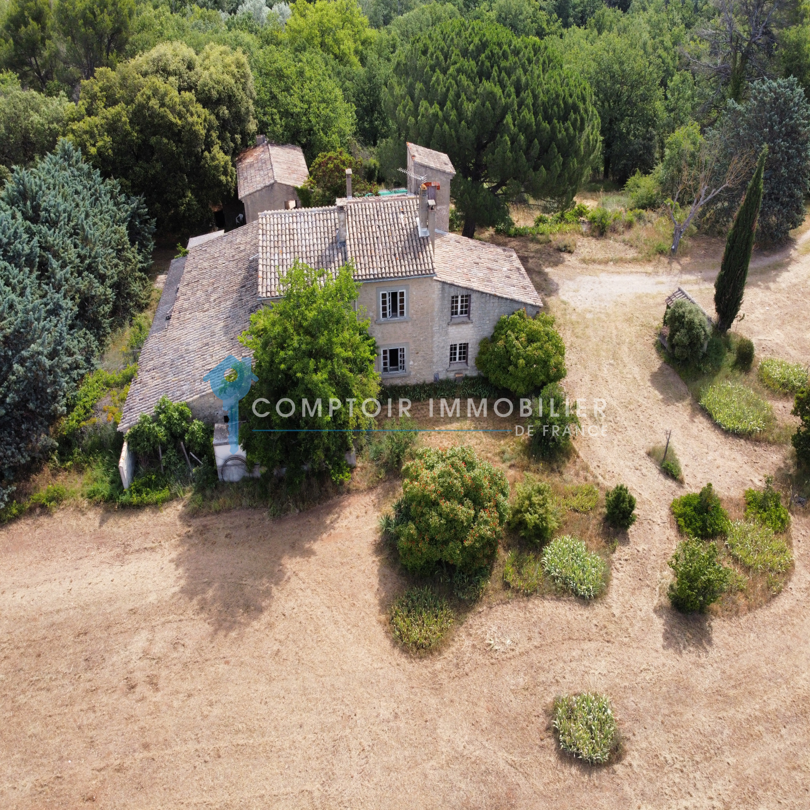 Dino Maurizi votre conseiller immobilier Comptoir Immobilier de France vous propose dans environnement exceptionnel, ce beau mas en pierre à rénover offrant une belle vue dégagée sur le Luberon, sur un terrain de près de 6 hectares avec piscine et son pool-house de 41 m².