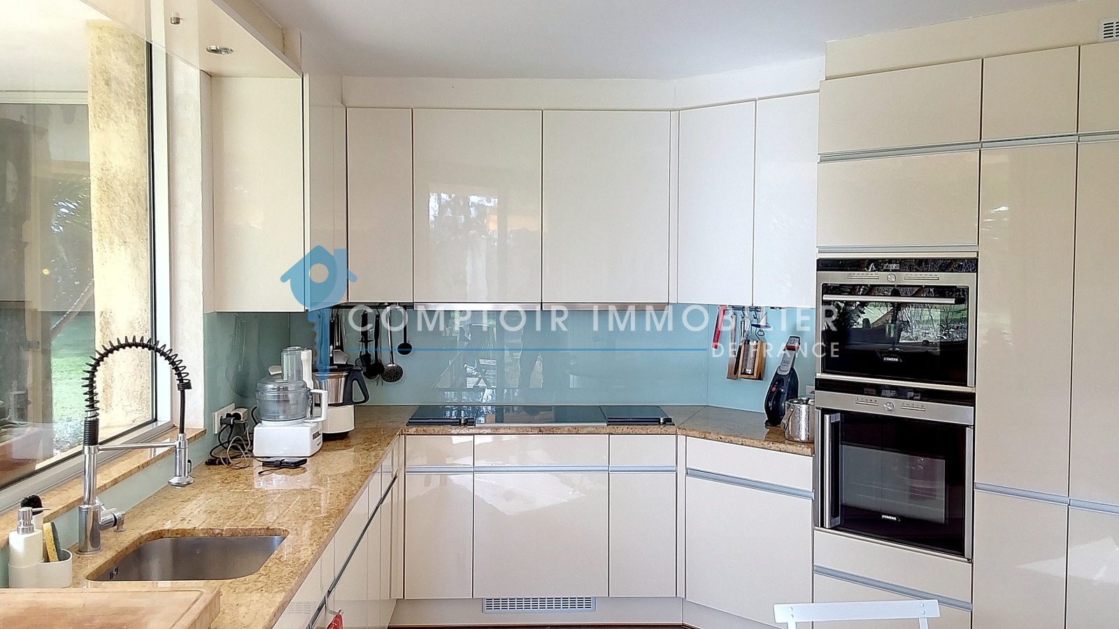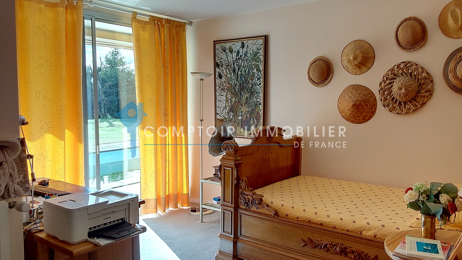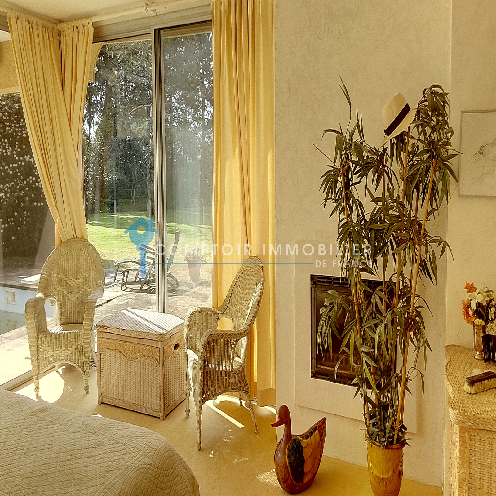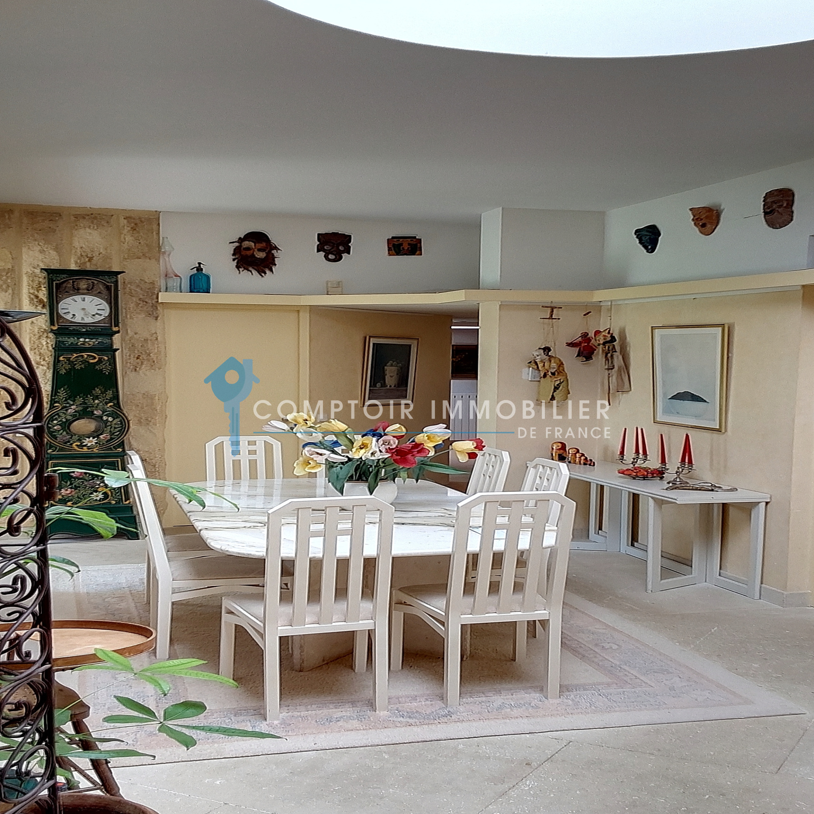 COMPROMIS SIGNE pour cette superbe villa contemporaine de plain-pied au Sud de Nîmes, signée de l'architecte Nîmois Pellier, au milieu d'une immense pelouse avec piscine, sur 1 ha de terrain clos et arboré, au calme absolu. L'ensemble lumineux aux lignes épurées, au toit terrasse blanc, aux larges baies vitrées, met en valeur la pierre blonde du Pont du Gard. La villa totalise 260 m². Belle entrée éclairée par un puits de lumière, séjour de 80 m² avec grande cheminée, jolie cuisine entièrement equipée, 4 chambres dont une suite ouvrant sur la verdure et la piscine, et 3 salles de bains . Nombreux placards et penderies, buanderie, cave à vin, atelier, garage couvert, terrain de pétanque complètent l'ensemble. Eau BRL, arrosage automatique.