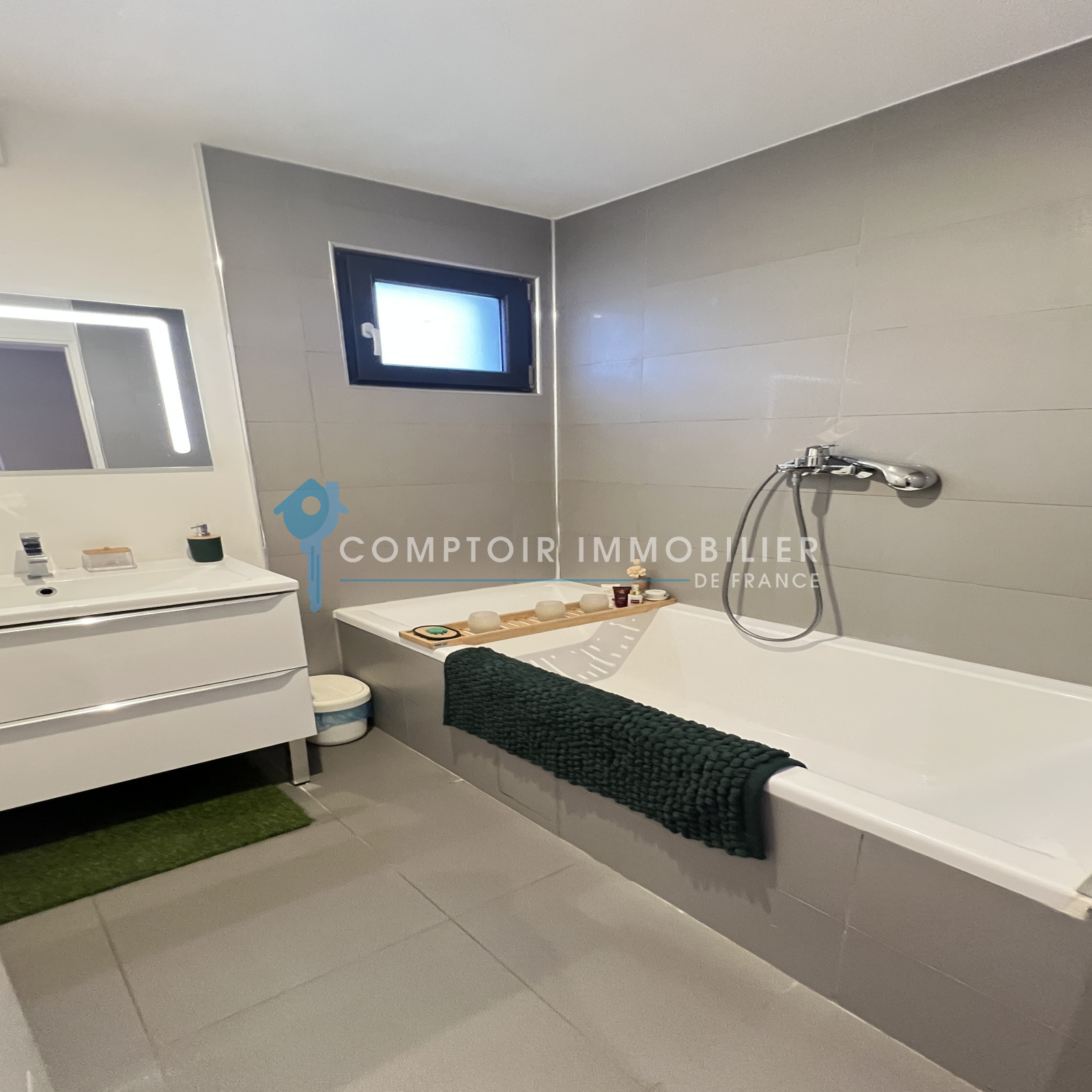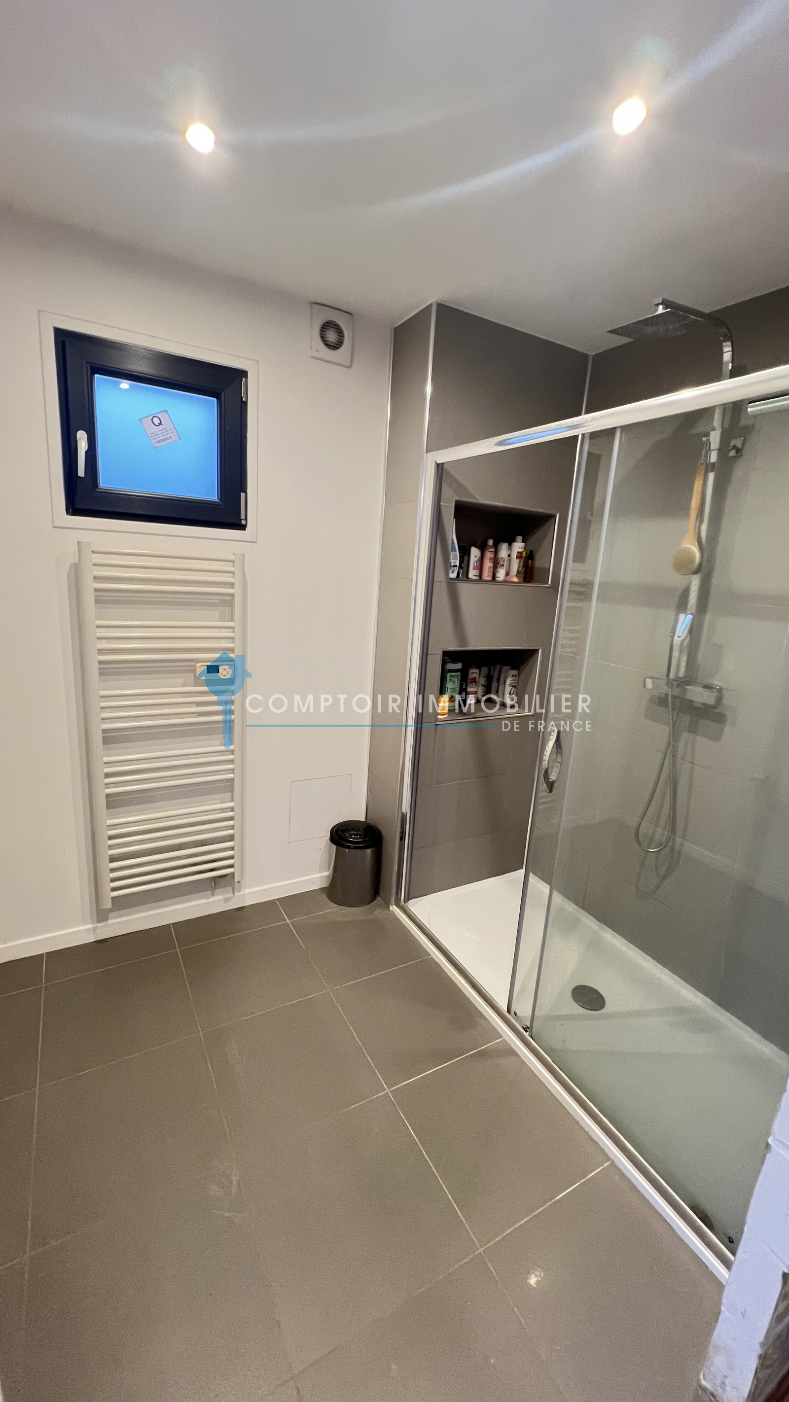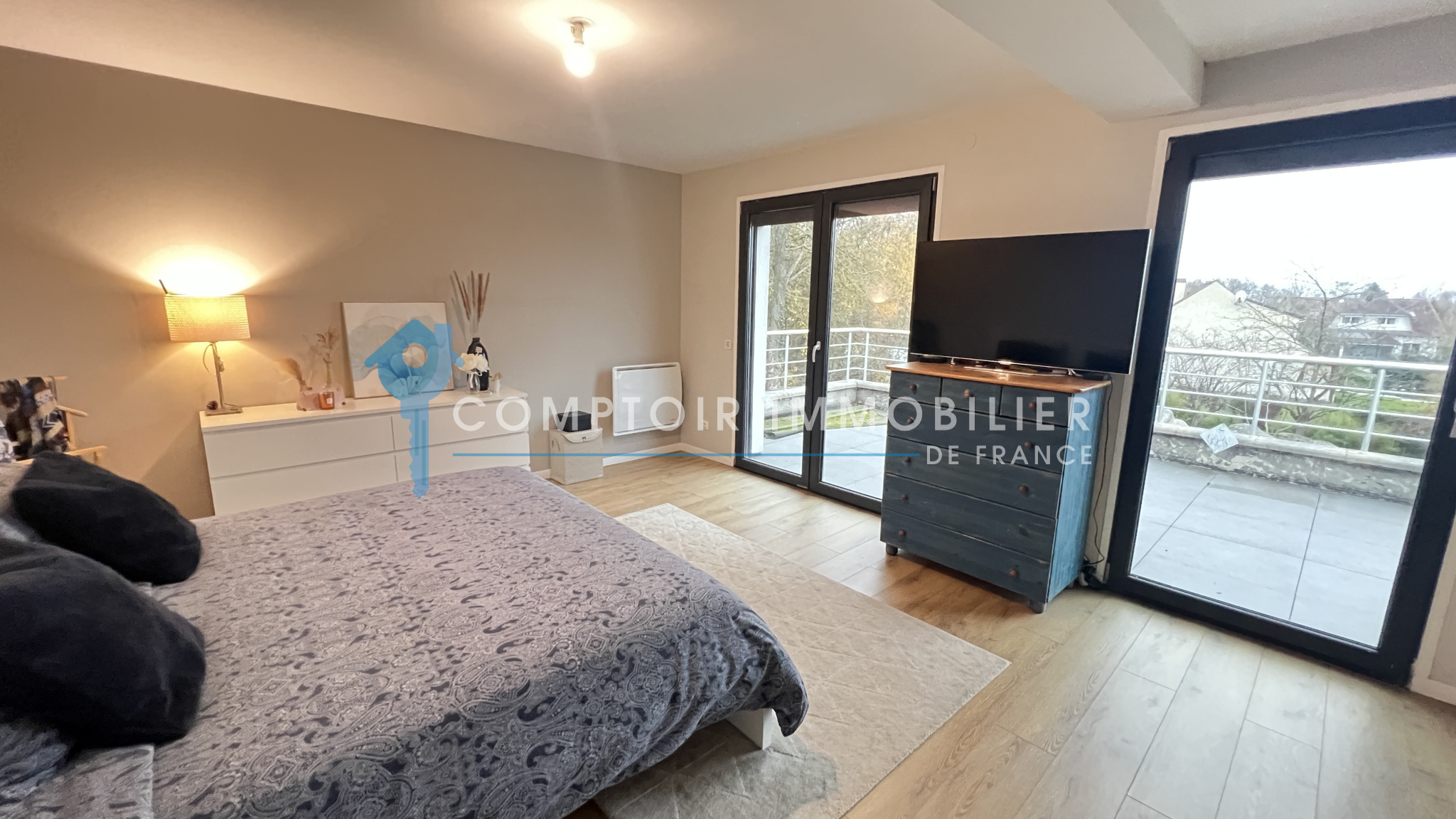A l'étage : palier désservant trois grandes chambres (16m2, 17m2 et 19m2) chacune avec leur propre terrasse de plus de 20m2 dont une suite parentale avec salle d'eau et dressing, une salle de bains indépendante vient compléter l'étage ainsi qu'un wc séparé.