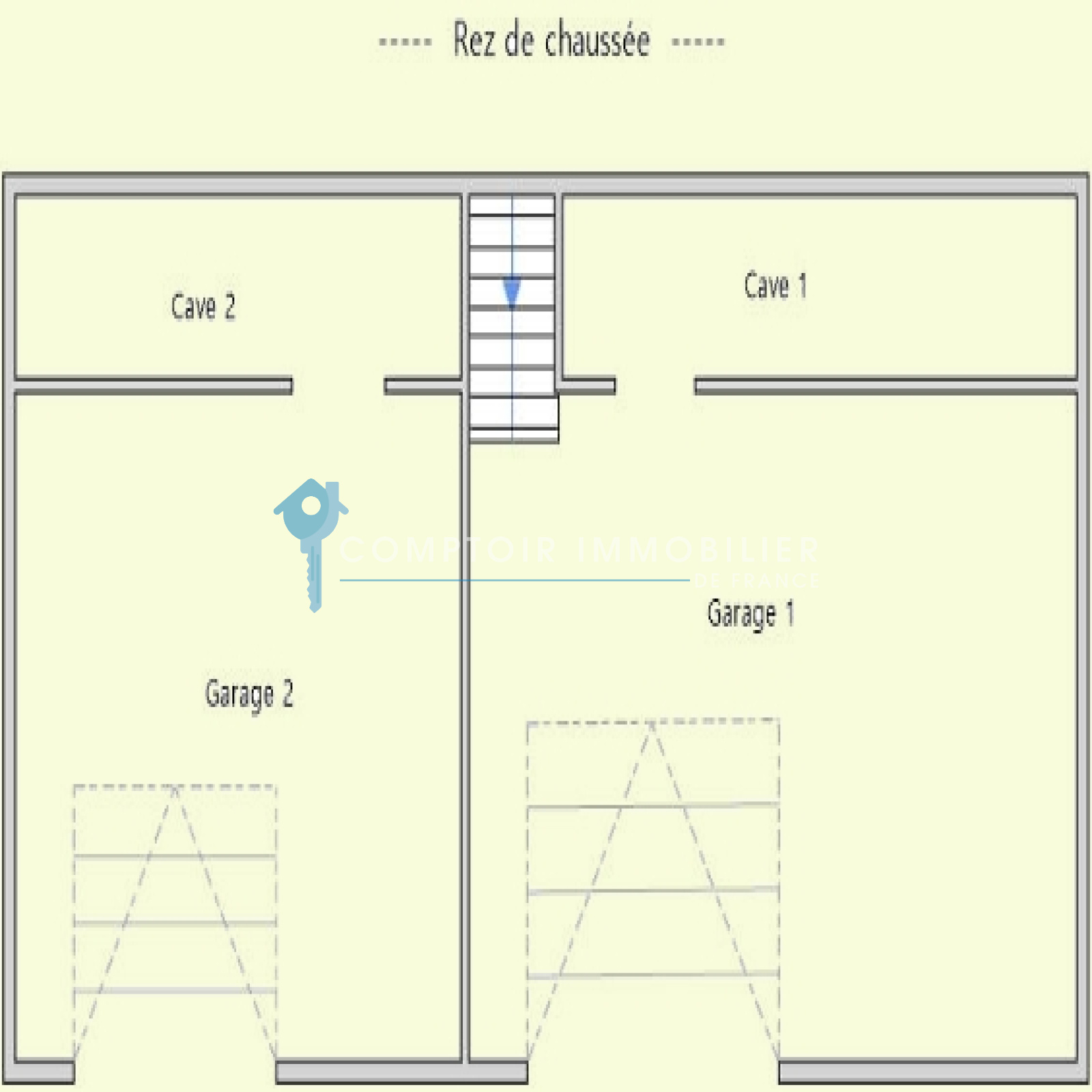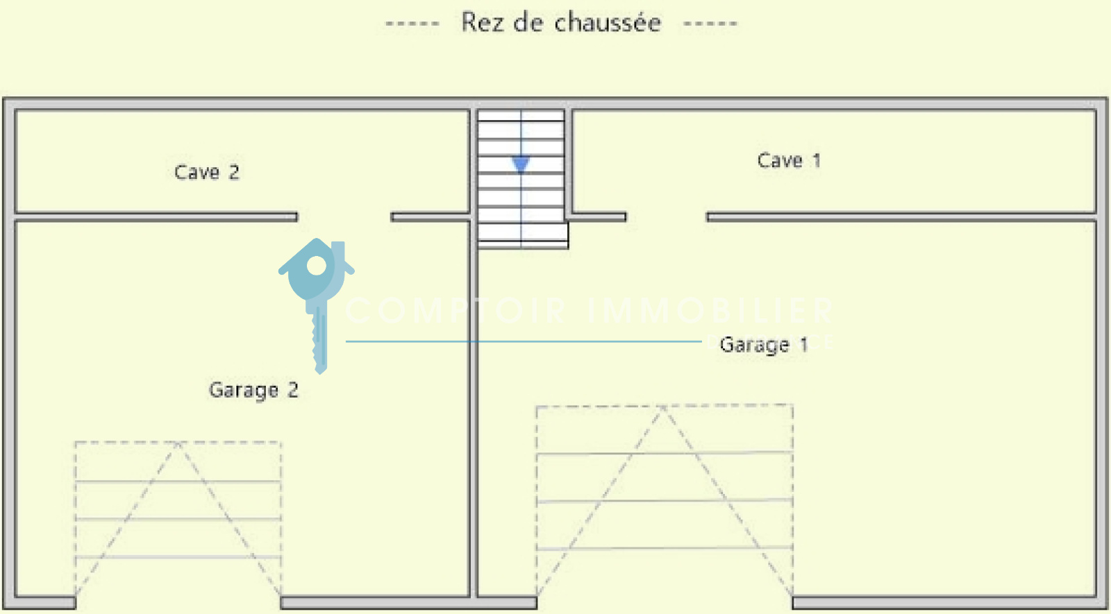 Au rdc: 2 grands garages avec portail automatique + 2 caves.