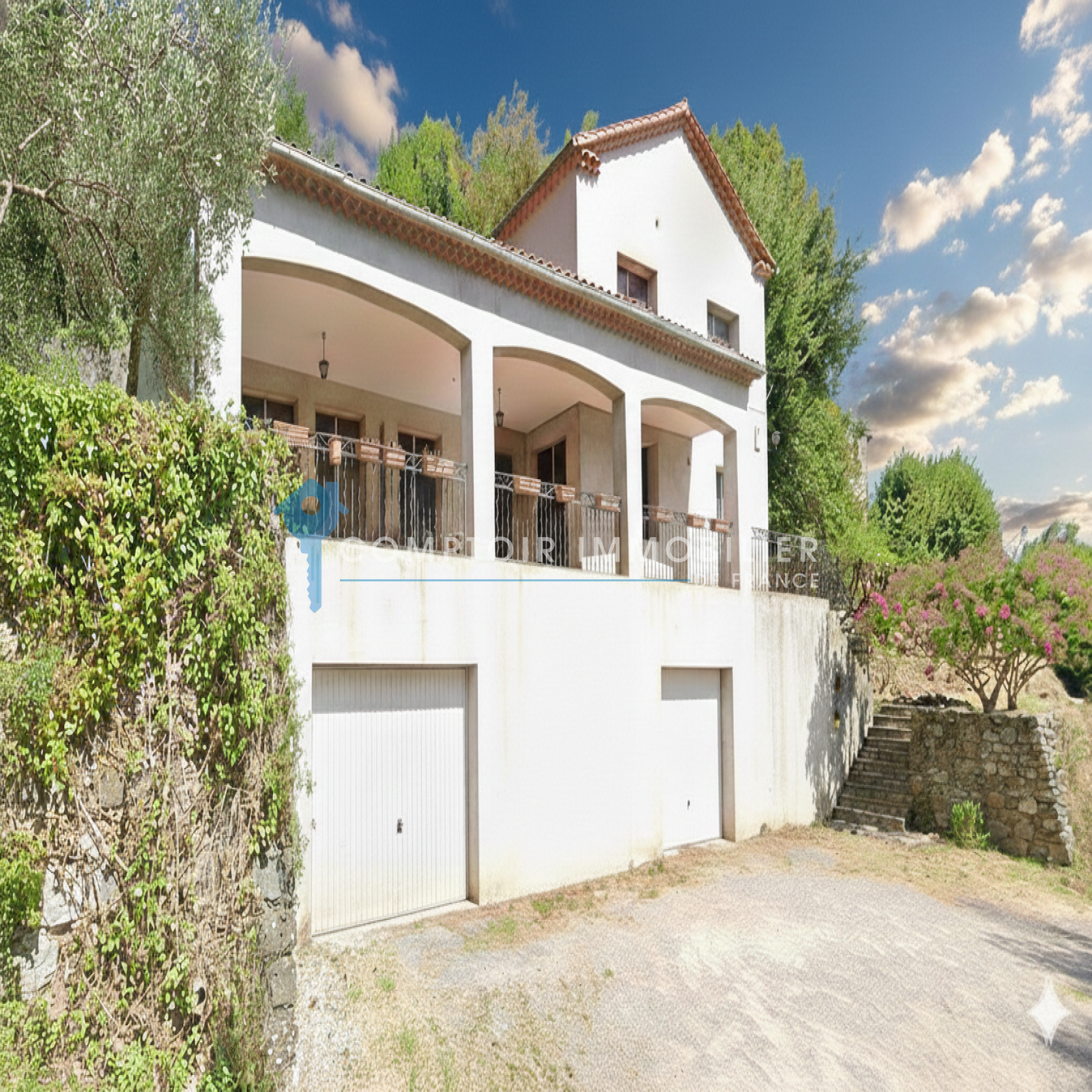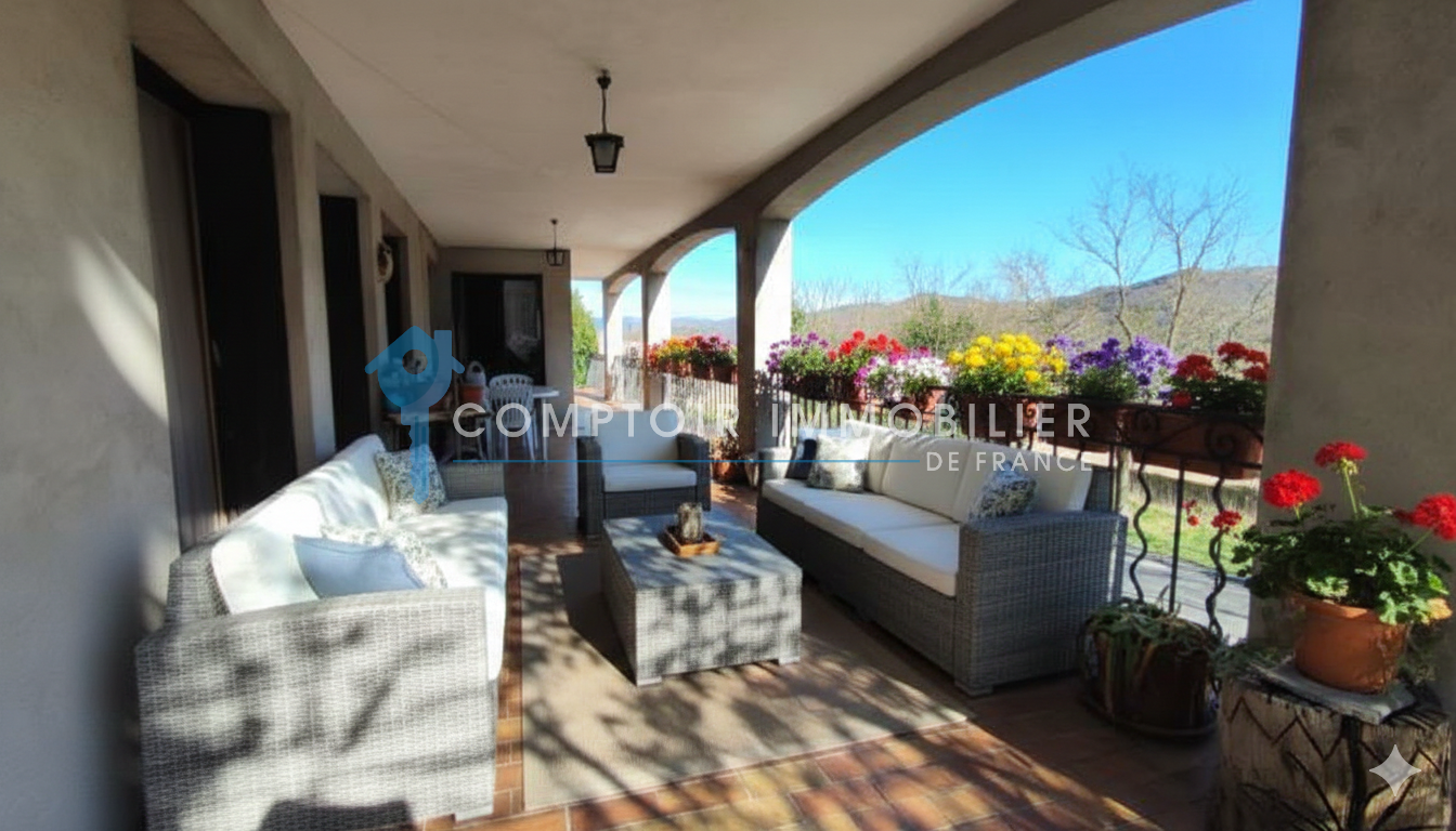 Dans village en périphérie du Vigan : Grande maison P6 avec spacieuse terrasse, exposée sud avec très jolie vue sur la montagne, et 2 grands garages pouvant être transformés en logements plain-pied pour accueillir de la famille, des amis ou pour générer des revenus locatifs dans une région très touristique (classée Patrimoine Mondial UNESCO) aux pieds du Parc National des Cévennes et des Grands Causses.