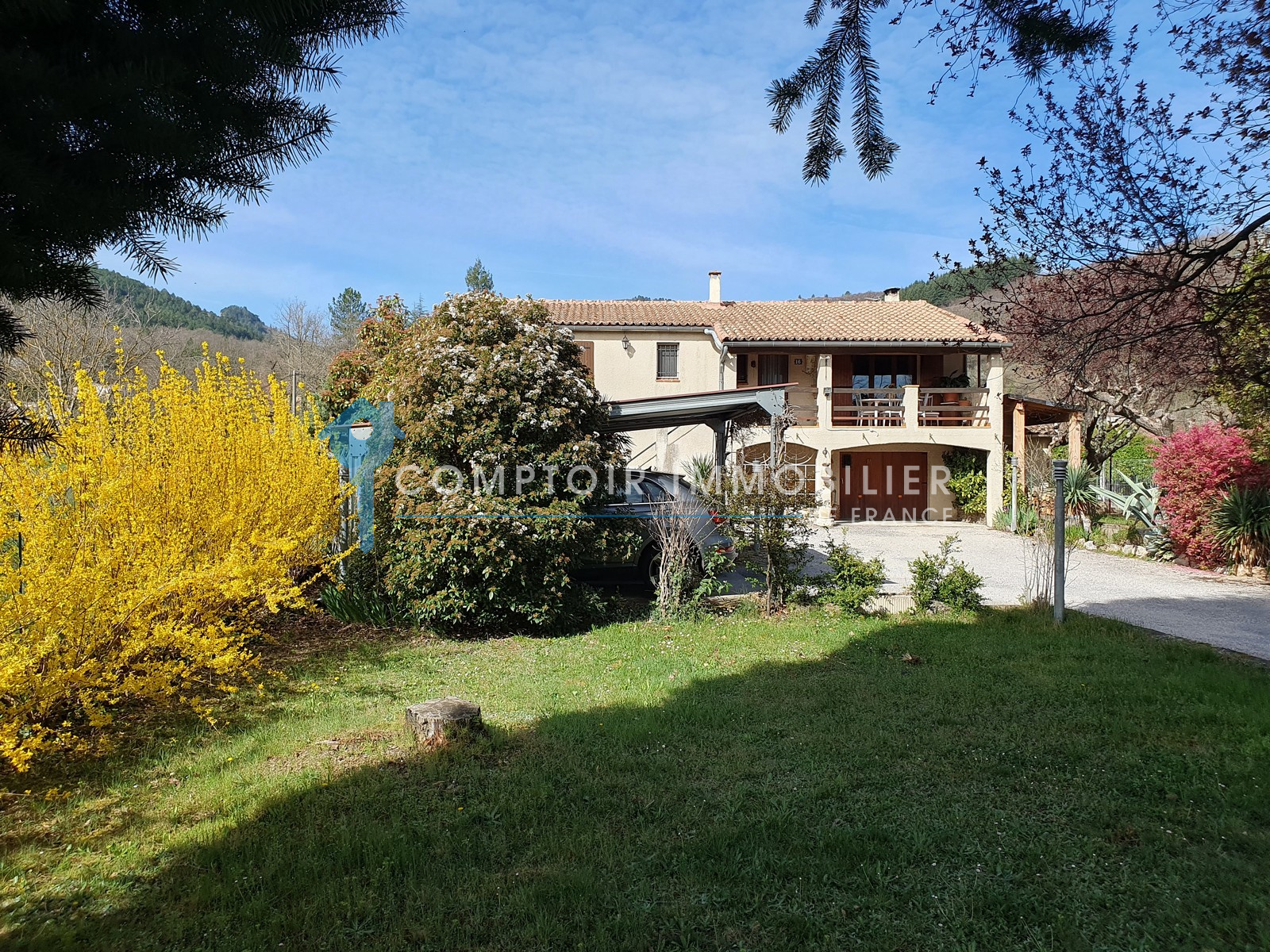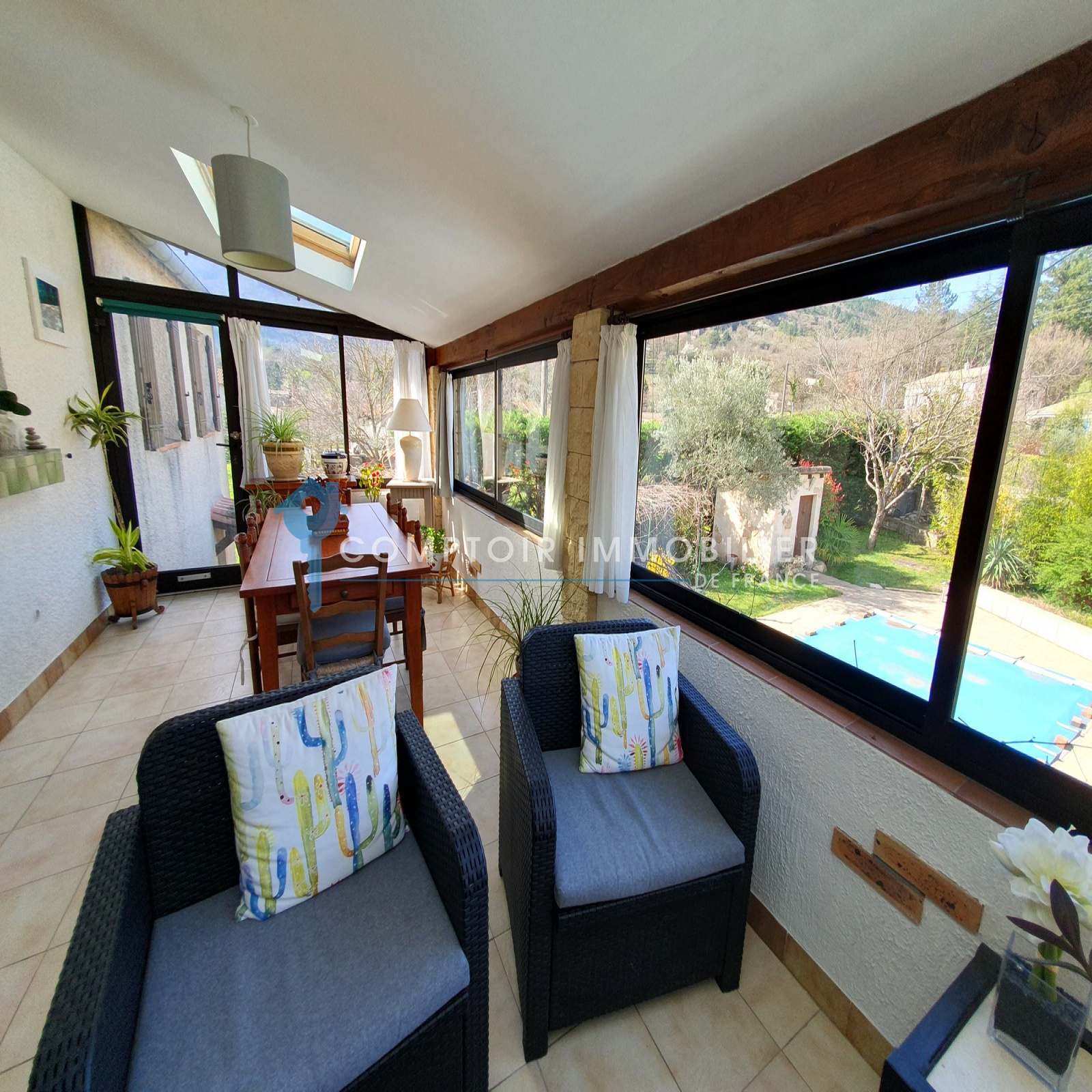 Dans un charmant village Cévenol tout proche du Vigan, découvrez cette magnifique et confortable villa. Avec ses 3 chambres et sa piscine nichée au cœur d'un terrain arboré, elle offre une vue sur le Parc National des Cévennes.L'agencement fluide entre le séjour, la cuisine (avec possibilité d'ouverture sur le séjour), la véranda et une terrasse couverte assure un cadre de vie des plus agréables. Le vaste rez-de-chaussée de plus de 100 m2 comprend un garage, une buanderie, un atelier, une salle d'eau avec WC, ainsi qu'une pièce supplémentaire offrant la possibilité d'aménager un espace habitable indépendant, idéal pour une extension ou un investissement locatif.Le jardin entourant la piscine est aménagé avec de multiples espaces de détente sur des terrasses ombragées, offrant un cadre propice à la relaxation. Orientée plein sud, cette maison bénéficie d'un ensoleillement optimal, assurant un confort de vie toute l'année.Située dans une région touristique prisée, entre les Grands Causses et le Parc National des Cévennes, classée au patrimoine mondial de l'Unesco, cette villa représente un investissement sûr et une opportunité unique de profiter d'un cadre de vie privilégié.