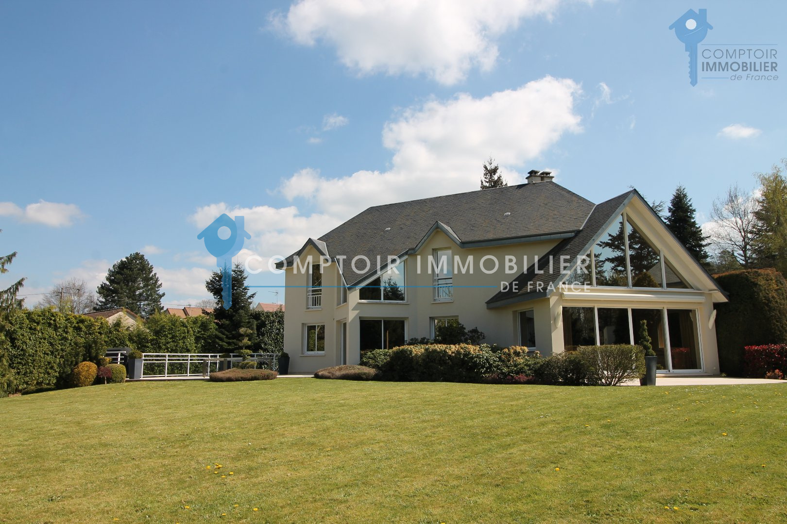 A moins de 1h00 de Paris, entre Houdan et Pacy sur Eure, magnifique propriété composée de 2 habitations grand standing, vendus meublées. Elles vous séduiront par leurs nombreuses pièces spacieuses et lumineuses, comme par exemple le salon de 280 m2 environ et un autre de 180 m2, ouverts sur de belles terrasses avec vue sur parc paysagé, 2 cuisines aménagées et équipées, 10 suites parentales dont 2 avec dressing, 13 wc, 2 salles de jeux, 2 salles de cinéma, 2 piscines chauffées avec nage à contre courant (intérieure et extérieure), sauna, spa, 2 vestiaires, 1 ascenseur pour 6 personnes, 2 garages pour 8 voitures, car park, le tout dans un parc paysagé avec de nombreuses essences d'arbres, un environnement idyllique. Honoraires charge vendeur COMPTOIR IMMOBILIER DE NORMANDIE - Gilbert GENESTE - 06 61 19 05 67 - Marie NGUYEN - 07 77 96 31 87 - Plus d'informations sur www.cin.immo.com (réf. 13177)
