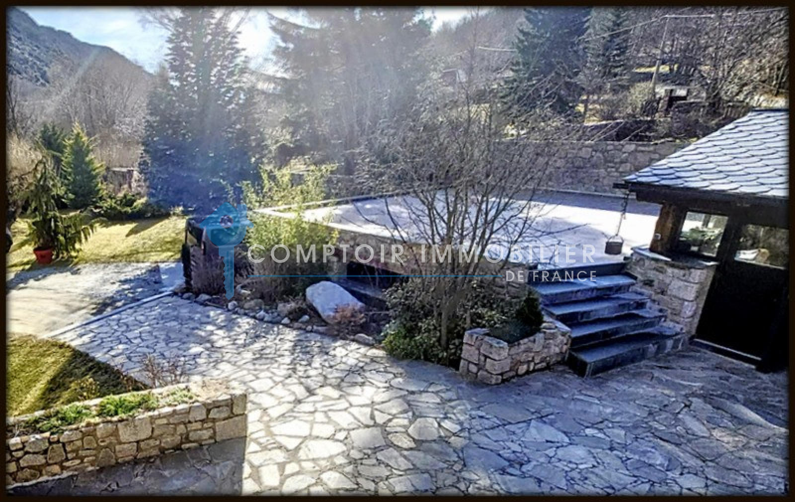 En plus un grand garage, une cuisine d'été et surtout une magnifique parcelle arborée d'environ 5000 m2 avec la rivière qui coule à proximité.