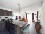 L’espace de vie se compose d’une cuisine italienne haut de gamme ZECCHINON, aux finitions soignées, ouverte sur un séjour lumineux donnant accès à un balcon de 33 m², idéal pour profiter des couchers de soleil.