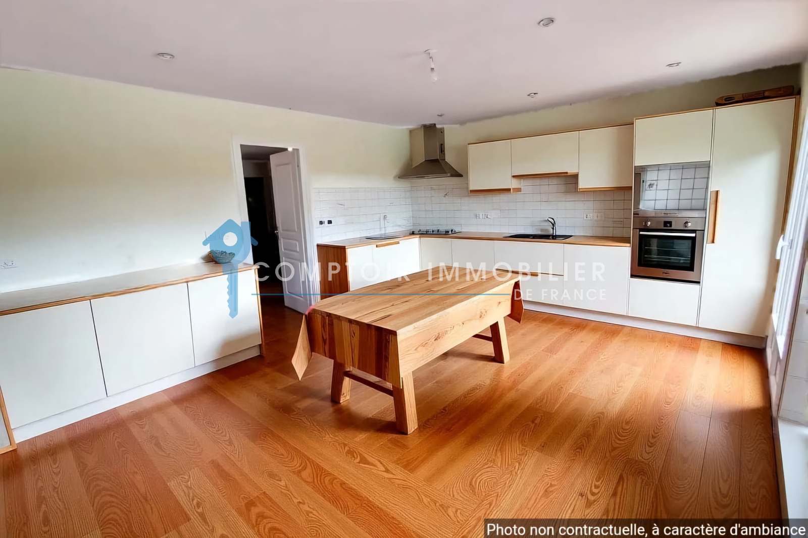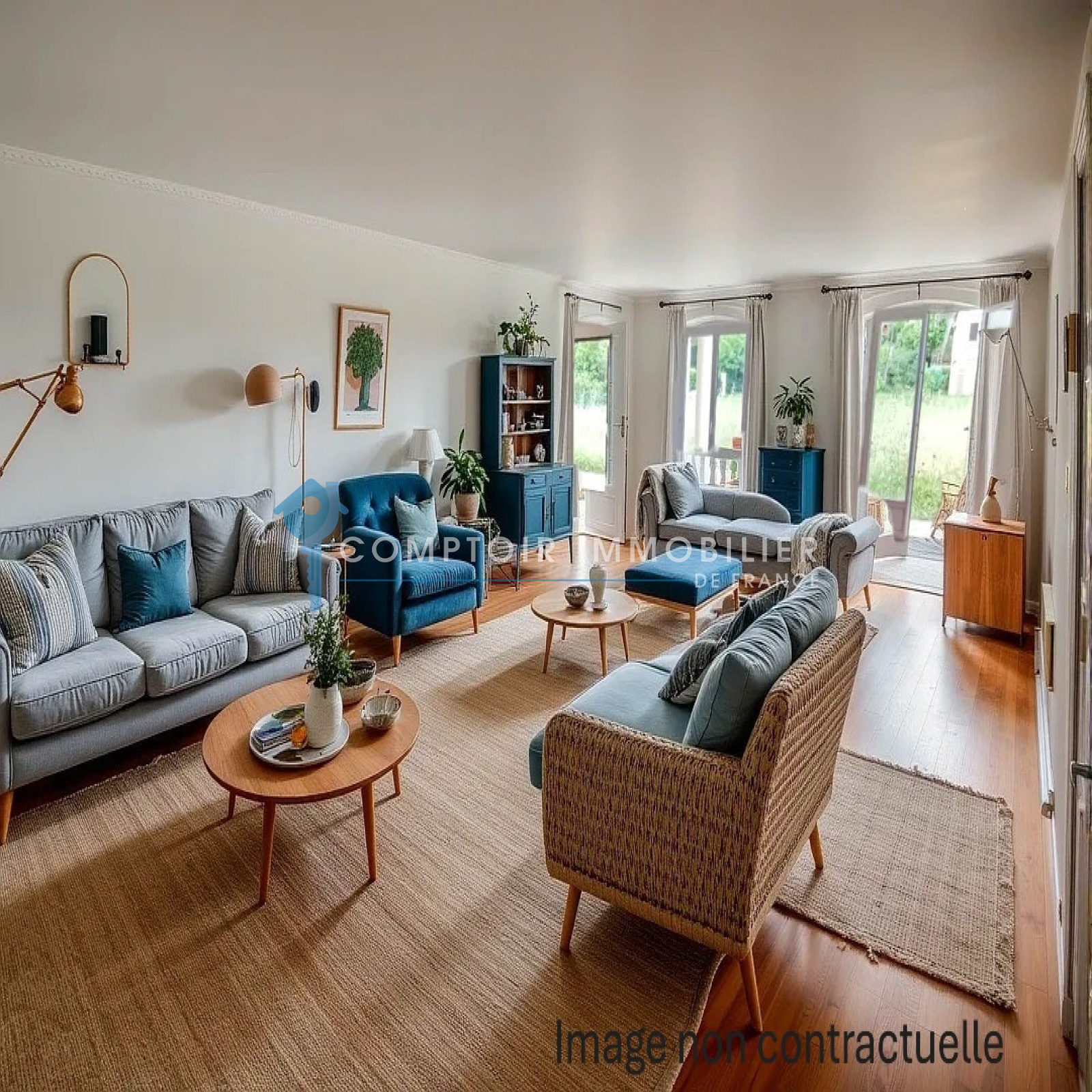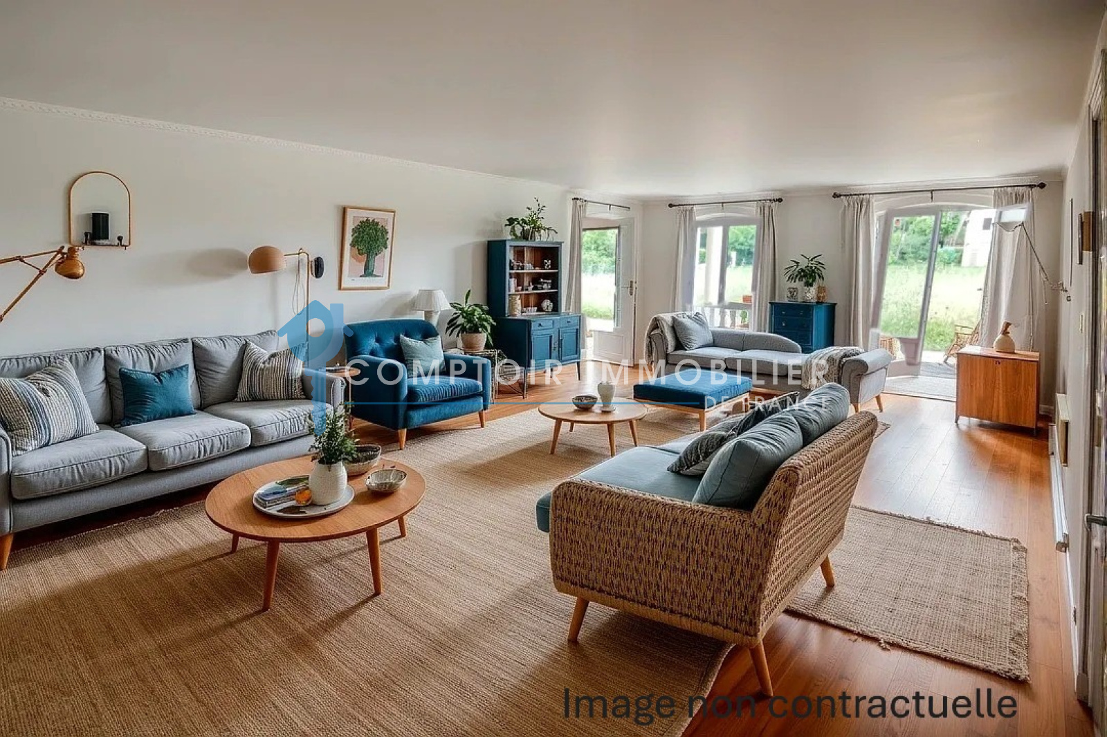 Au rez de chaussée, vous découvrirez un salon/séjour lumineux, une spacieuse cuisine fermée, un bureau, une buanderie et un garage.