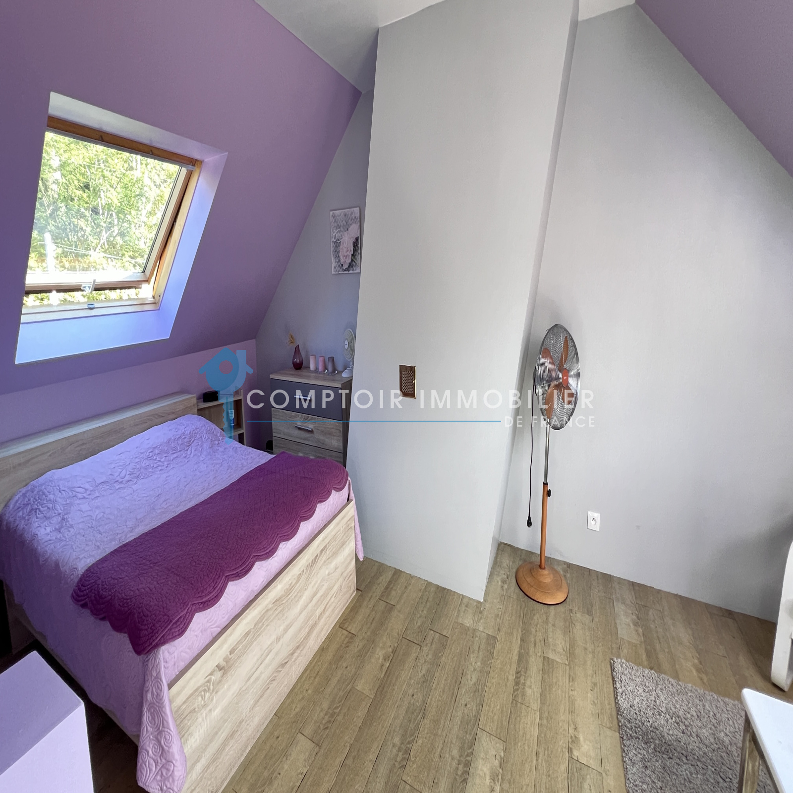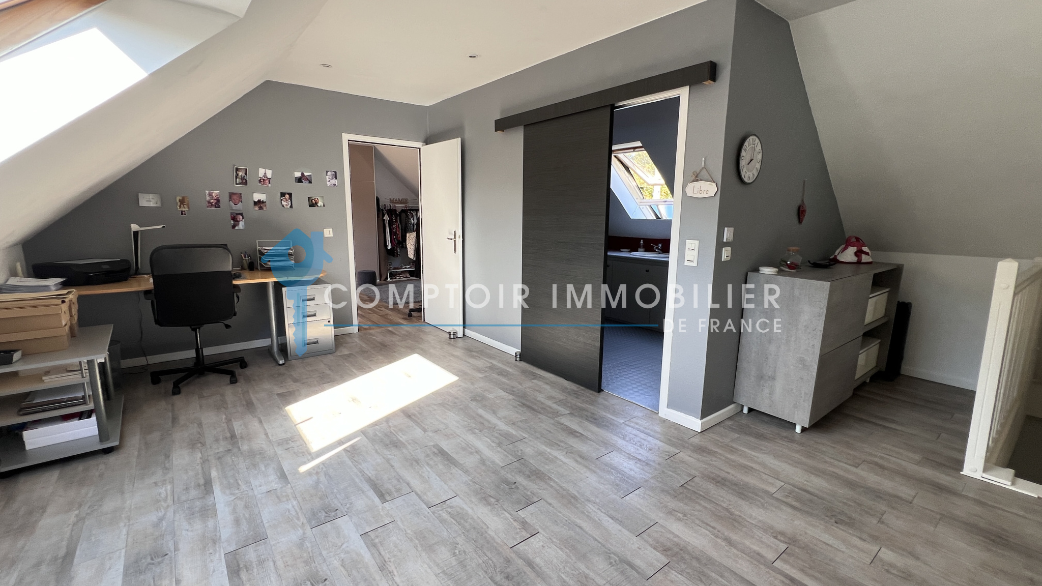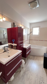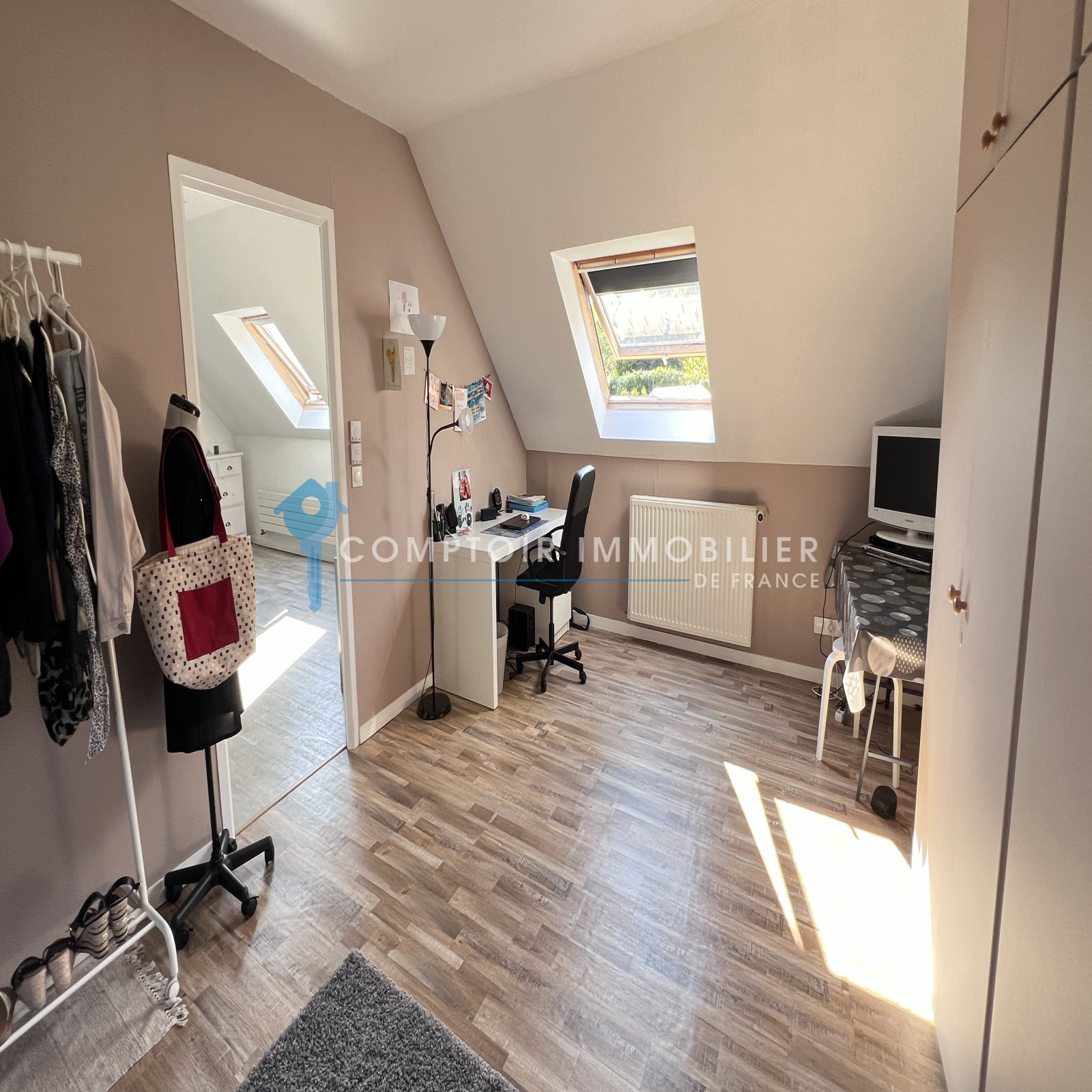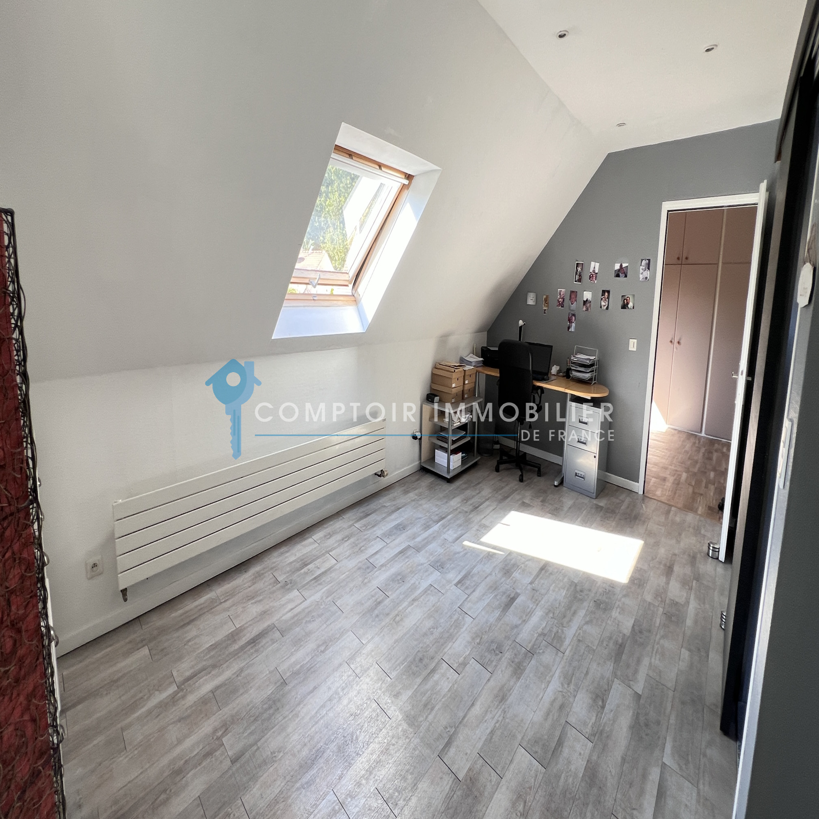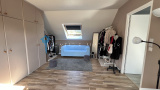 A l'étage : grande pièce palière desservant deux belles chambres et une salle d'eau avec wc.