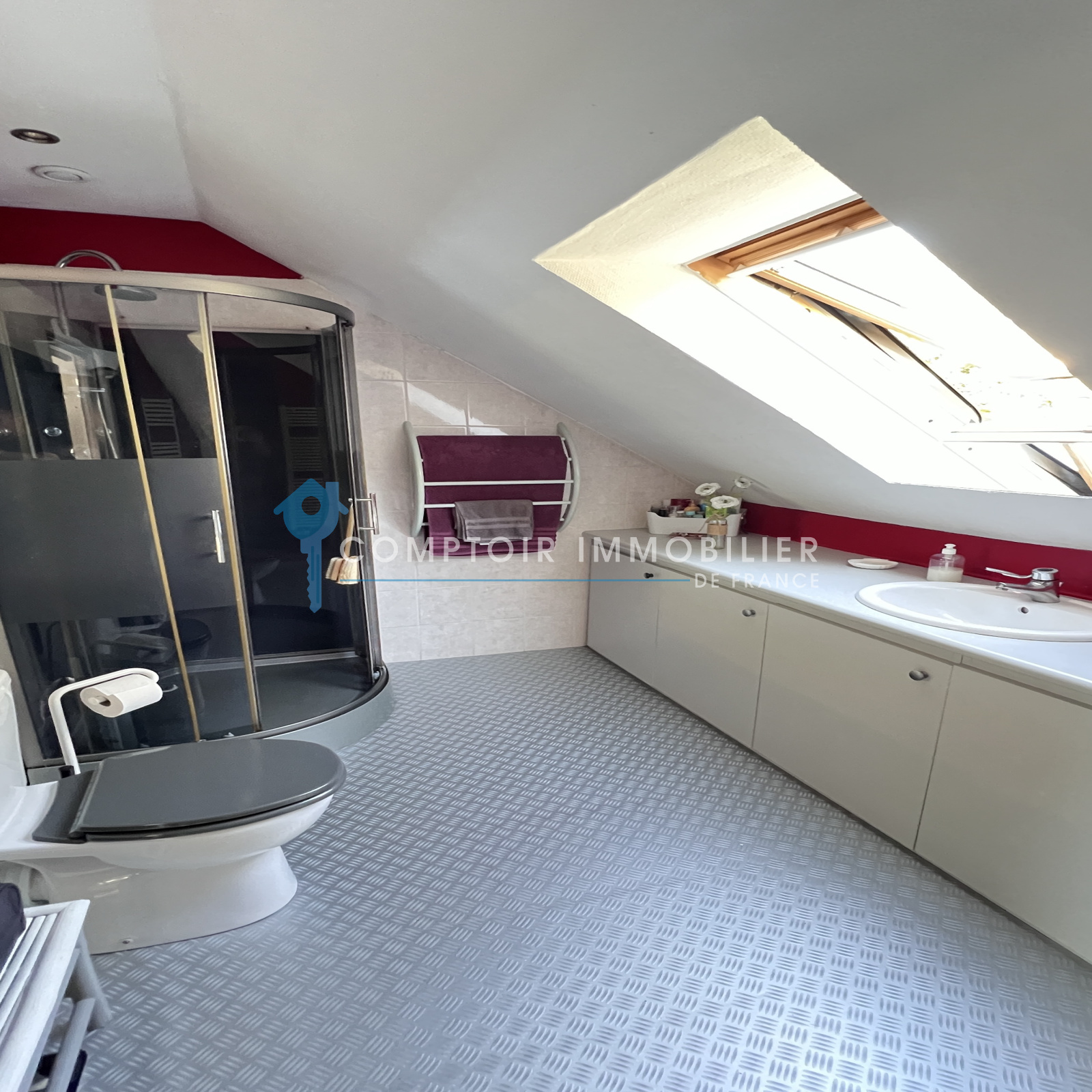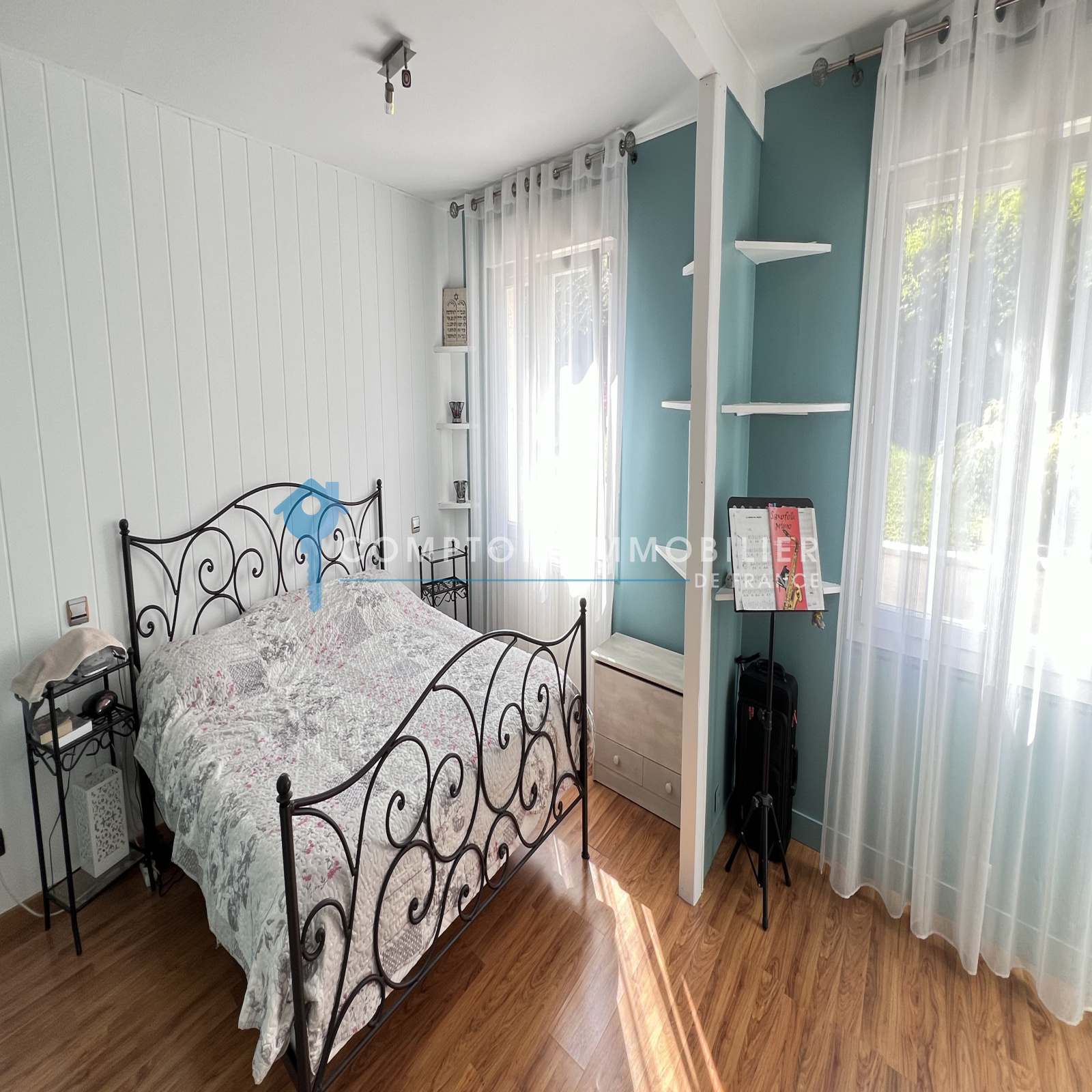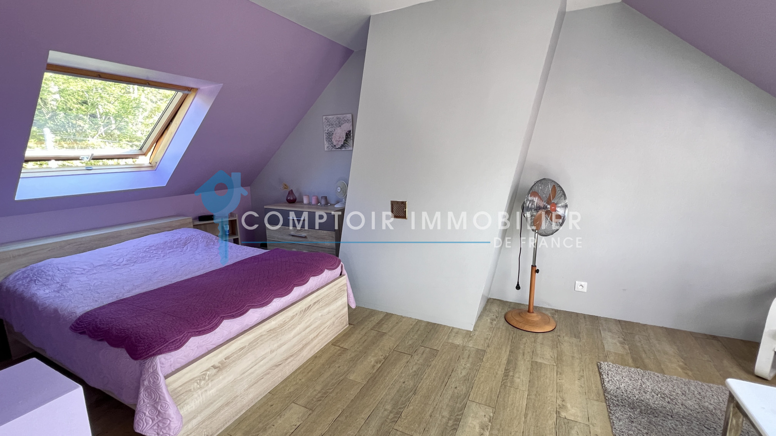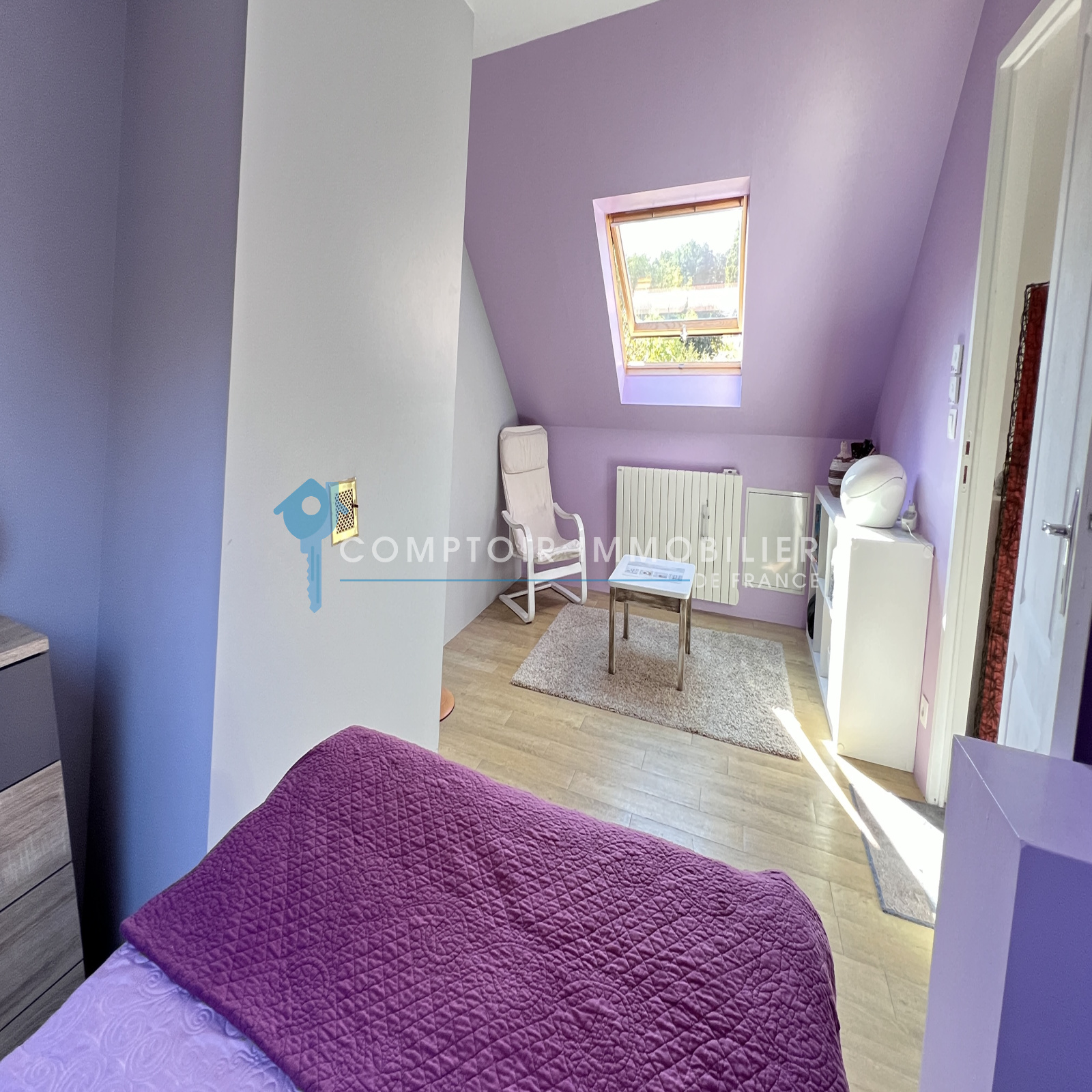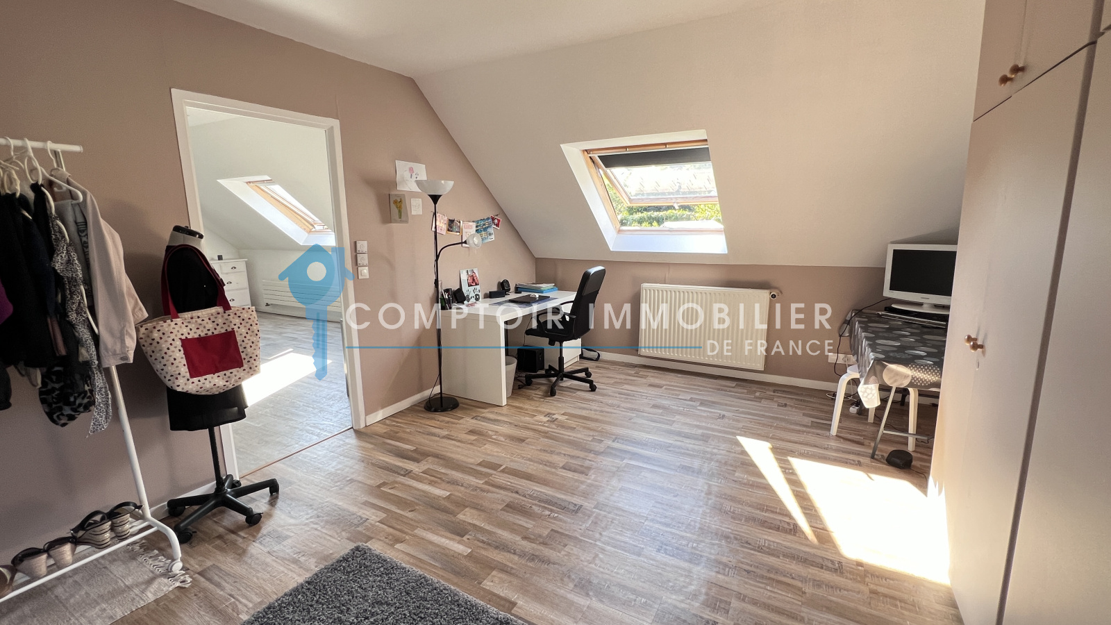 A l'étage : grande pièce palière desservant deux belles chambres et une salle d'eau avec wc.
