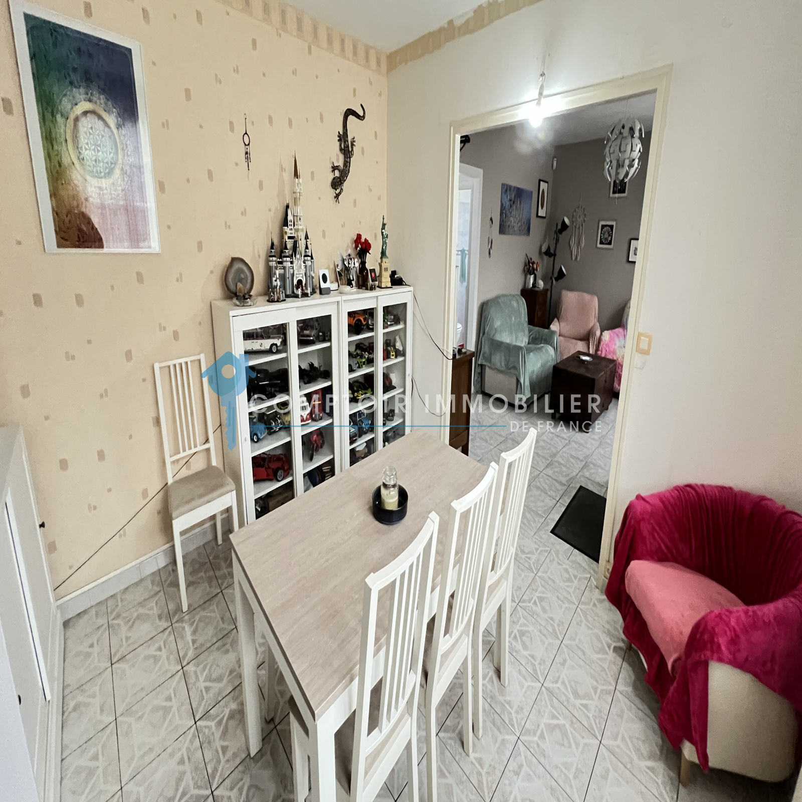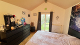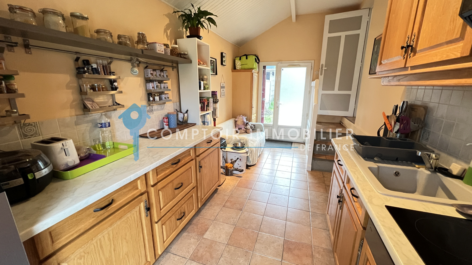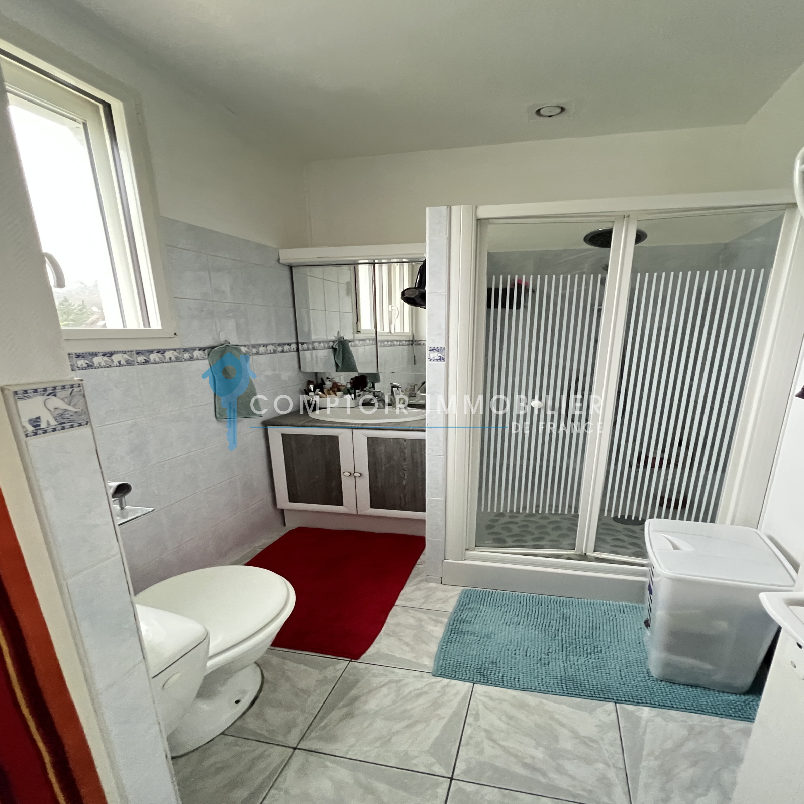 La maison est édifiée sur un sous-sol Total qui se découpe en garage/atelier/buanderie/cave/débarras. En RDC une entrée/SAS, un salon et une salle à manger, une cuisine séparée et équipée, une SDE/wc, un cellier et une belle chambre. A l'étage une grande chambre de 27m² au sol.